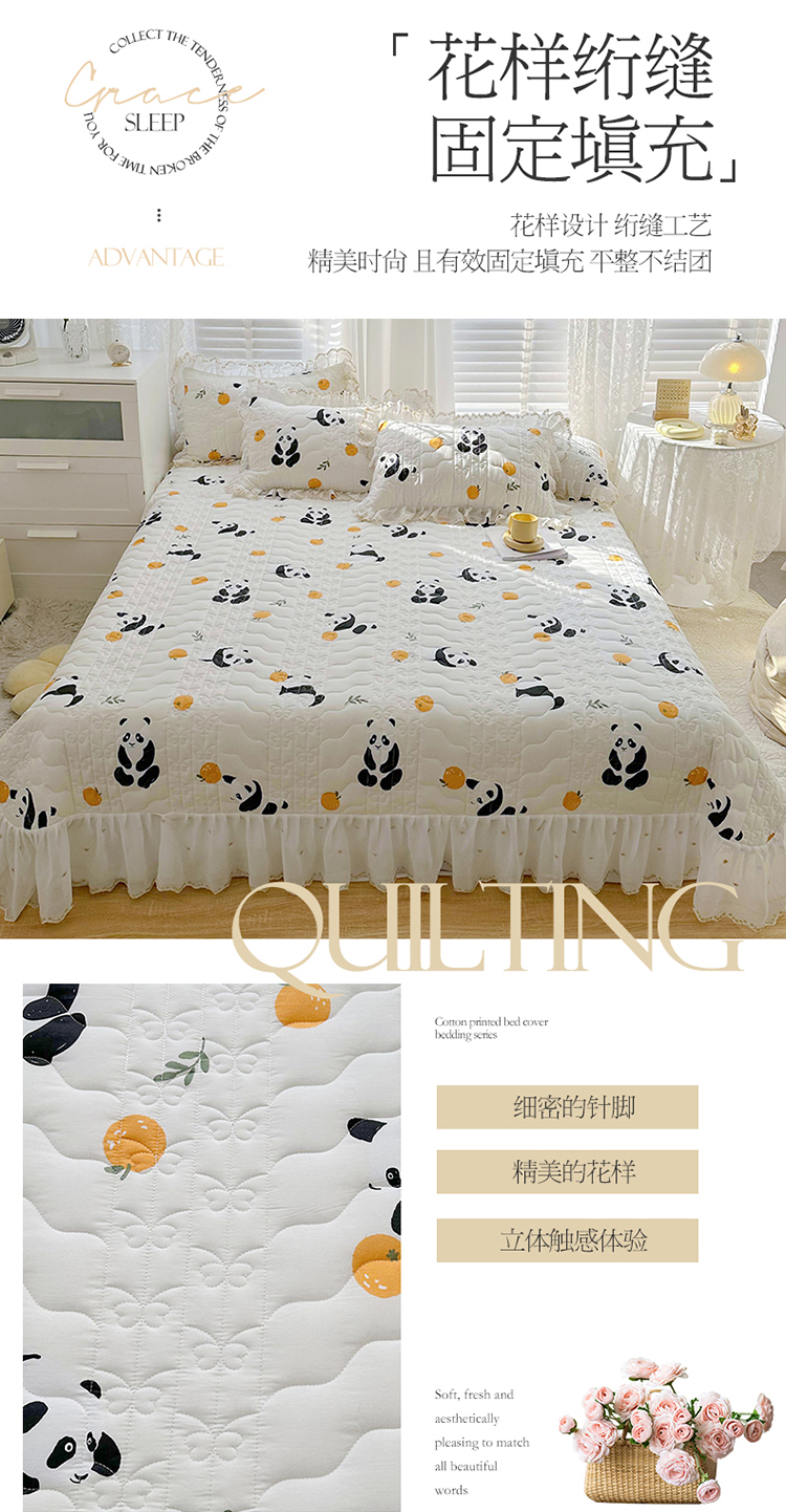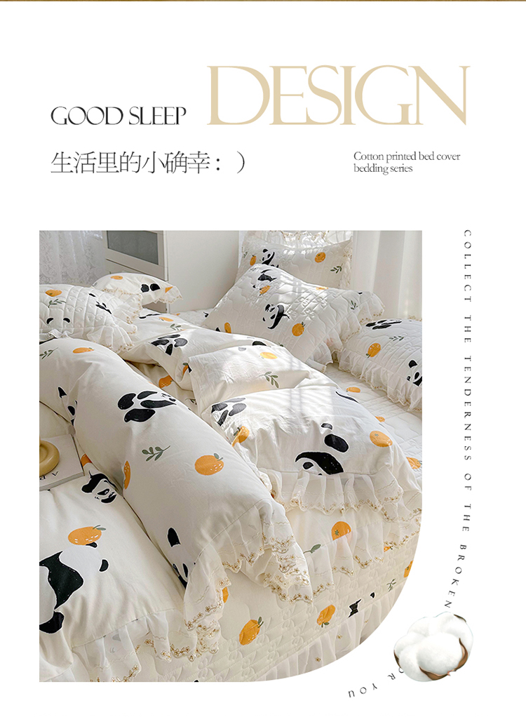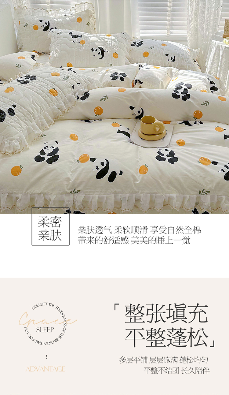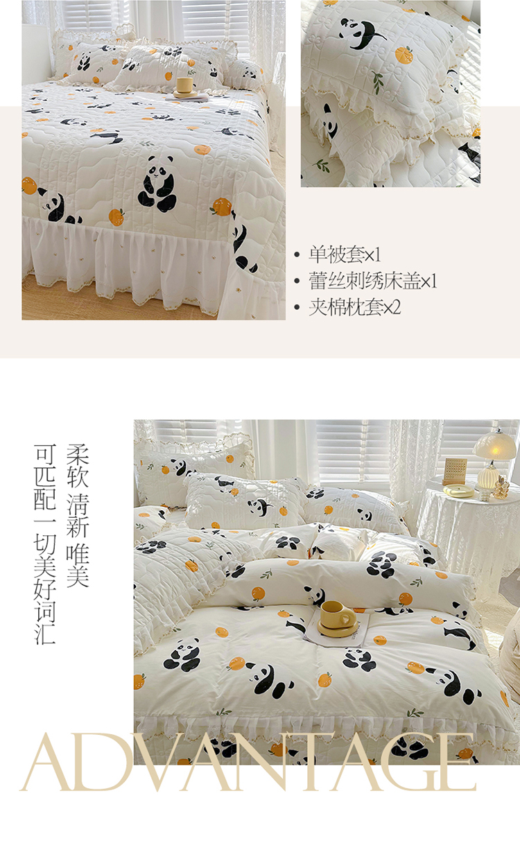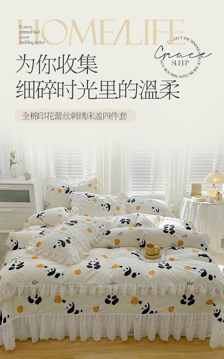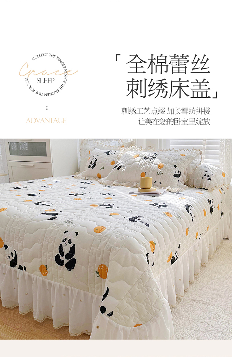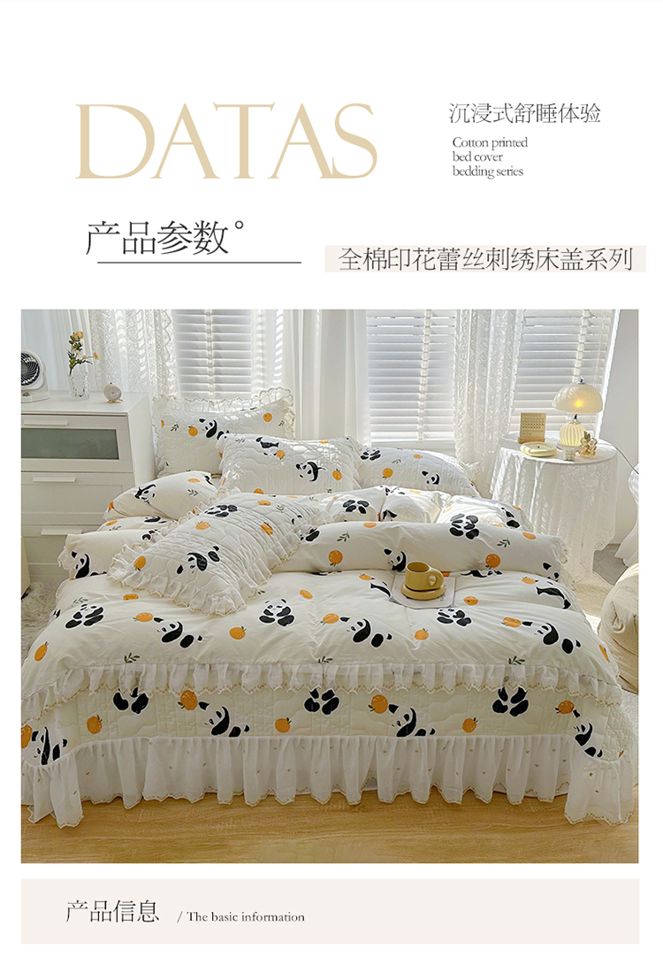 • 91家纺网 家纺一手货源 找家纺 宜凡 2023新款全棉蕾丝刺绣床盖四件套(单层被套) 黑白熊猫