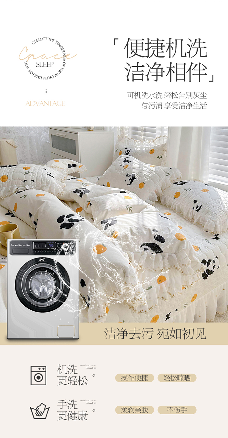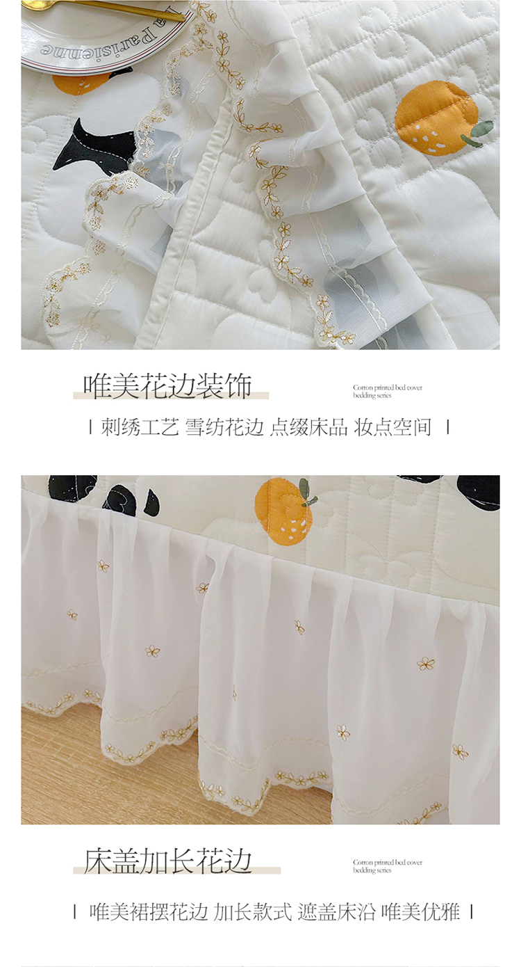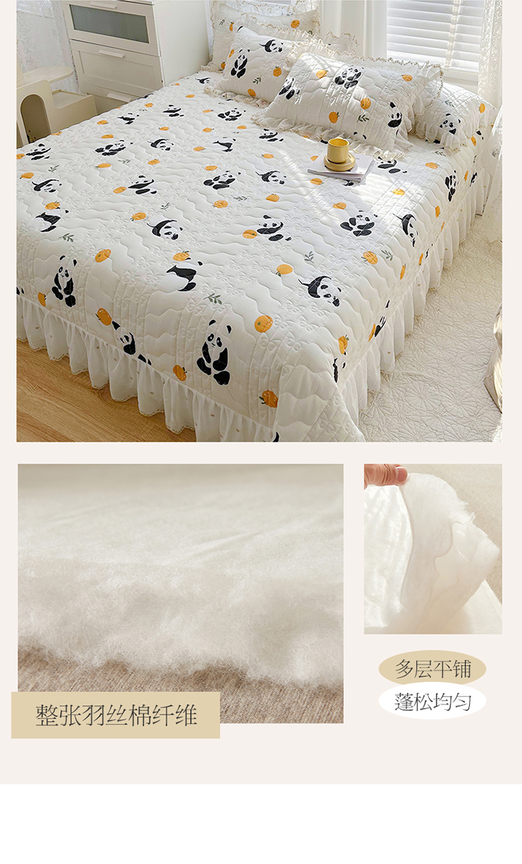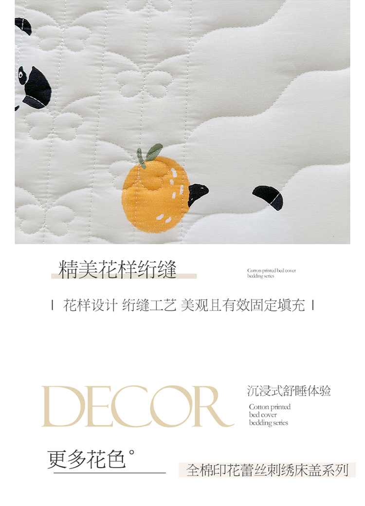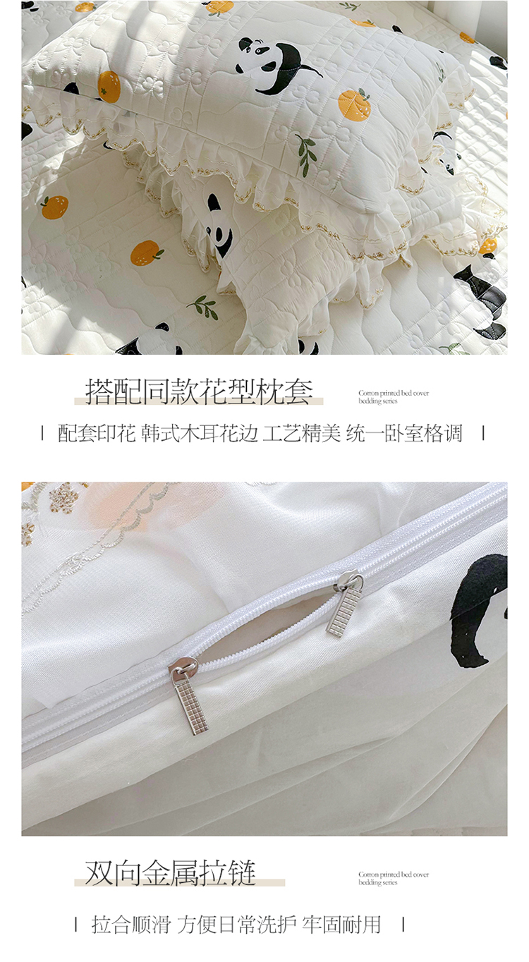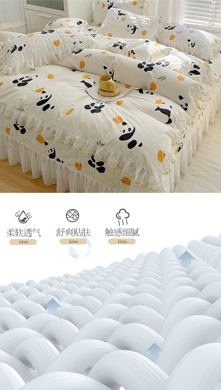• 91家纺网 家纺一手货源 找家纺 宜凡 2023新款全棉蕾丝刺绣床盖四件套(单层被套) 黑白熊猫