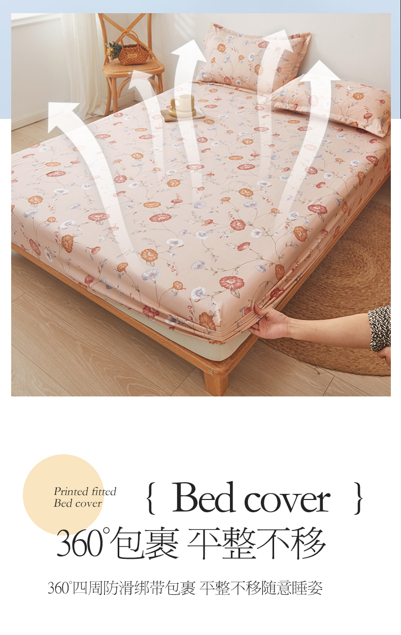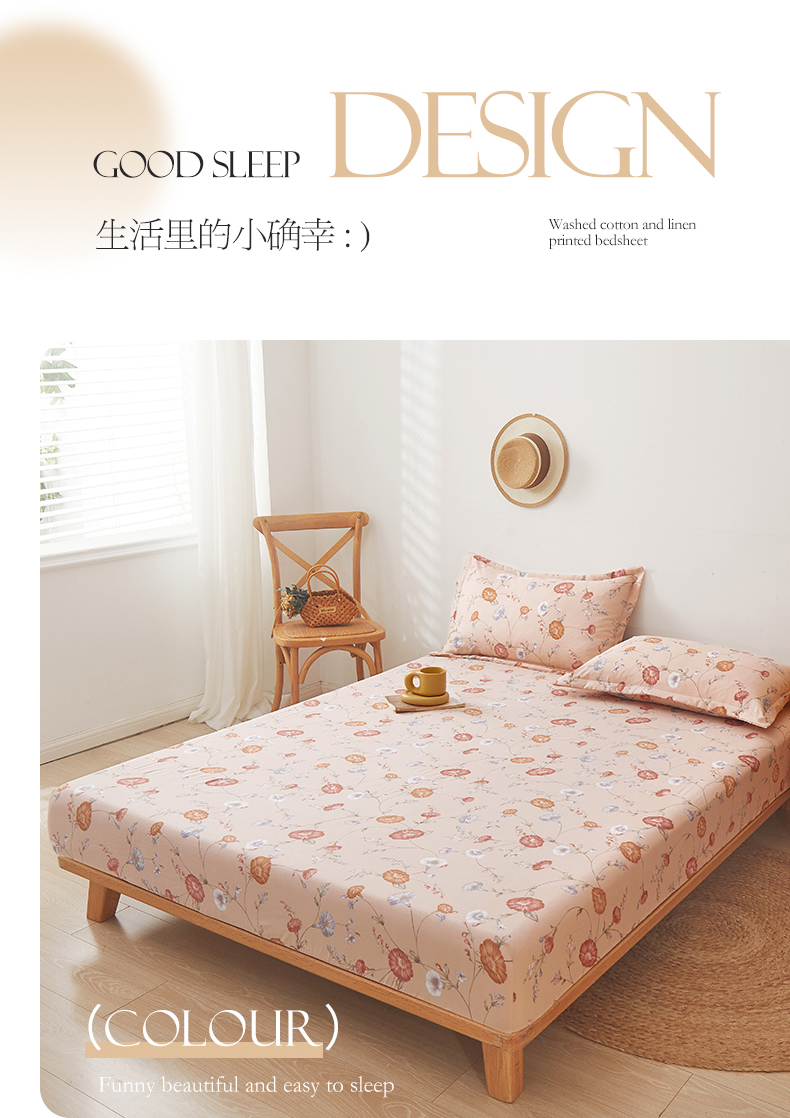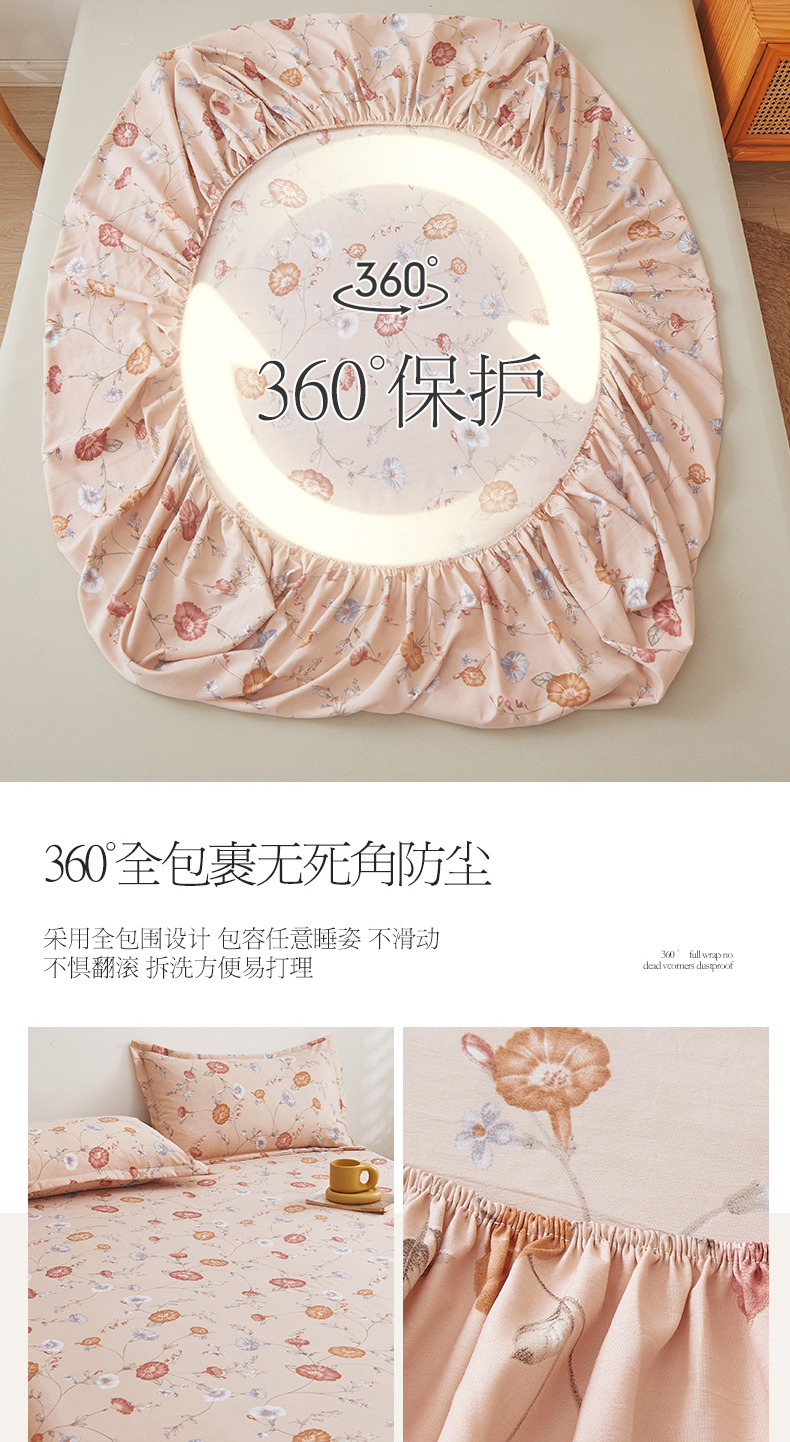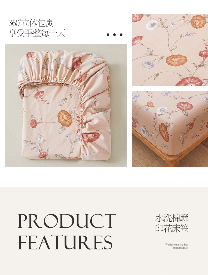 • 91家纺网 家纺一手货源 找家纺 新款水洗棉麻防尘抗菌单层床笠全包床罩 牵牛花