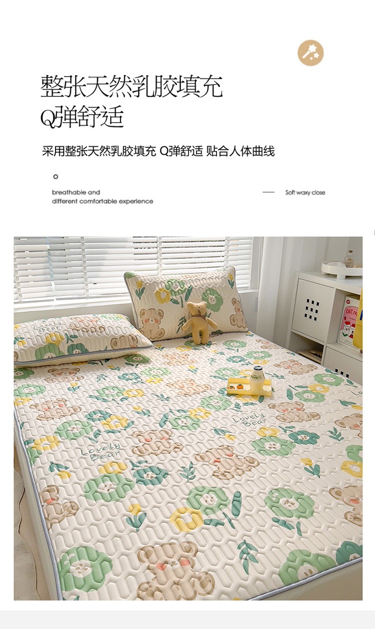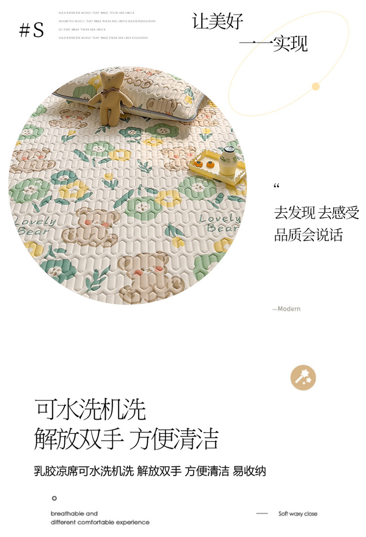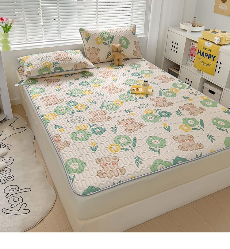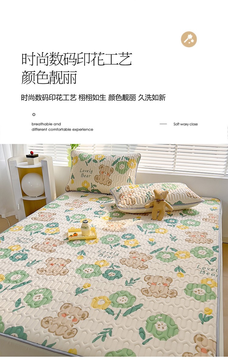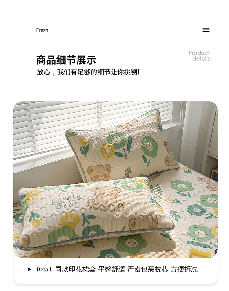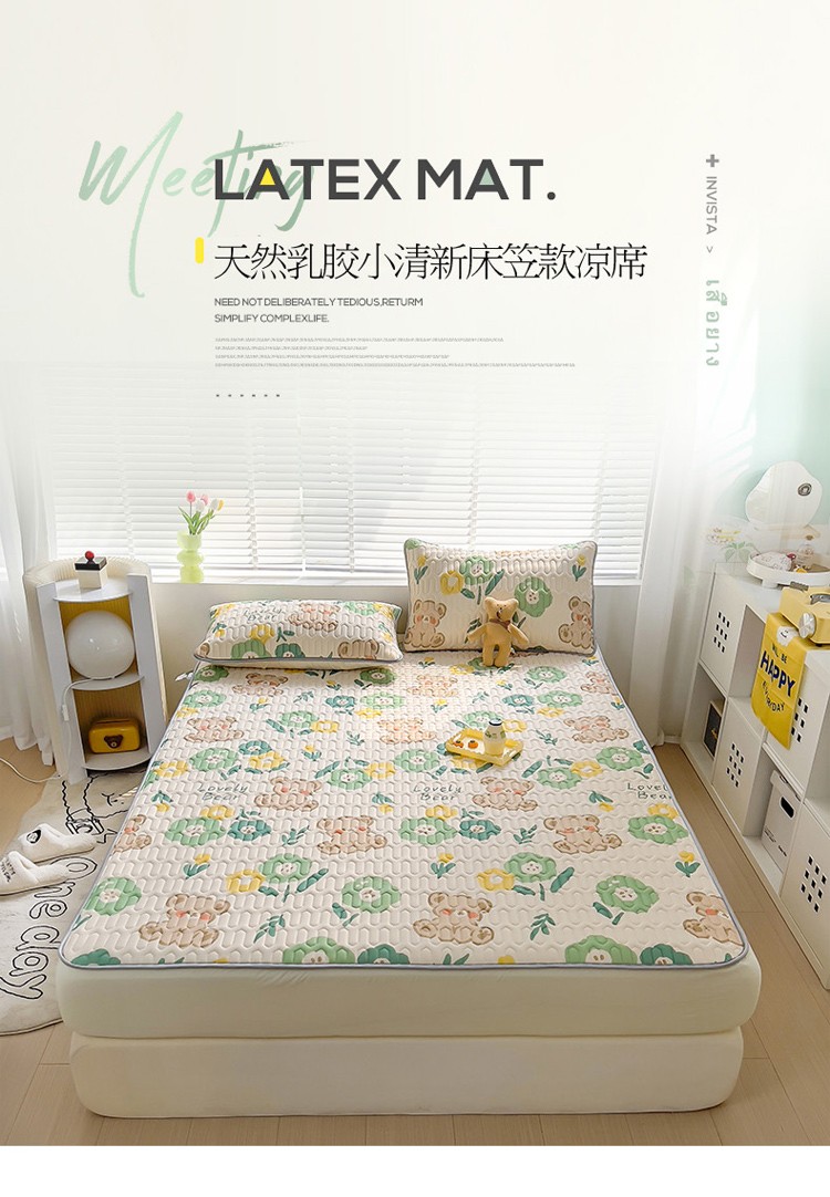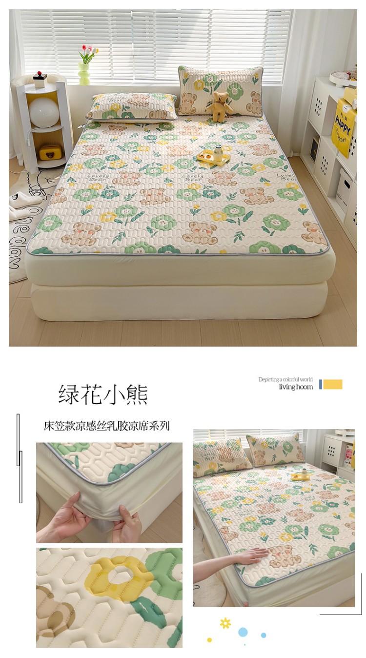 商品名称:沐慕 2023新款小清新床笠款乳胶凉席 绿花小熊