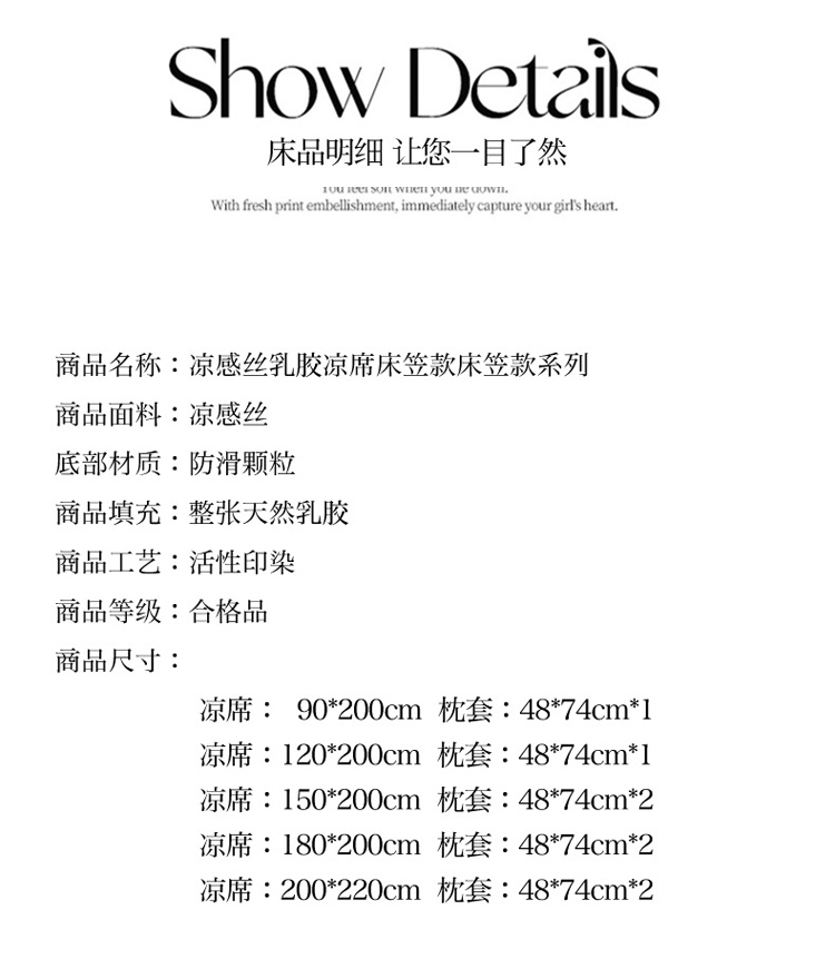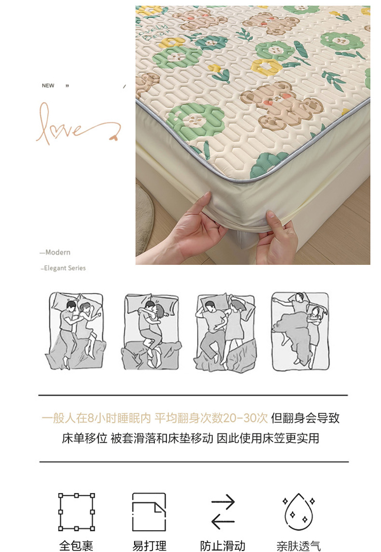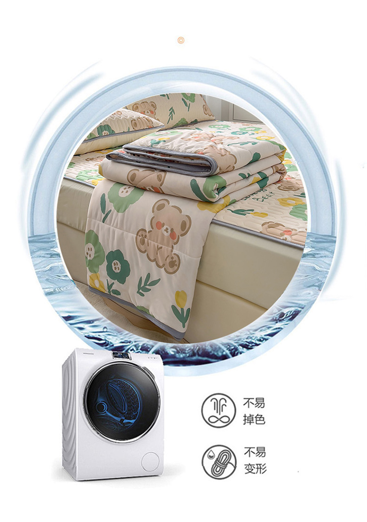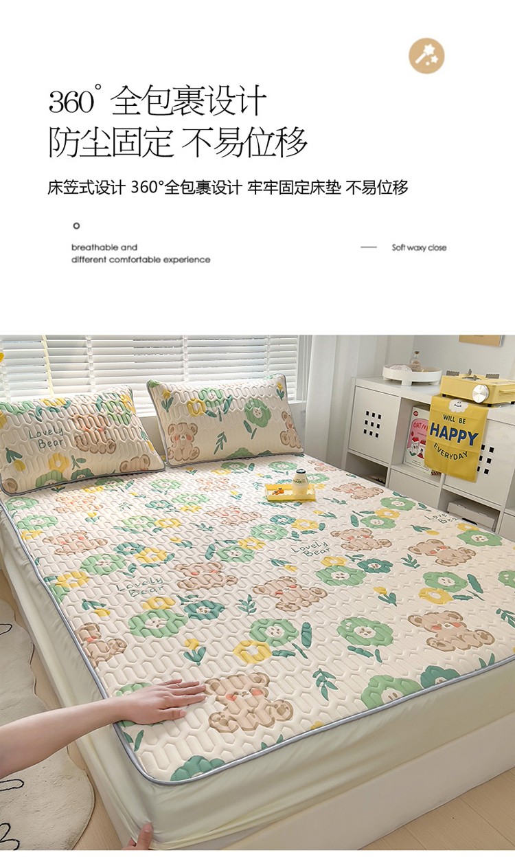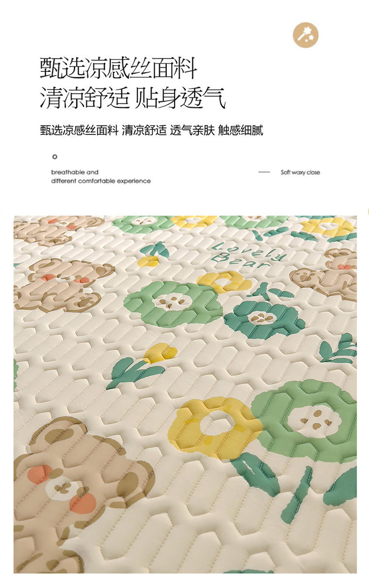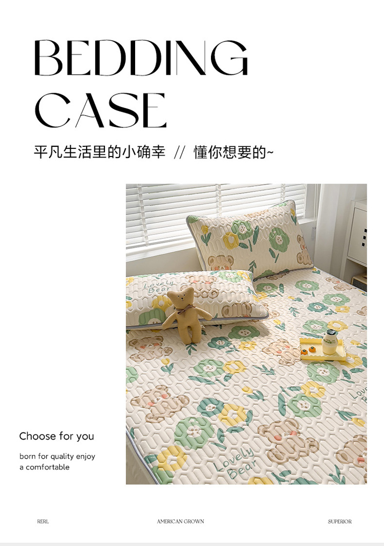 商品名称:沐慕 2023新款小清新床笠款乳胶凉席 绿花小熊