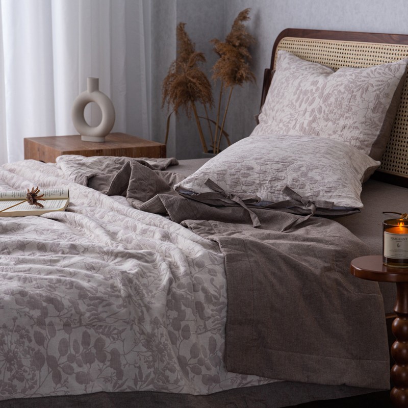当前位置: 91家纺网 > 商品网购 > 床品套件 > 四件套 > 夏被四件套 > 安莱生活 2023双层纱复古大提花系列栀子花夏被及夏被四件套 栀子花浅灰