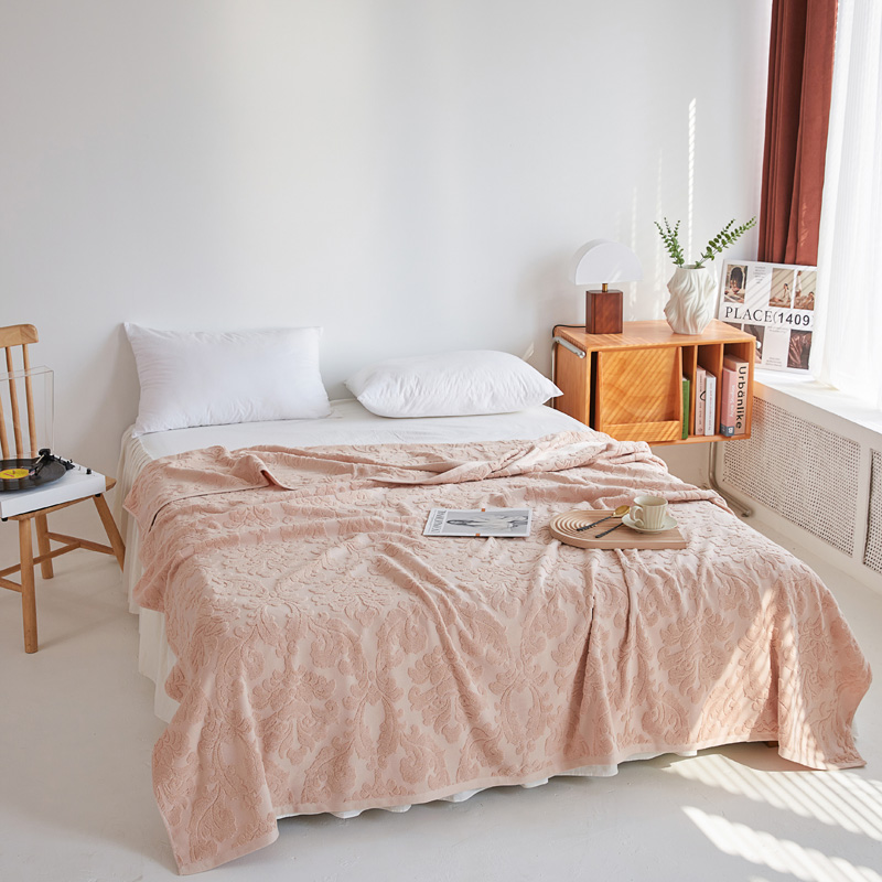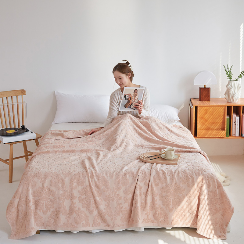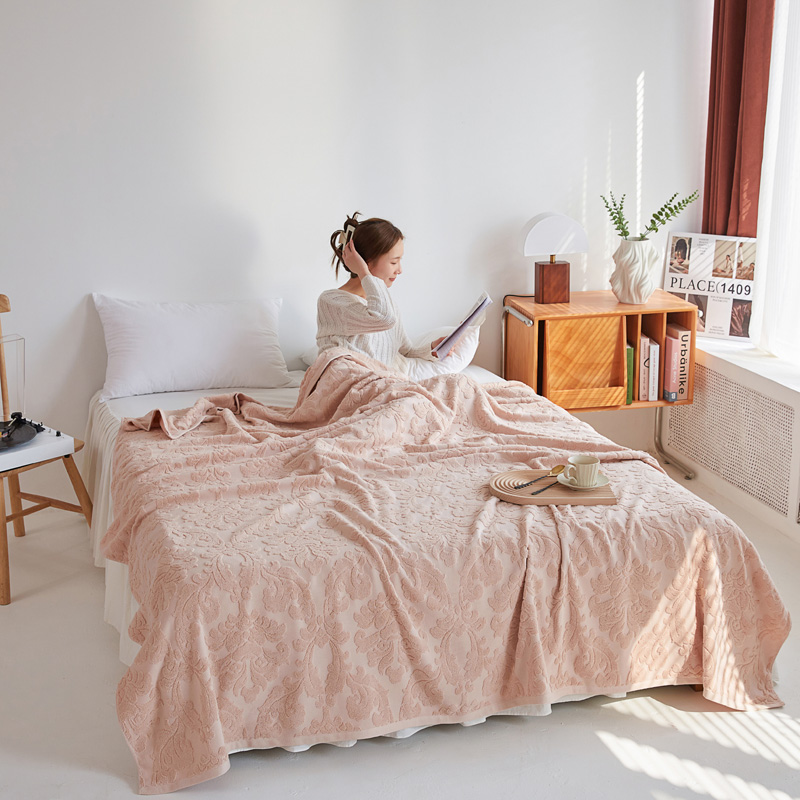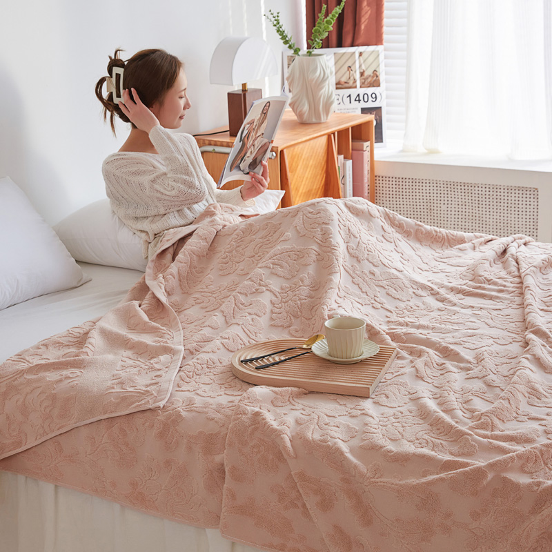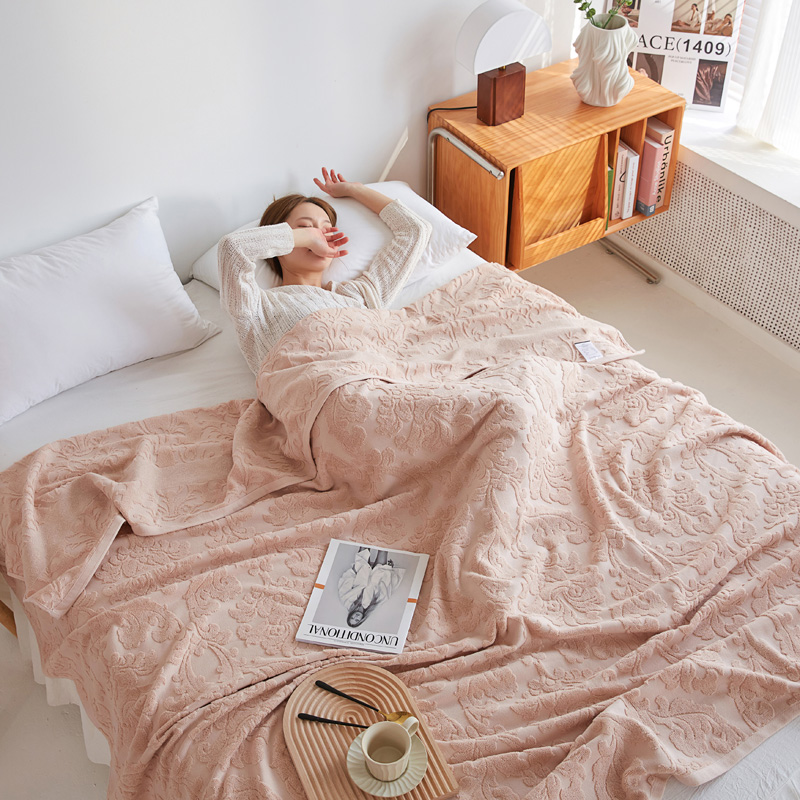 (总)乐家毛巾被(工厂自产自销) 2024新款全棉镂空毯系列,蓝色,浅灰色,深灰色,青色,粉色,黄色