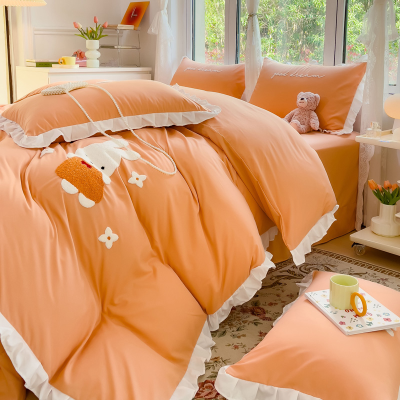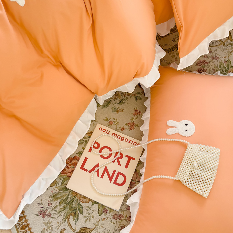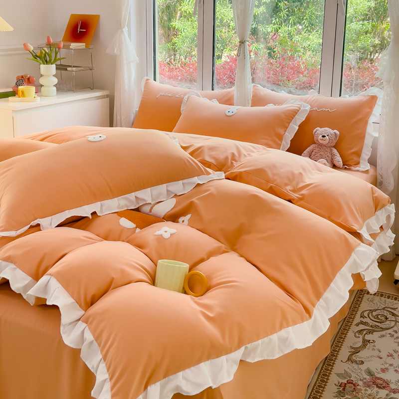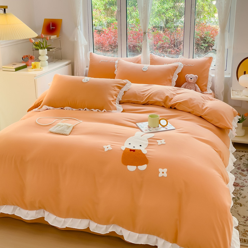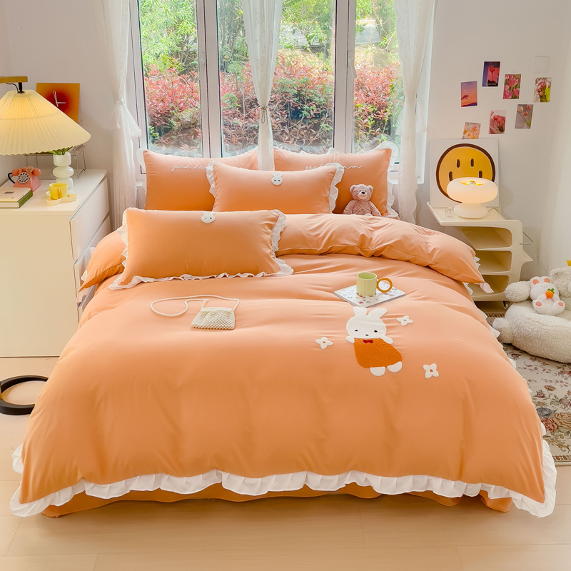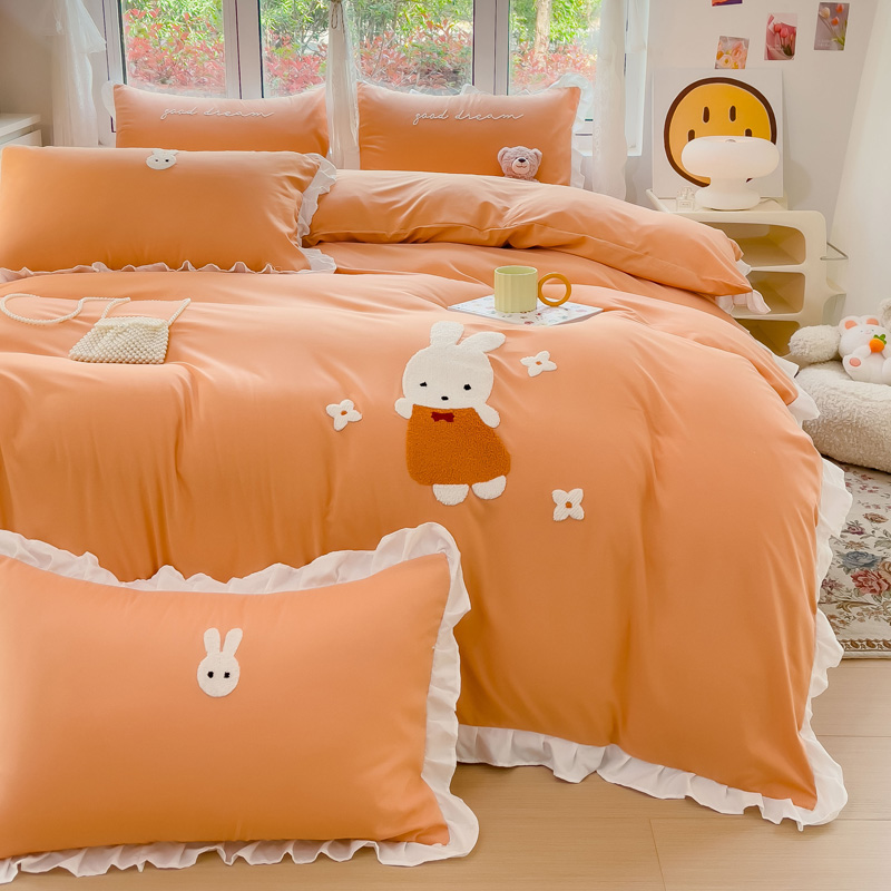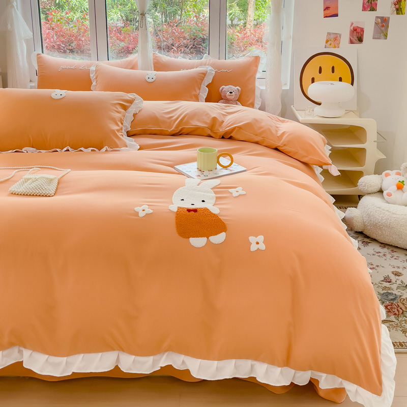 商品名称:麦朵家居2023新款毛巾绣花边款四件套幸福兔系列 幸福兔-橘