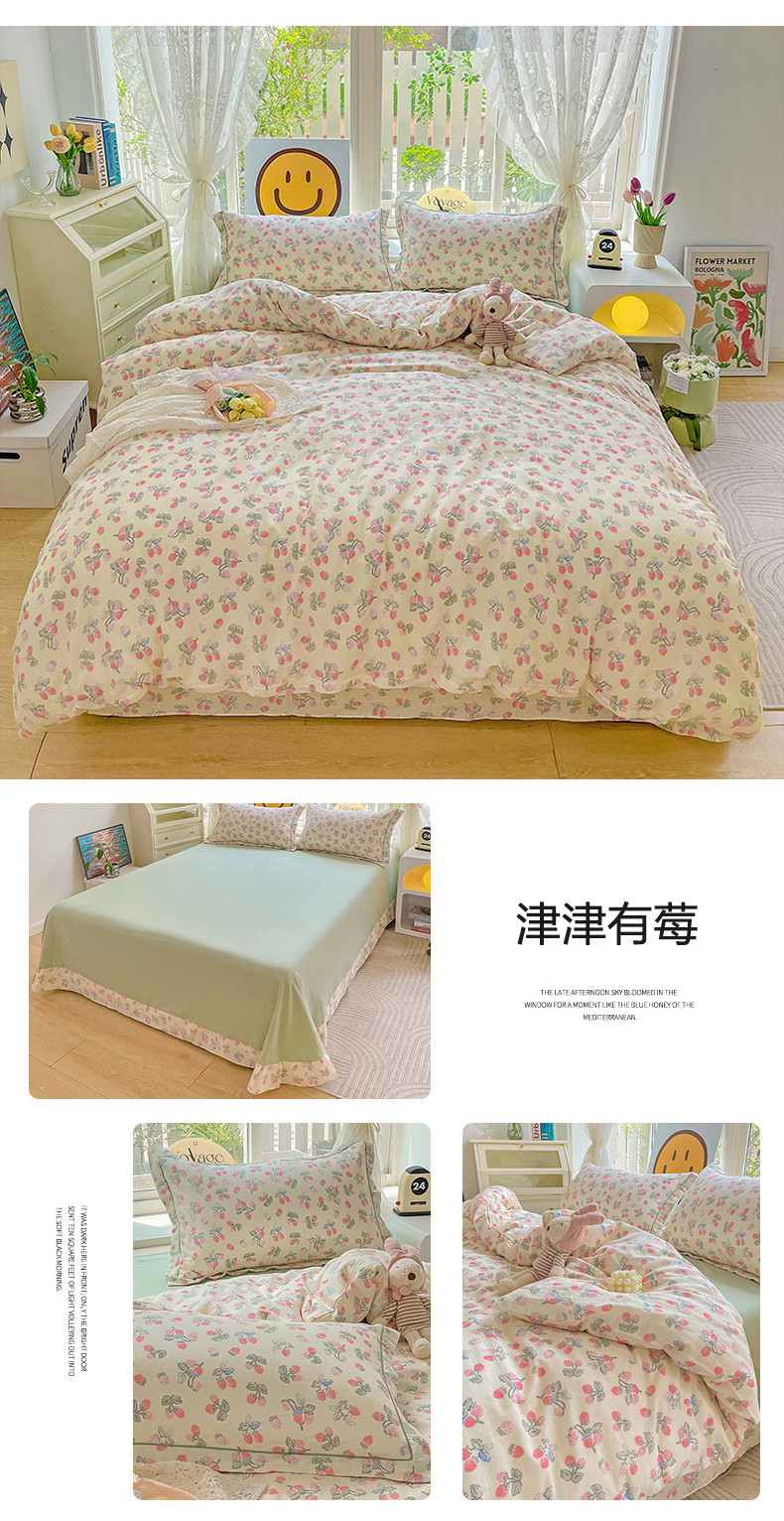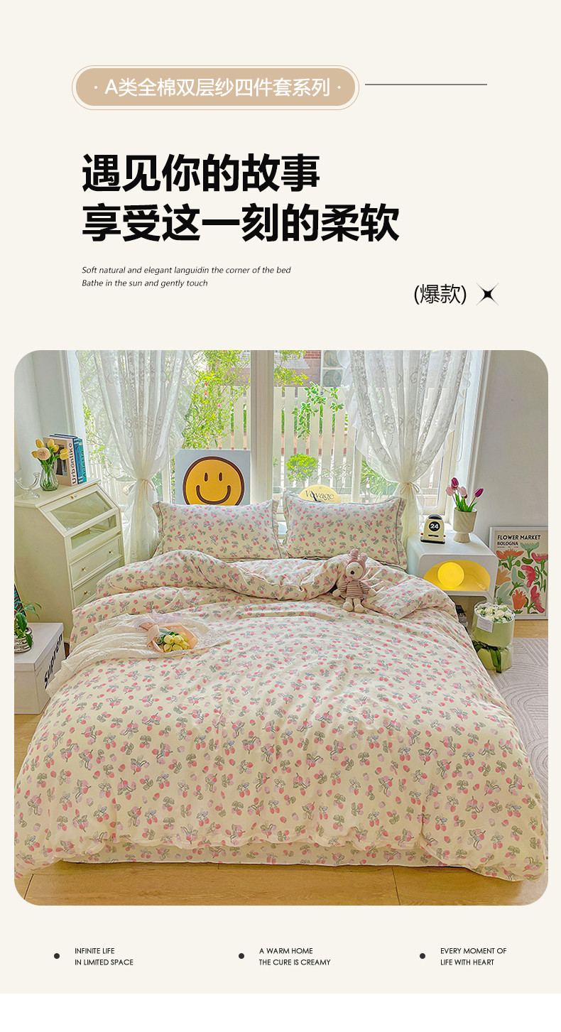 商品名称:乐童 2024新款直播爆款A类全棉双层纱工艺款四件套 津津有莓