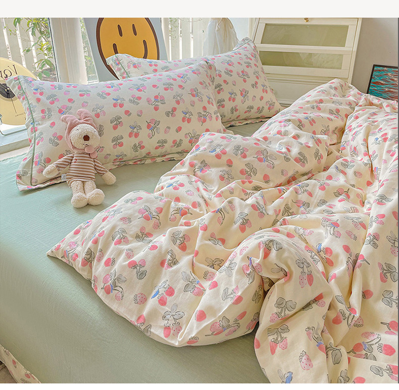 乐童 2024新款直播爆款A类全棉双层纱工艺款四件套 津津有莓