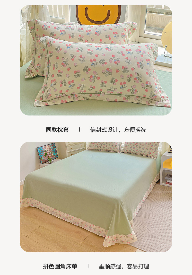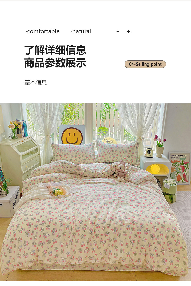 2024新款13372纯棉大版印+绣小清新款四件套 草莓之恋,草莓之恋