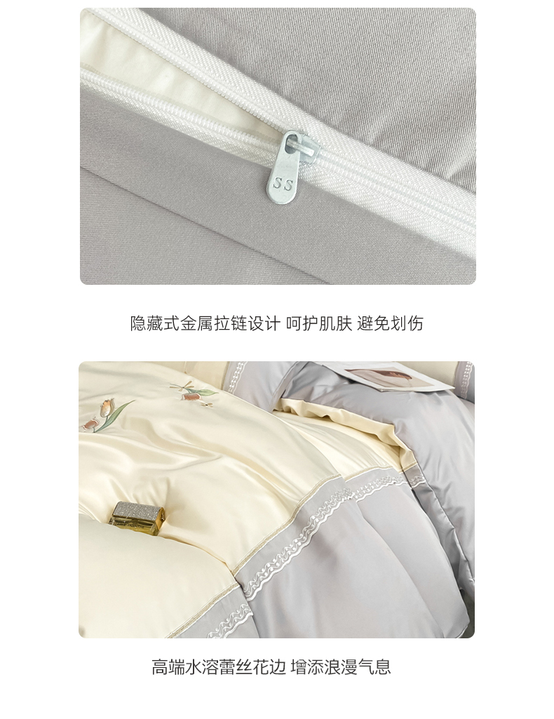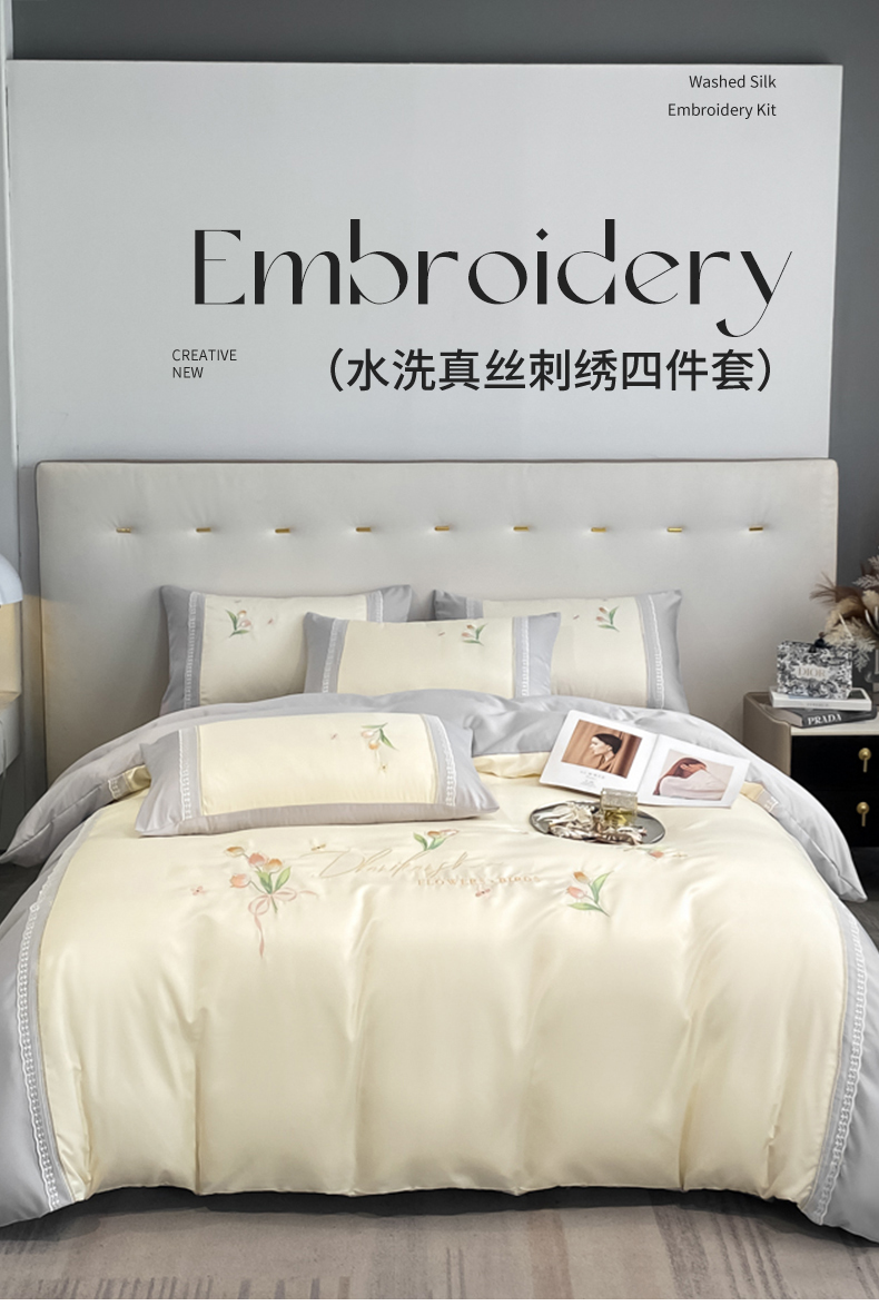 七七-2025新款水洗真丝四件套 安夏-灰