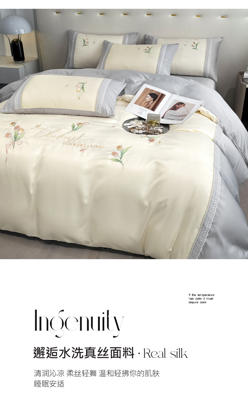 商品名称:七七-2025新款水洗真丝四件套 安夏-灰