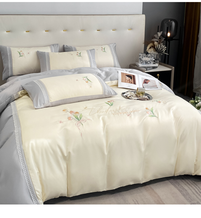 (总)七七家纺 2025新款冰丝刺绣款四件套幽兰系列,幽兰白,幽兰粉,幽兰灰,幽兰蓝,幽兰紫
