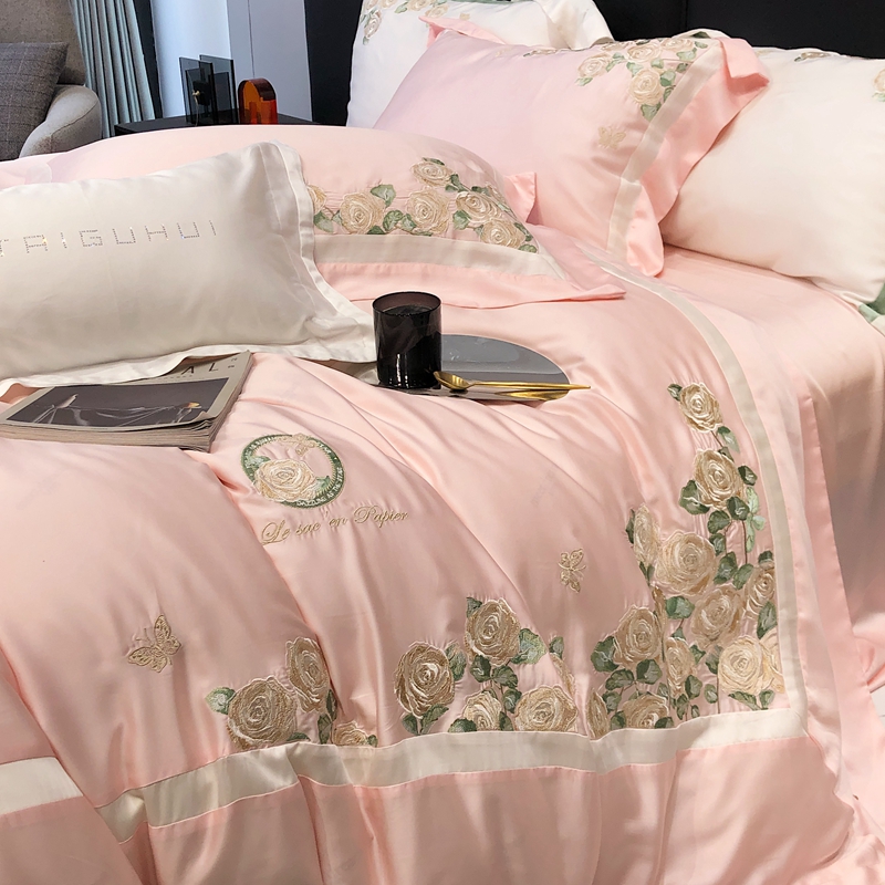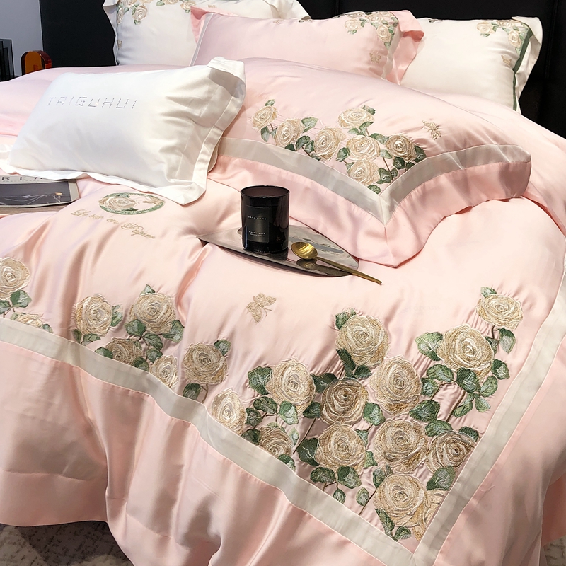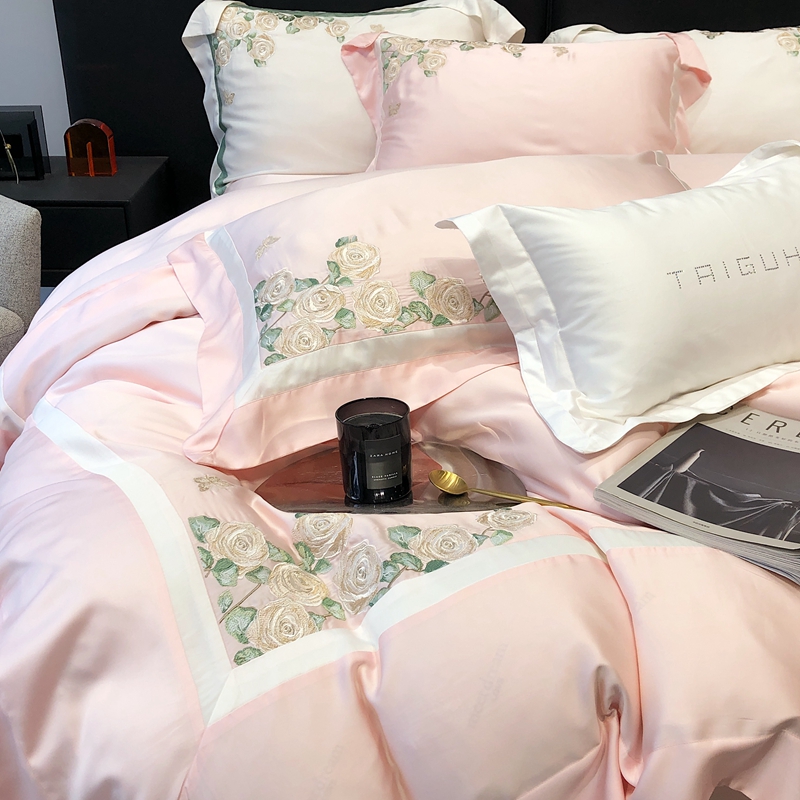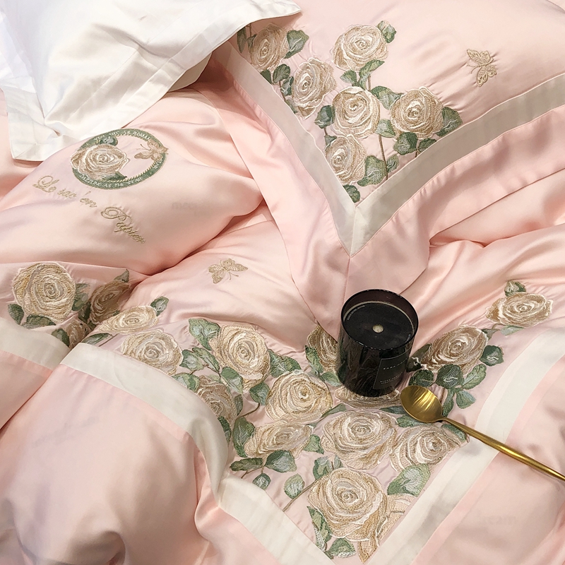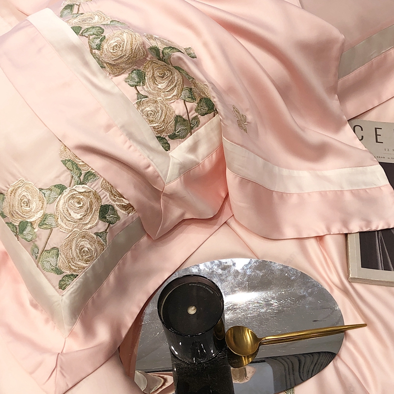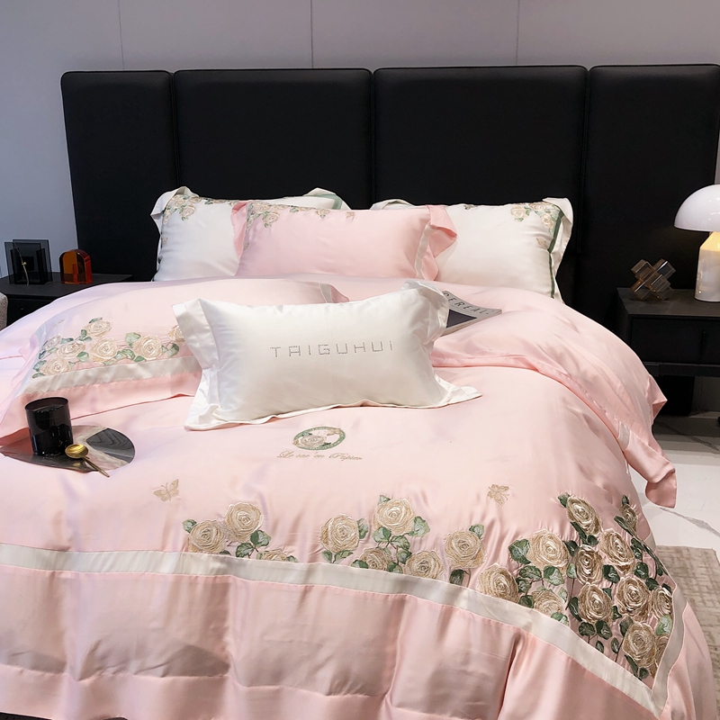 商品名称:太古汇 2023新款兰精天丝玫瑰庄园系列四件套 玫瑰庄园-粉色