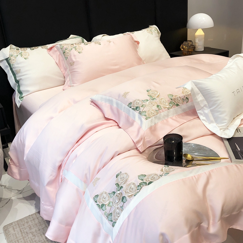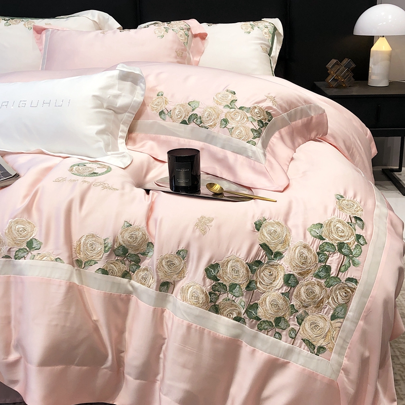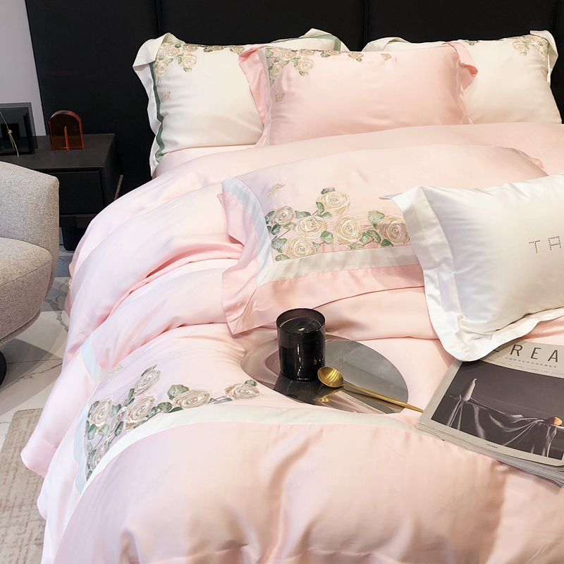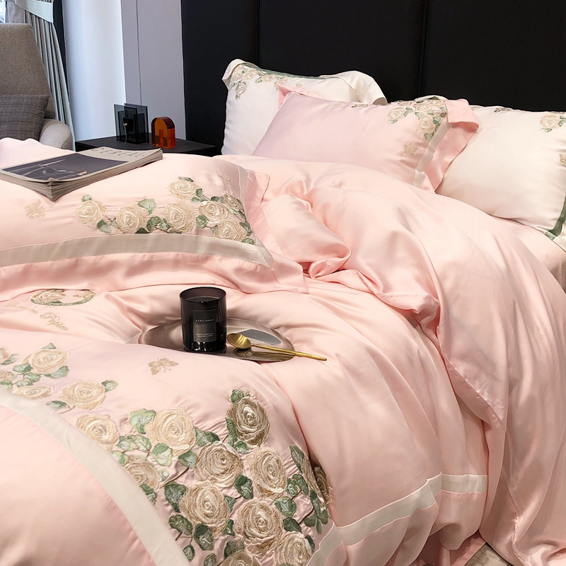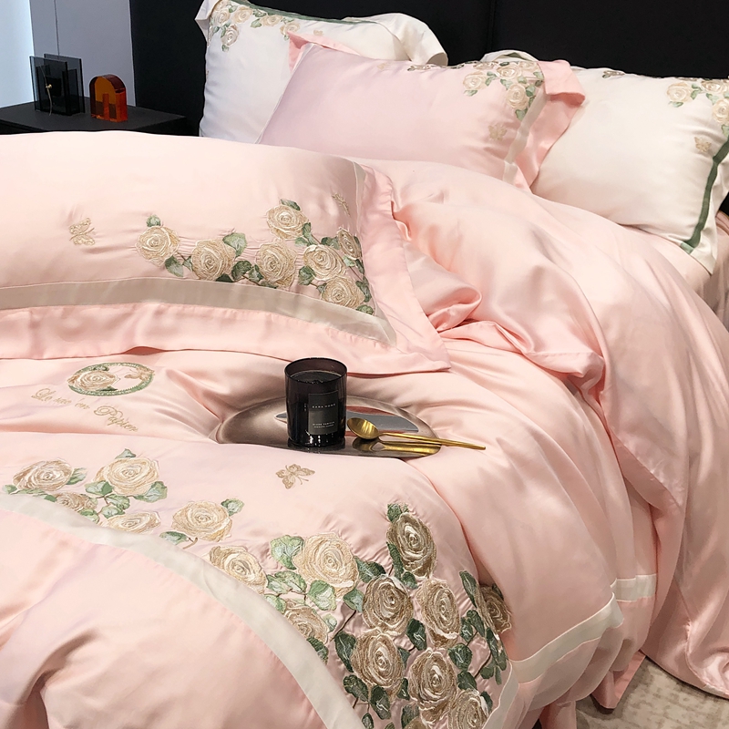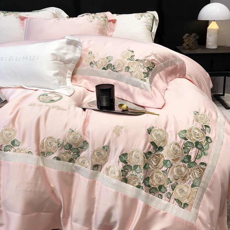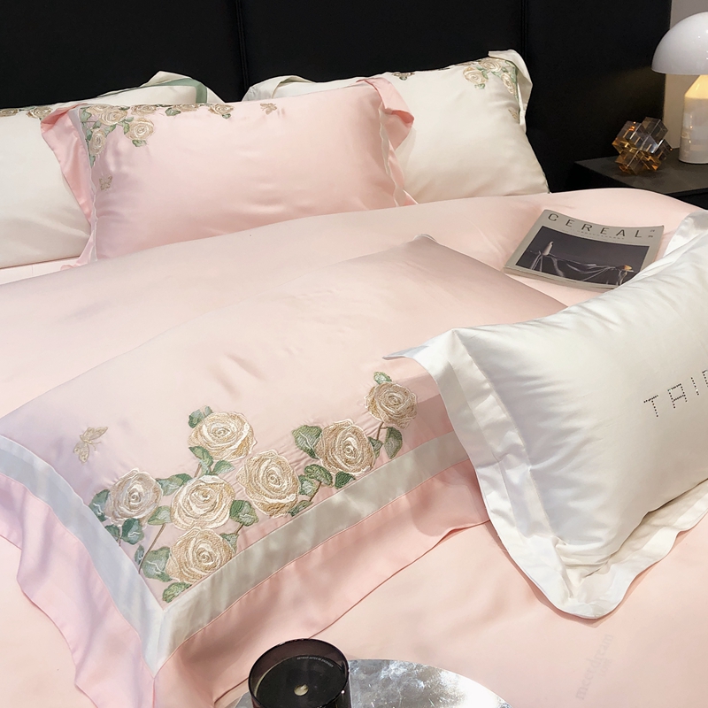 商品名称:太古汇 2023新款兰精天丝玫瑰庄园系列四件套 玫瑰庄园-粉色