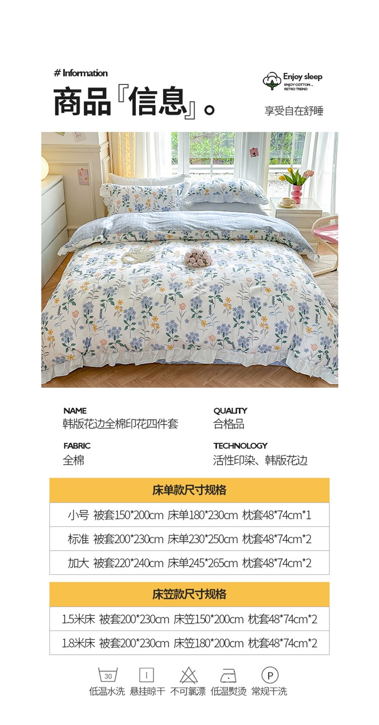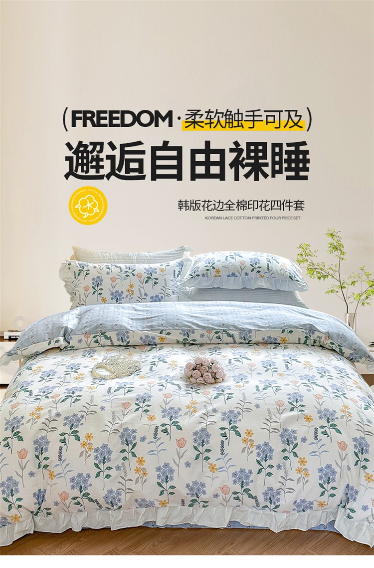 商品名称:清雅福 2024新款全棉13372韩版花边款系列四件套 爱丽丝
