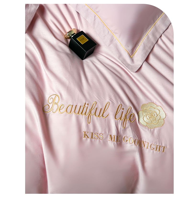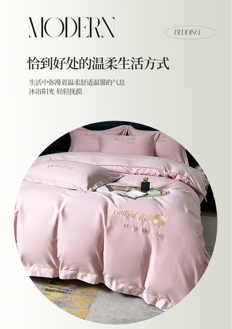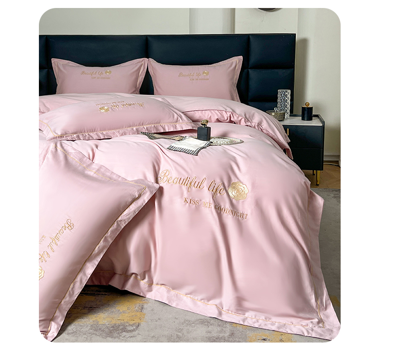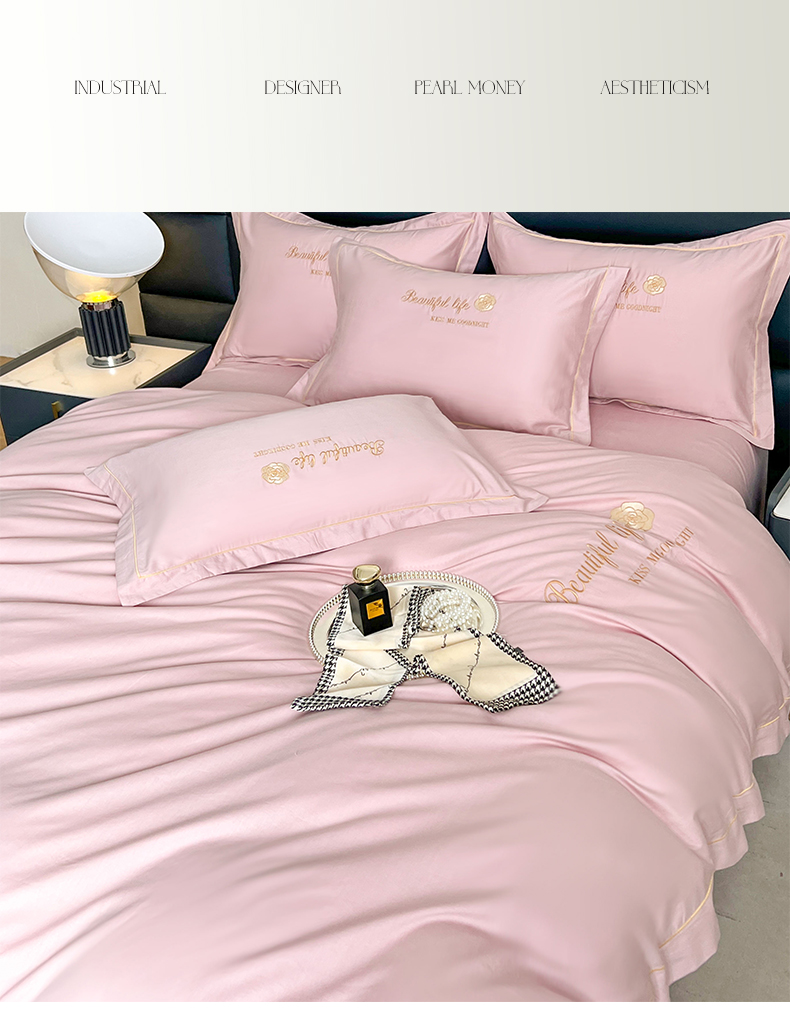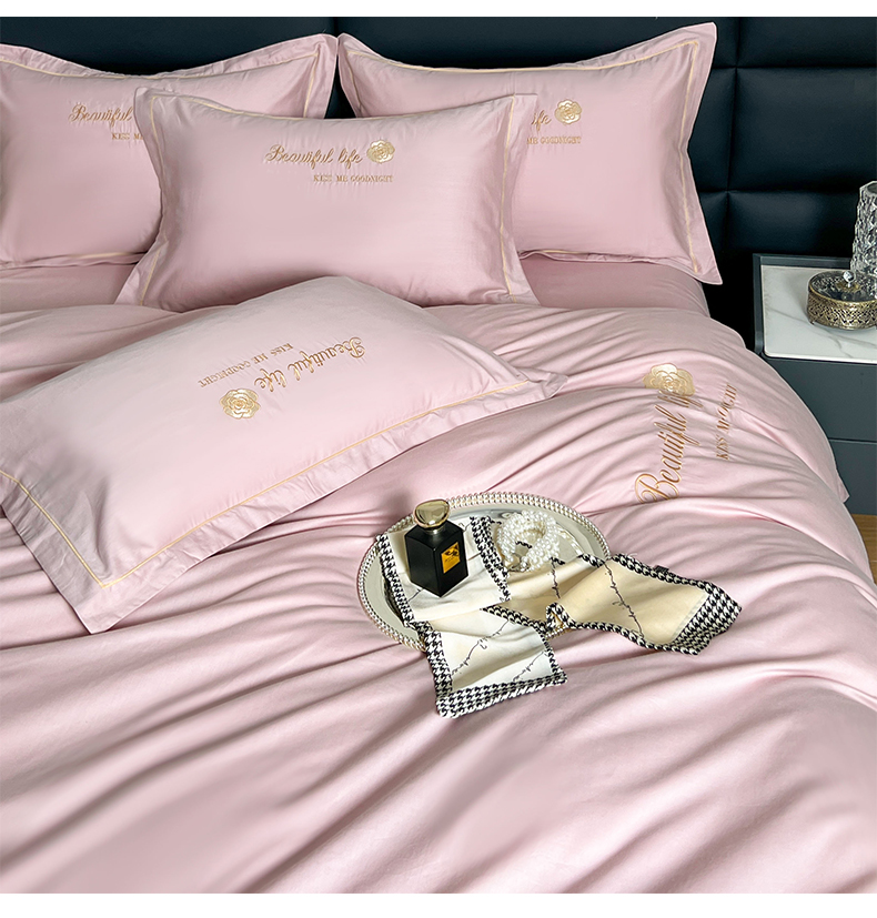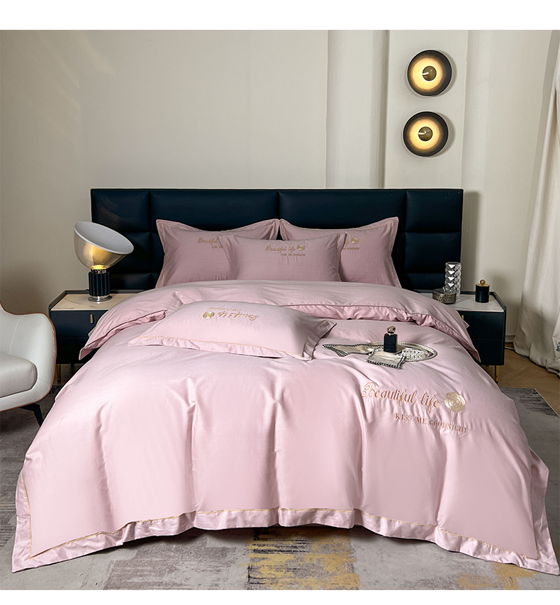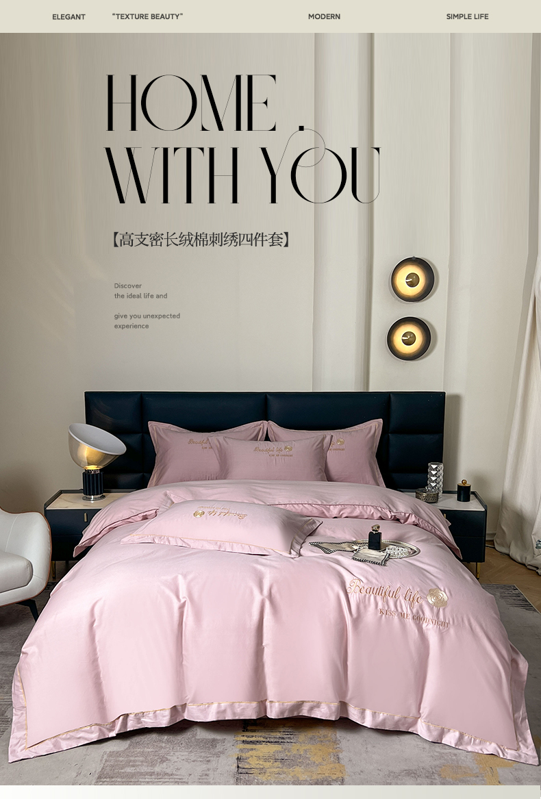 盛馨2023新款轻奢高支高密长绒棉全棉床单床笠刺绣四件套 BF-豆沙