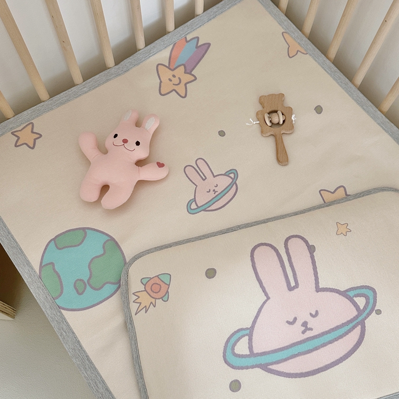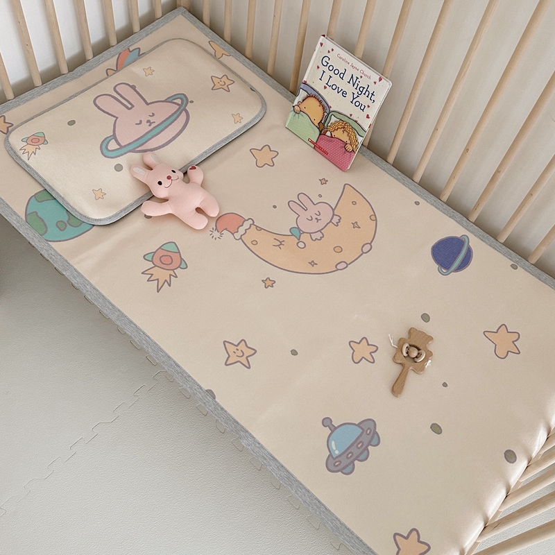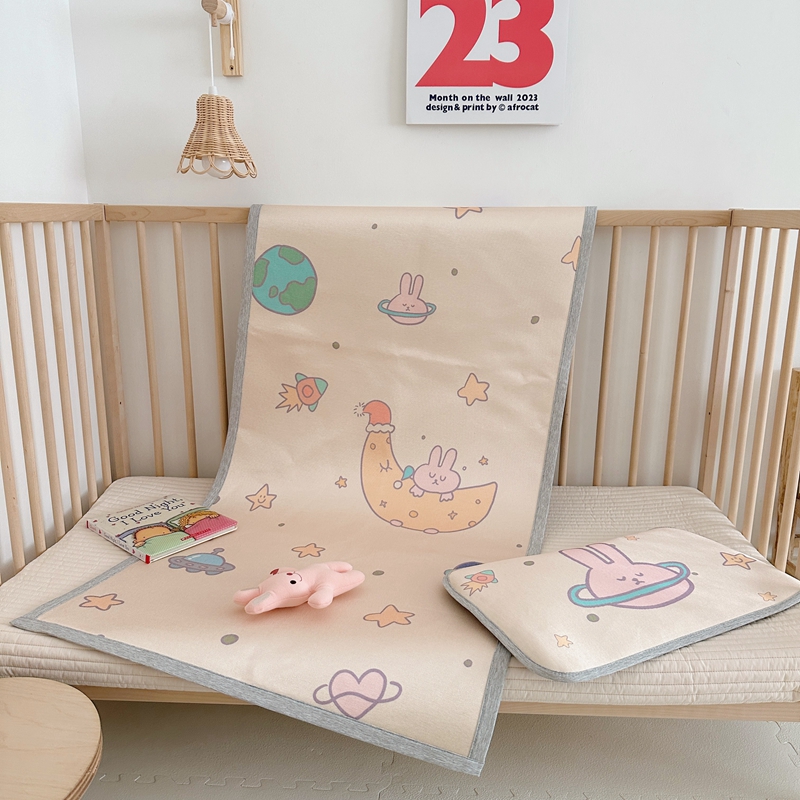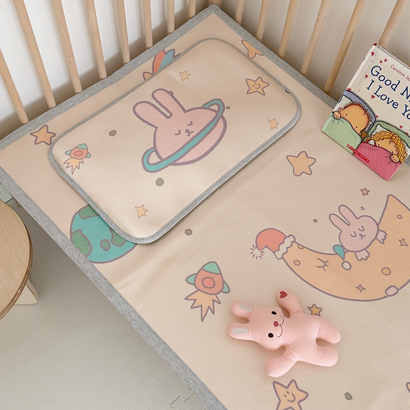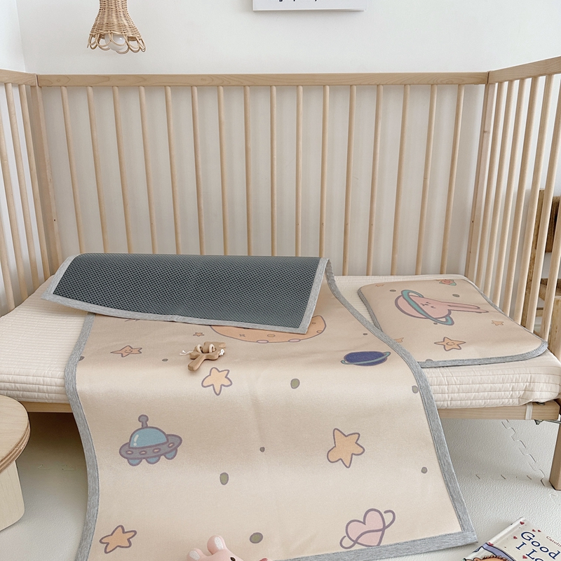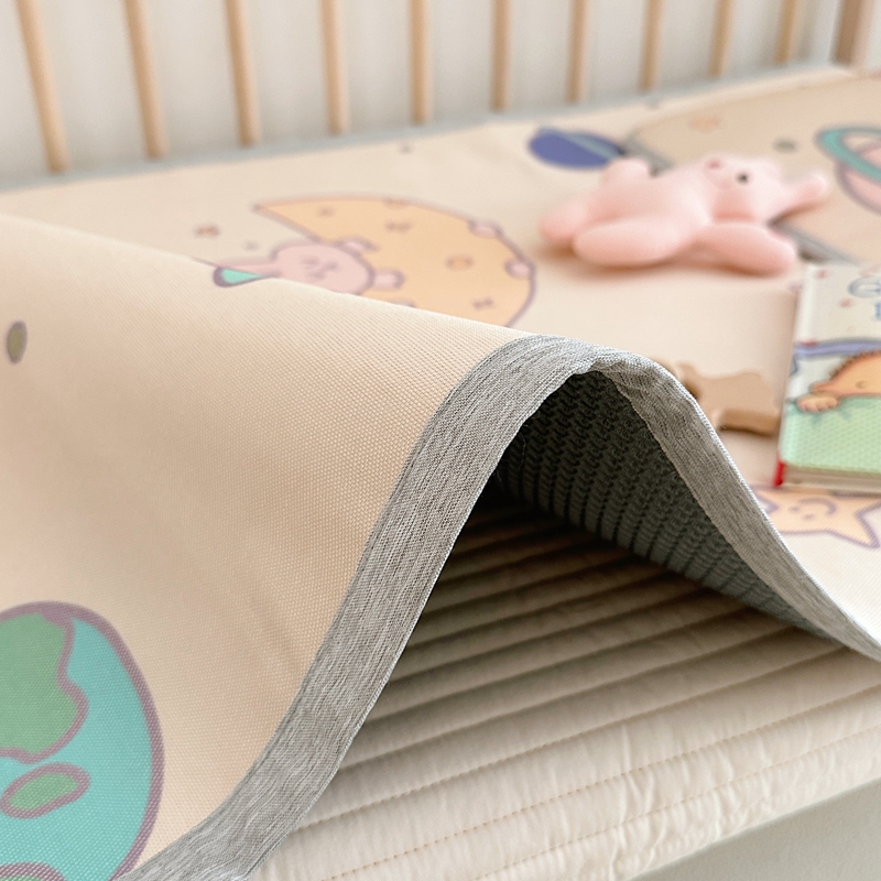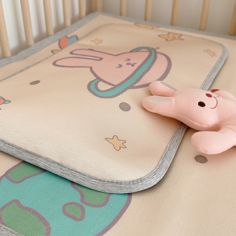 (总)橘滋 2025夏日新款高端A类原创设计婴儿童趣卡通数码印花冰丝席凉席-床席床笠,大眼熊仔,叠叠乐园,蝴蝶结兔兔,欢乐曲奇,木马小熊,太空冒险,熊猫胖达