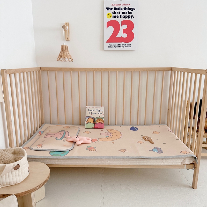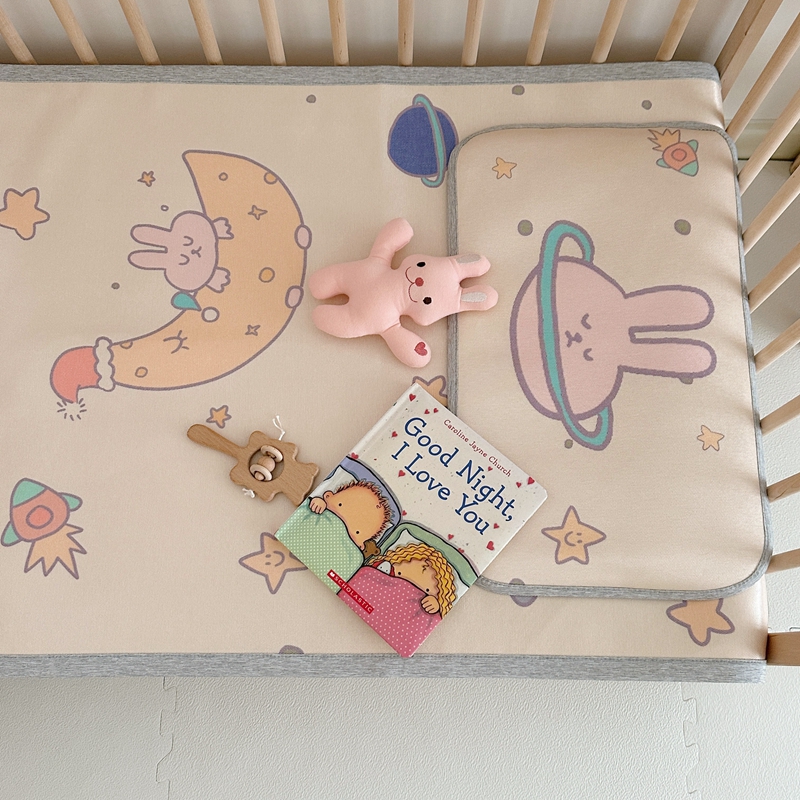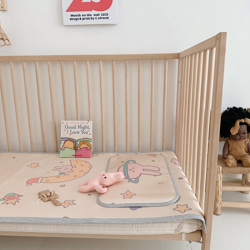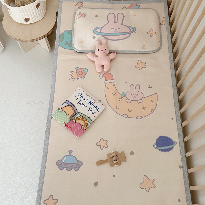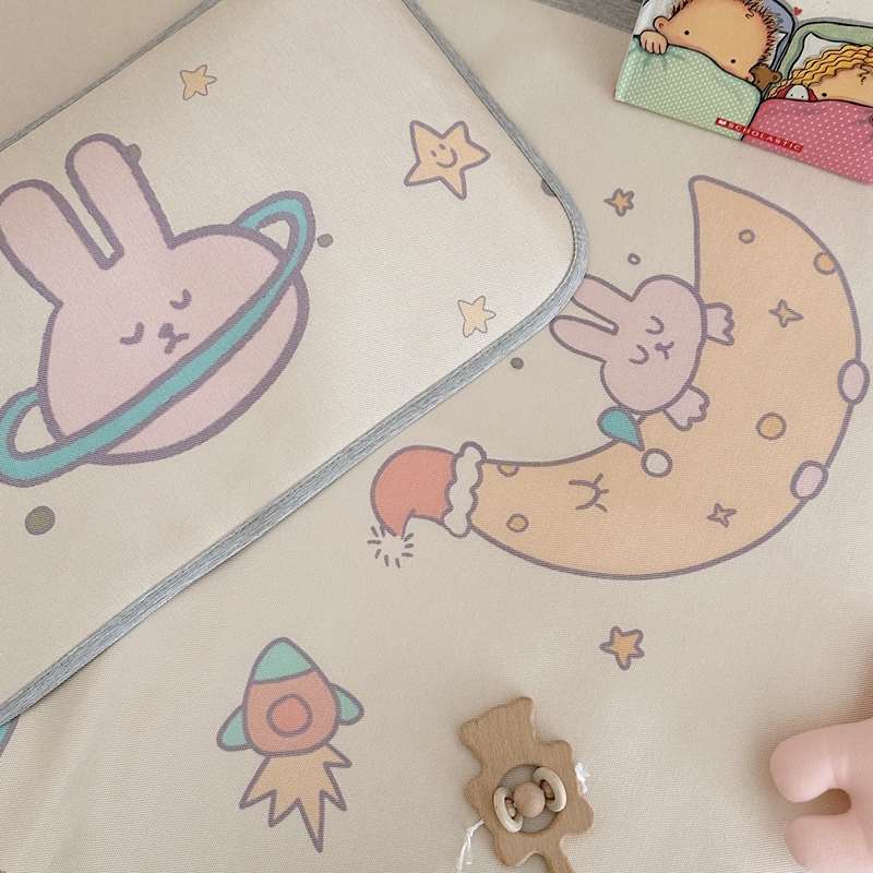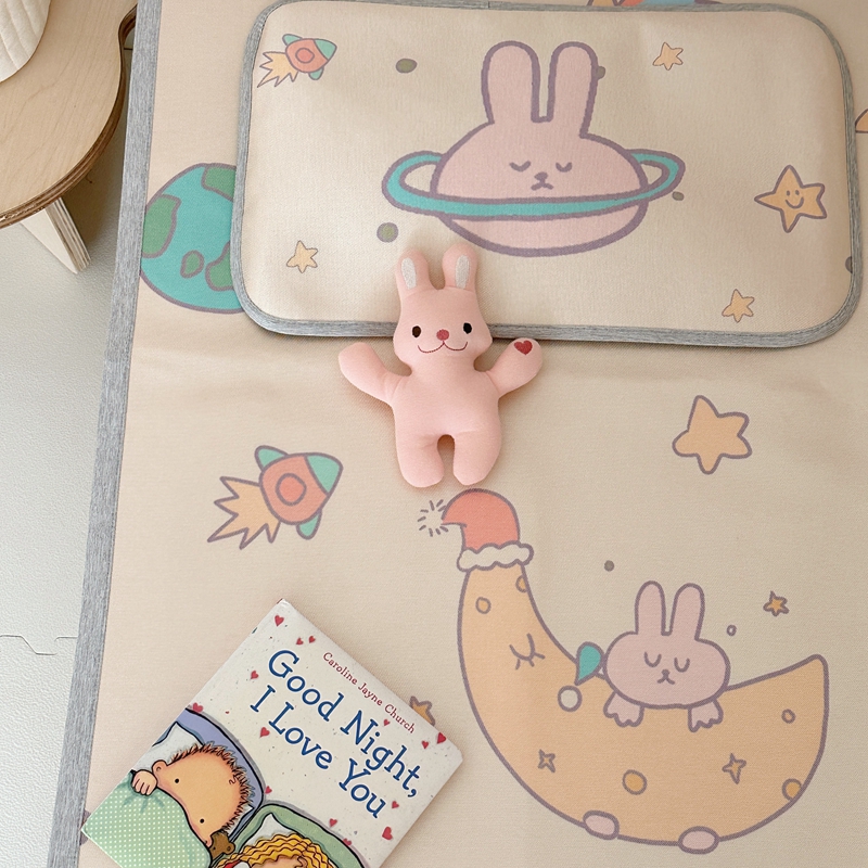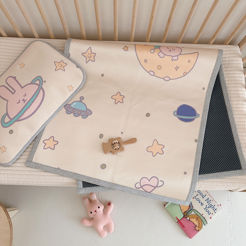 (总)橘滋 2025夏日新款高端A类原创设计婴儿童趣卡通数码印花冰丝席凉席-床席床笠,大眼熊仔,叠叠乐园,蝴蝶结兔兔,欢乐曲奇,木马小熊,太空冒险,熊猫胖达