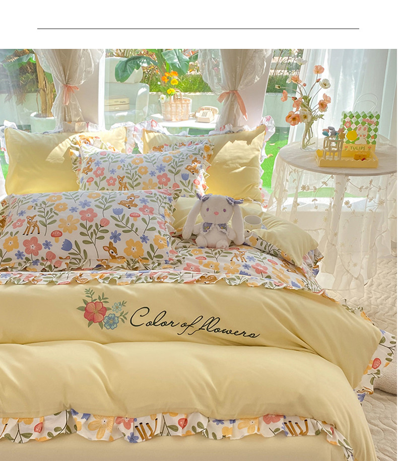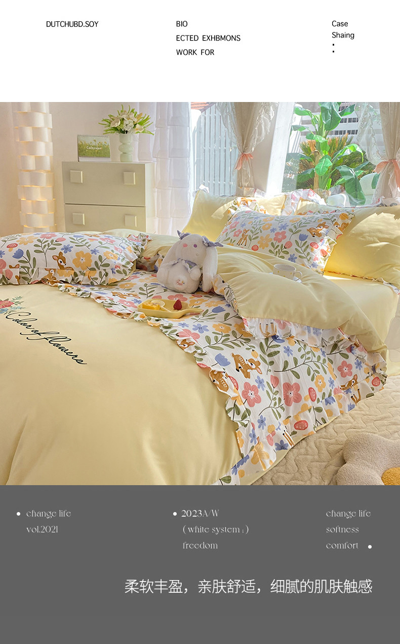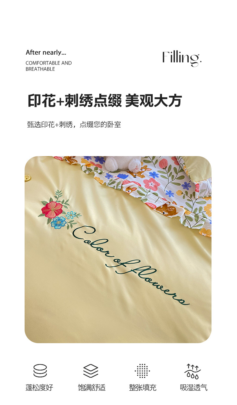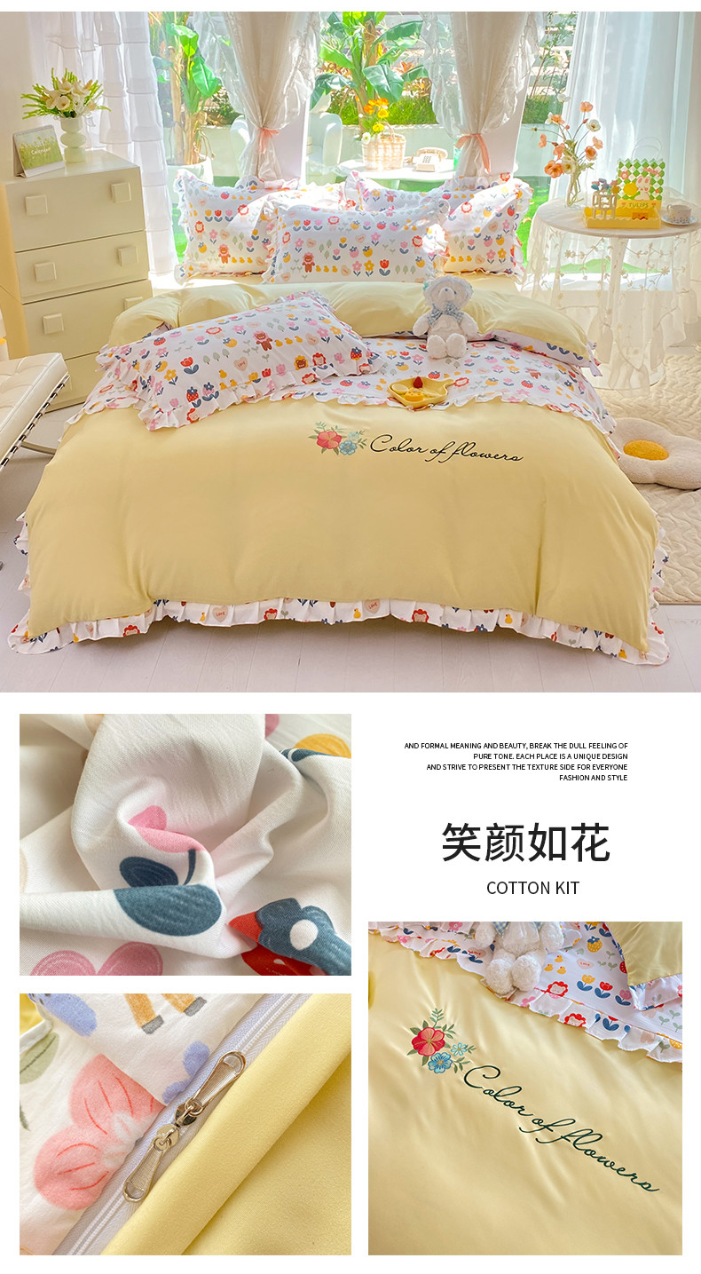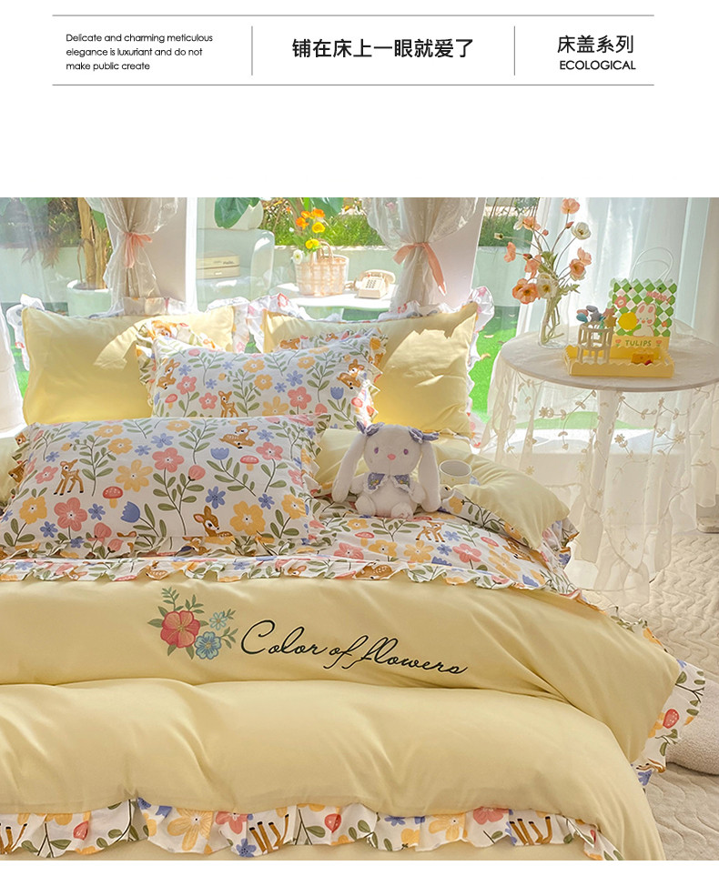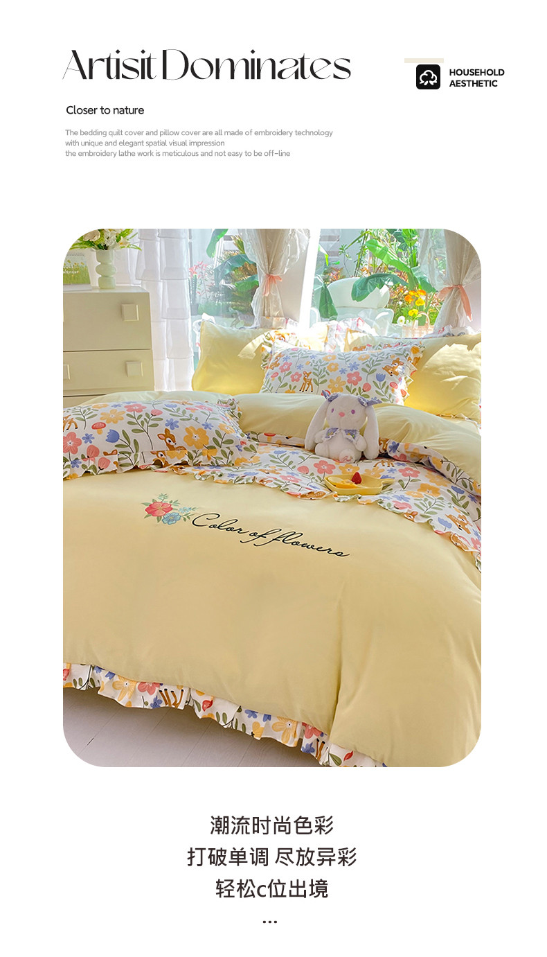当前位置: 91家纺网 > 商品网购 > 床品套件 > 四件套 > 水洗棉四件套 > 易辰美 2024新款双层纱水洗磨毛德芙棉绣花四件套 笑颜如花