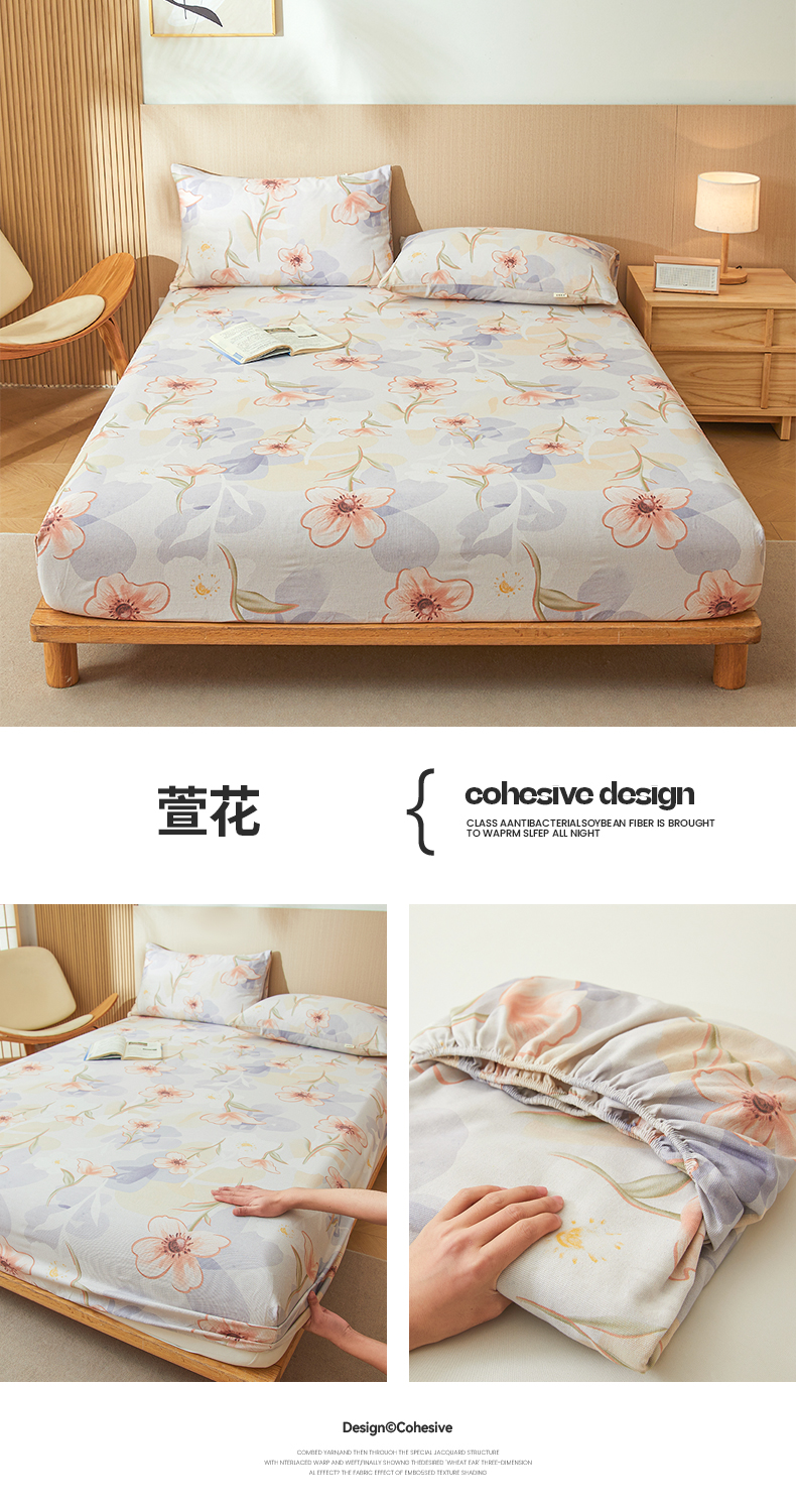 (总)大元 2026新款亲肤水洗棉双层纱提花四件套,春暖花开,多彩南瓜,花开富贵-红,兰花草-灰,水木清华-黄,薰衣草-紫