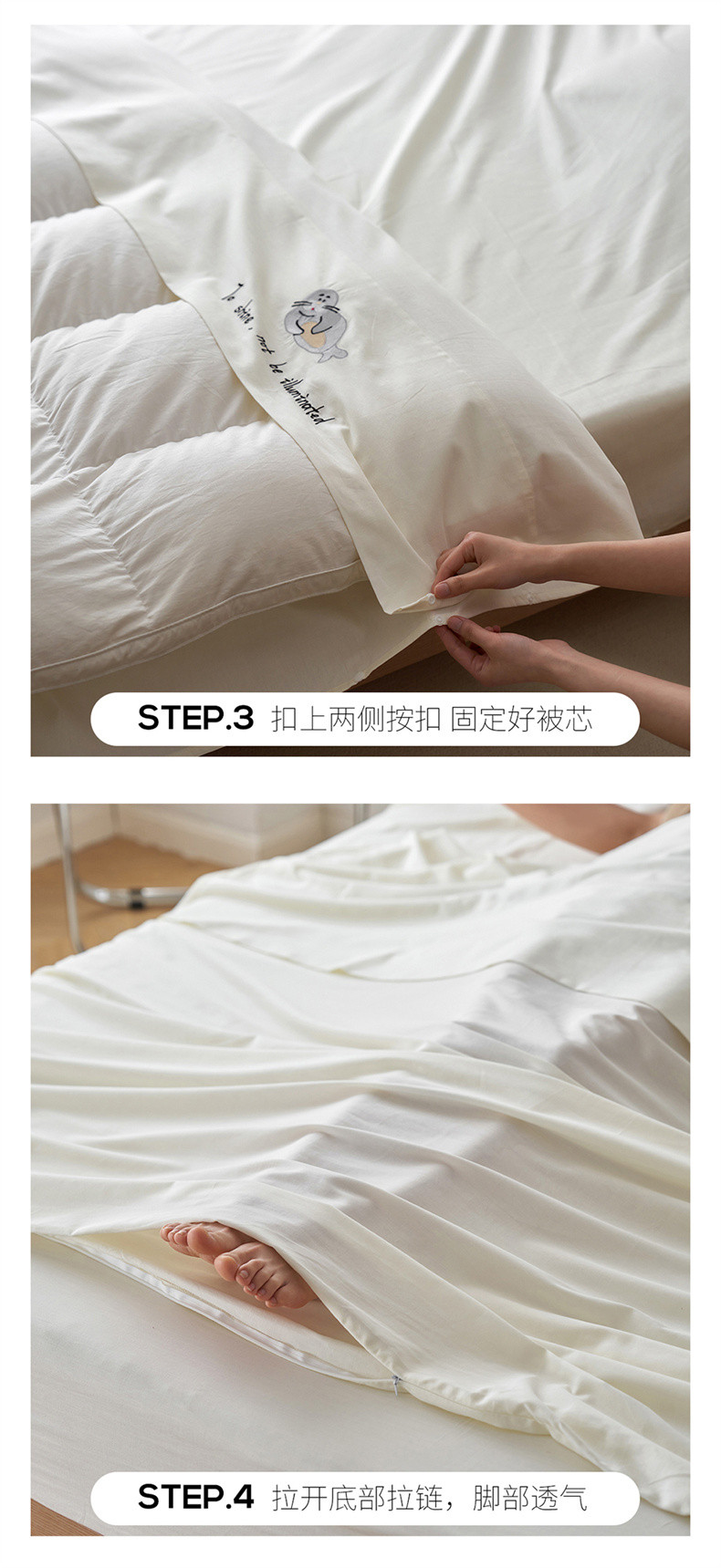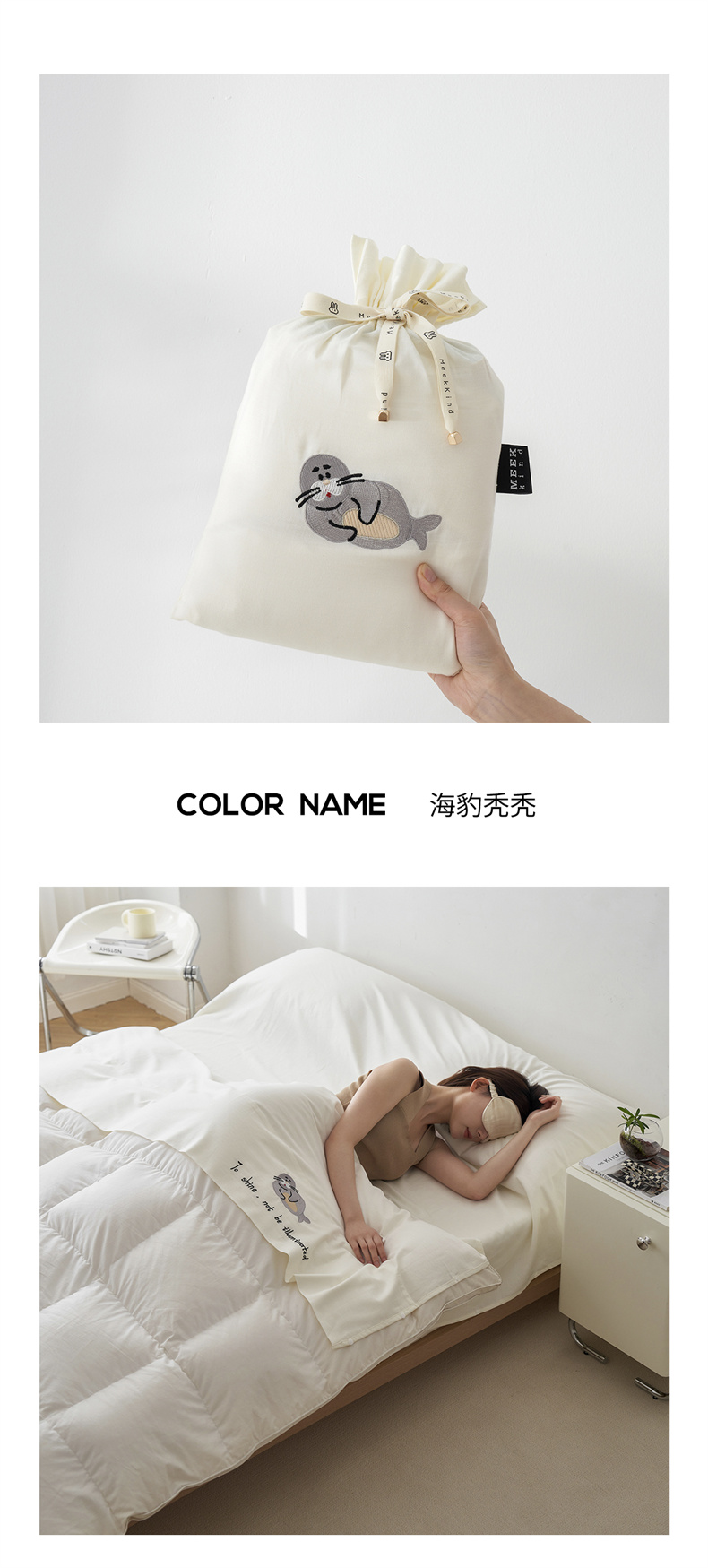 2022锦芙牛奶绒250克全消光绣花四件套,情绪熊猫-白竹