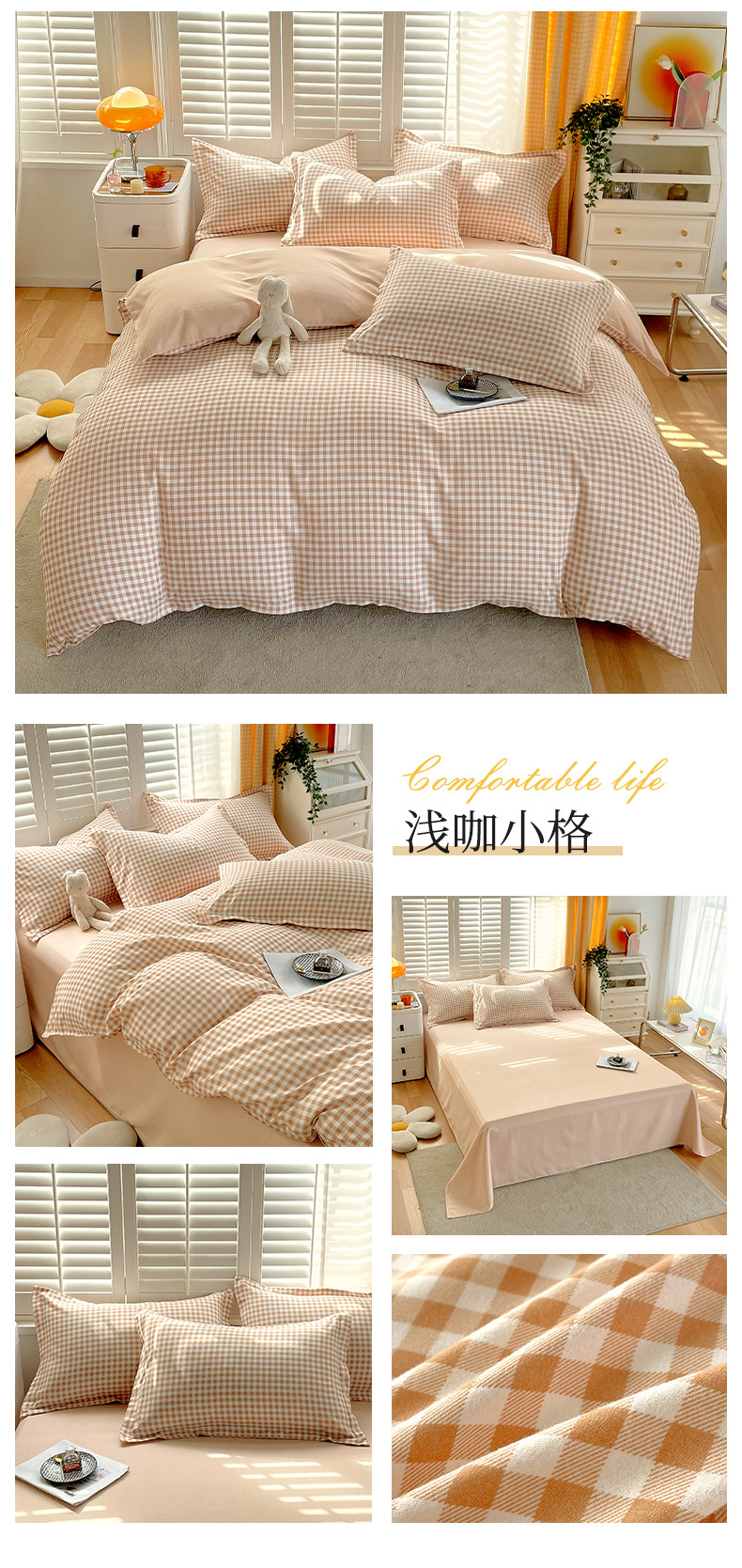 商品名称:好亿来家纺 2025新款无印风植物羊绒加厚斜纹磨毛单被套 浅咖小格