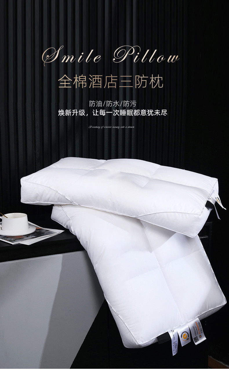 当前位置: 91家纺网 > 商品网购 > 枕头/枕芯/保健枕/颈椎枕 > 普通枕芯 > (总)拾光枕芯 2023新款全棉酒店三防枕防油防水防污高档酒店枕款1