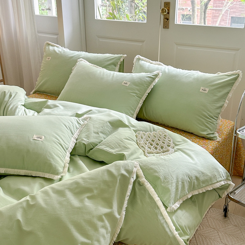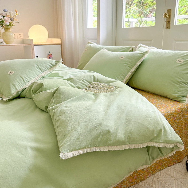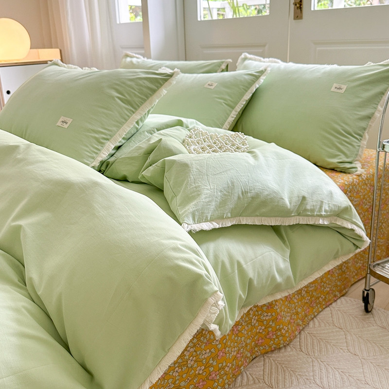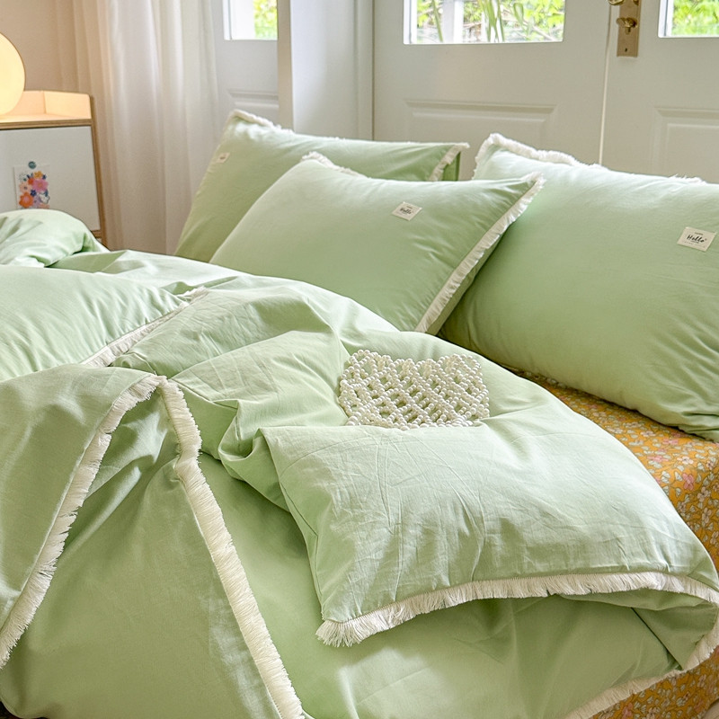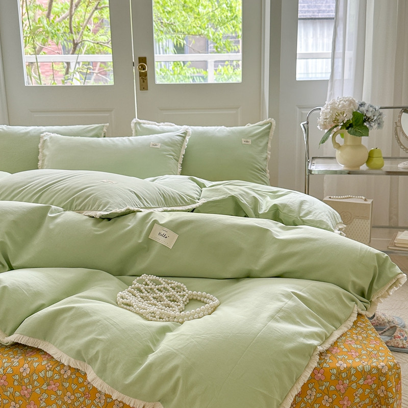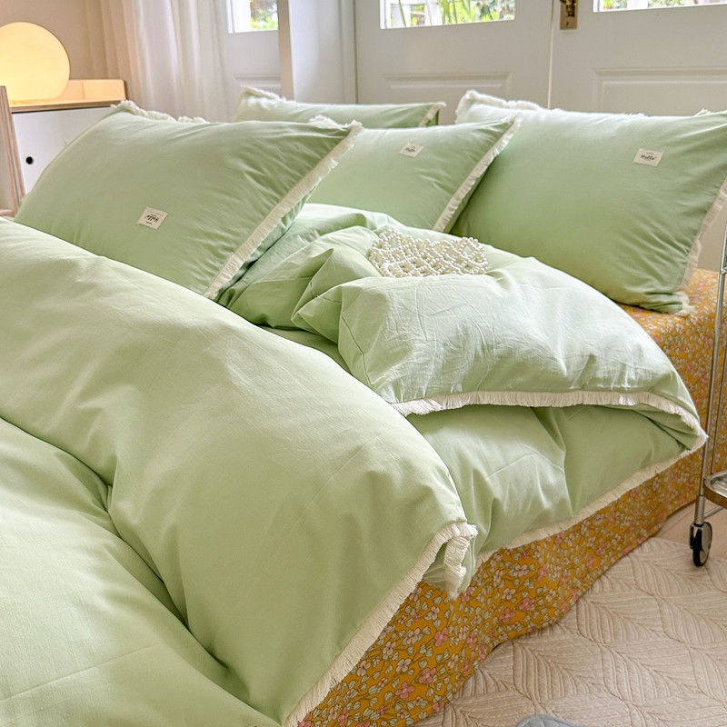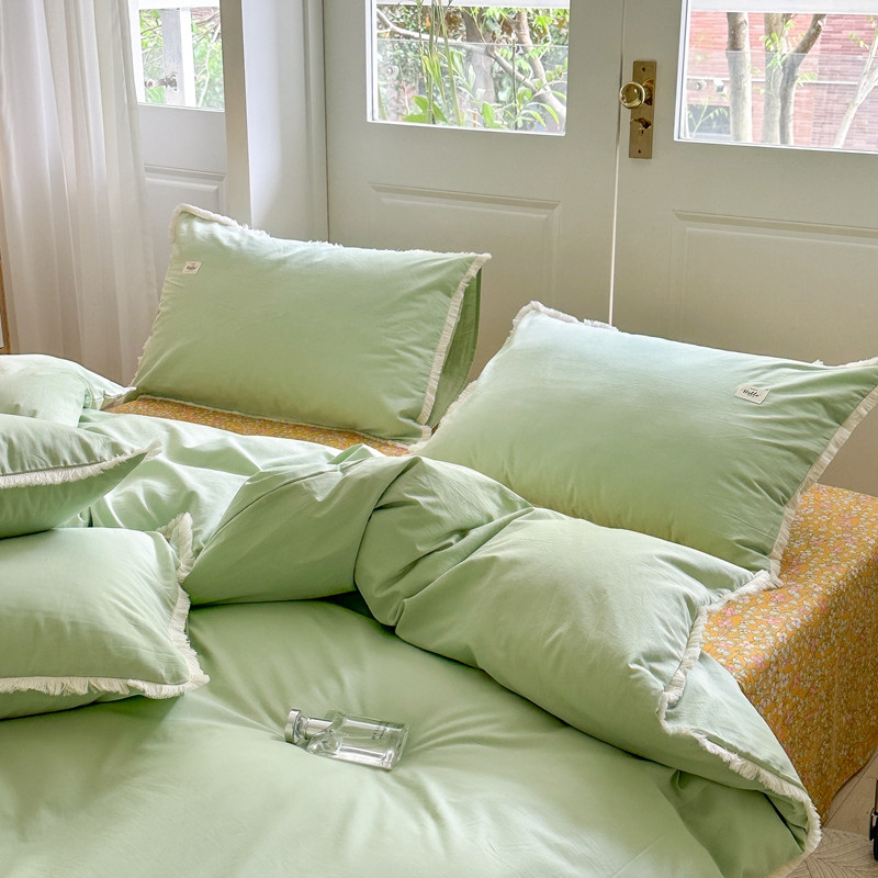 婳庭 2023新款全棉印花流苏四件套-场景二 橘彩
