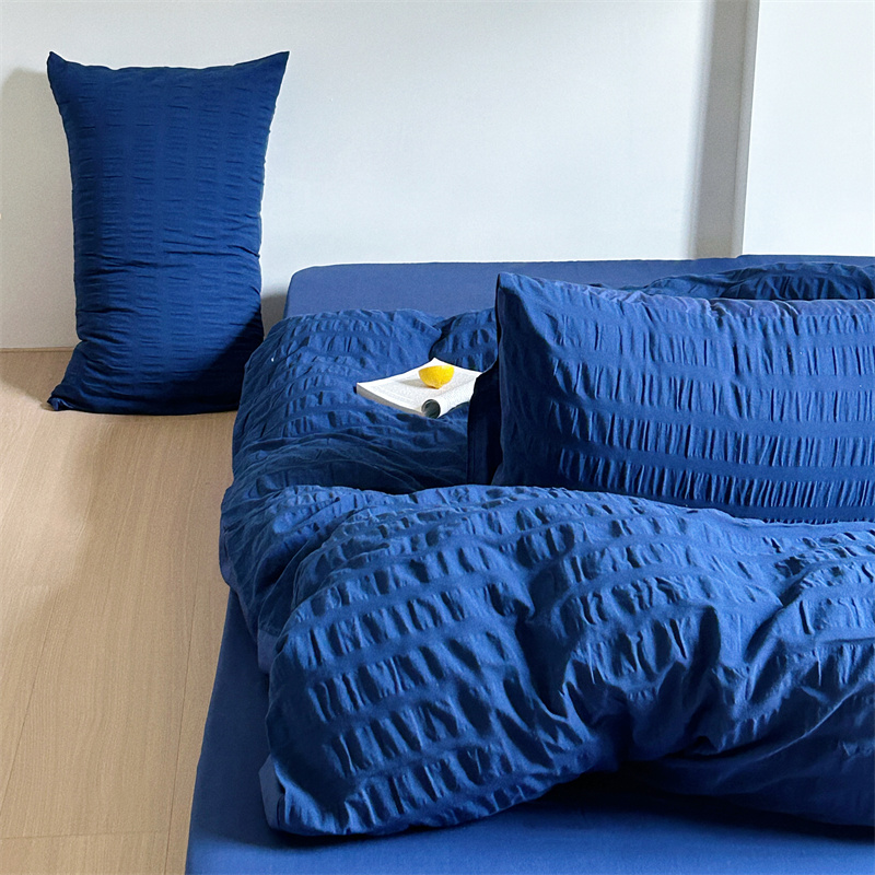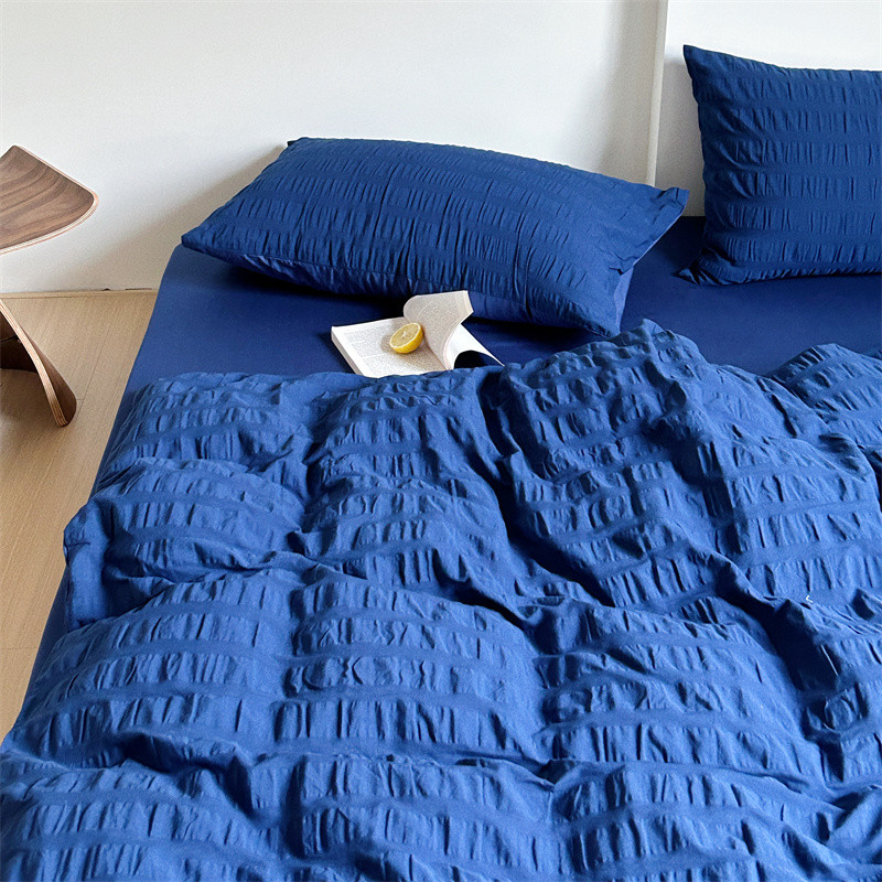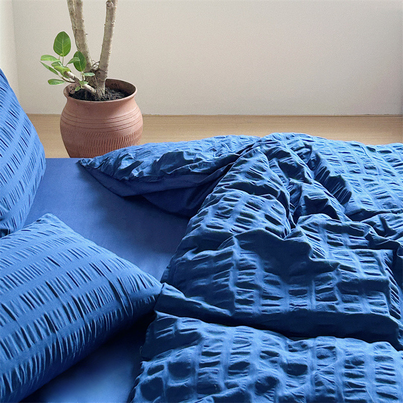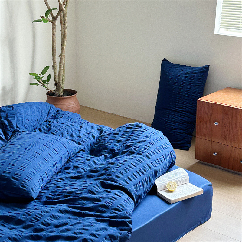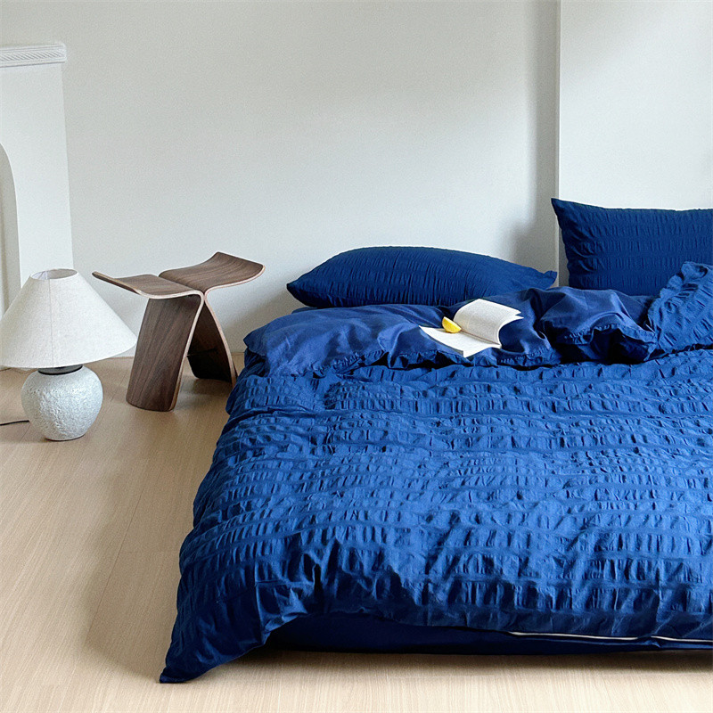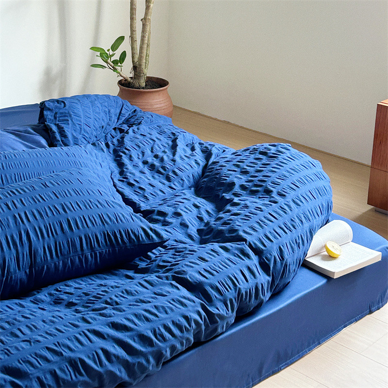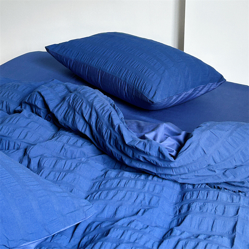 商品名称:简家居 2023新款全棉纯色泡泡款四件套 蓝色泡泡
