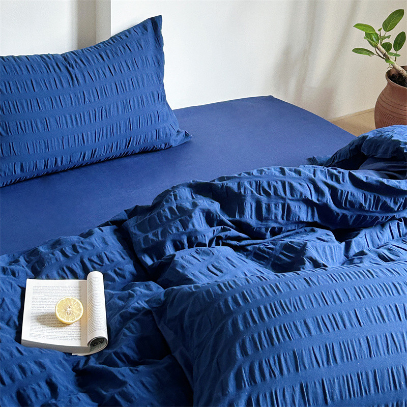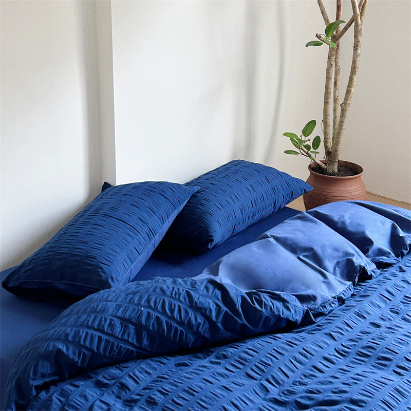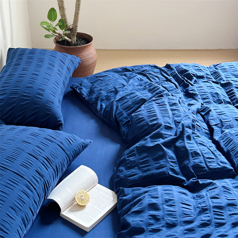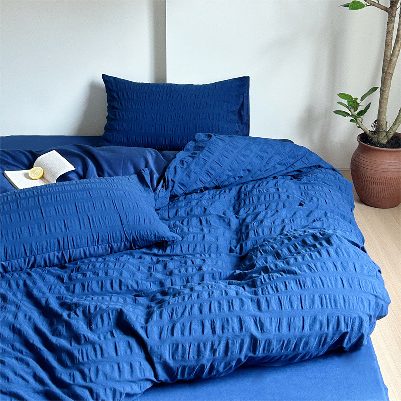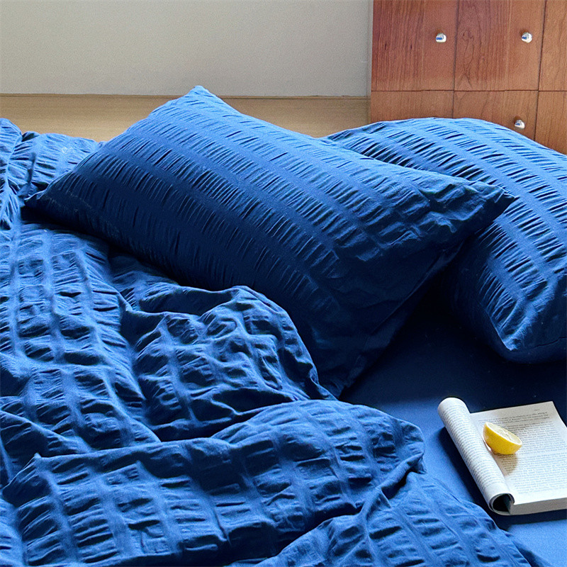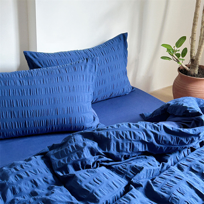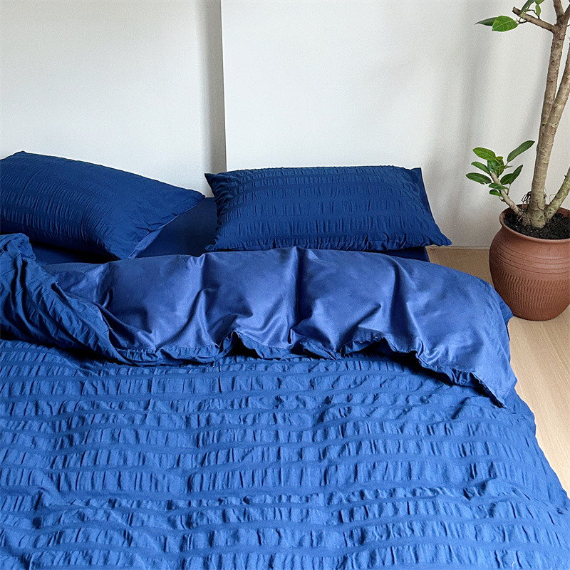 商品名称:简家居 2023新款全棉纯色泡泡款四件套 蓝色泡泡