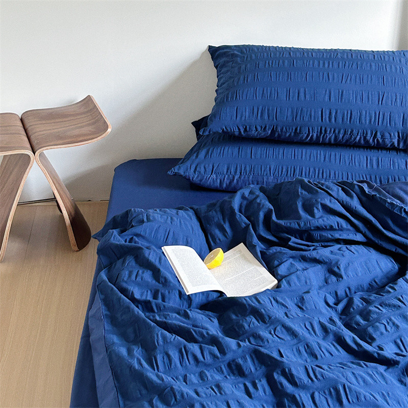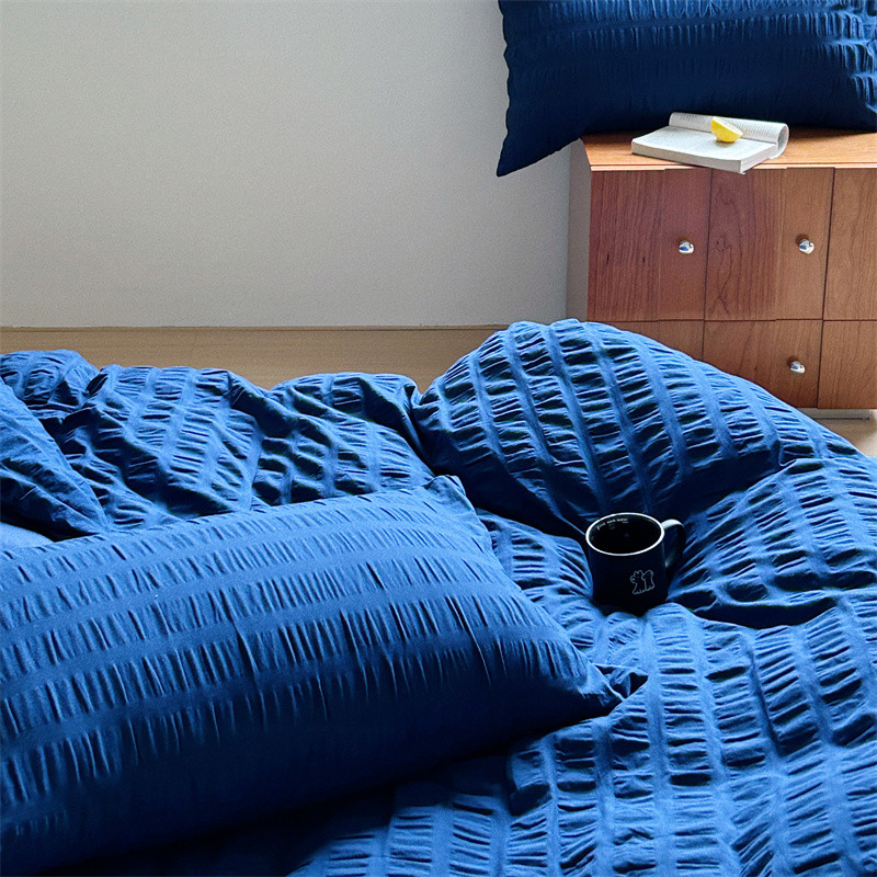 简家居 2023新款全棉纯色泡泡款四件套 蓝色泡泡