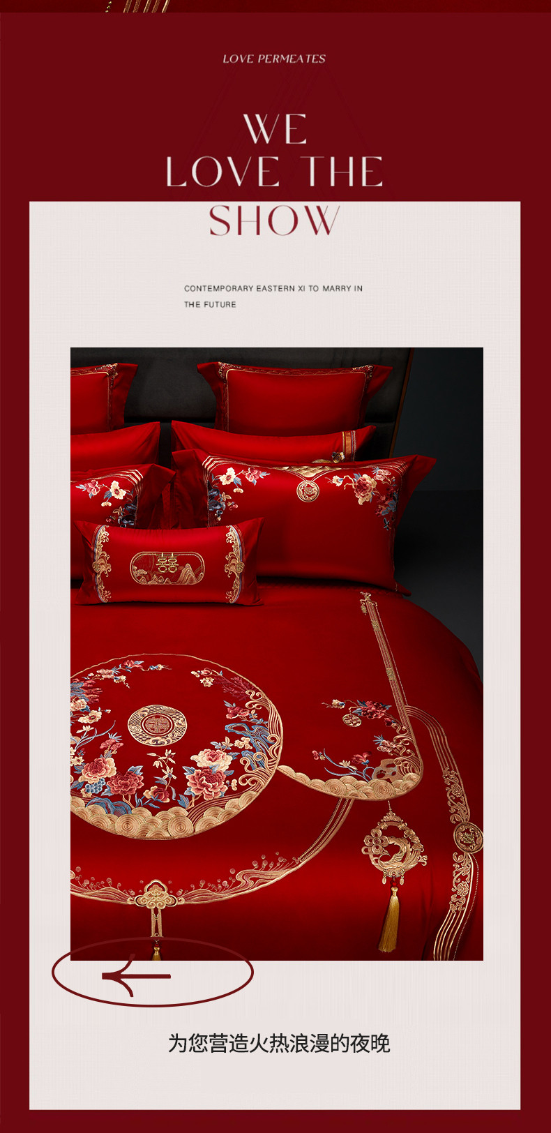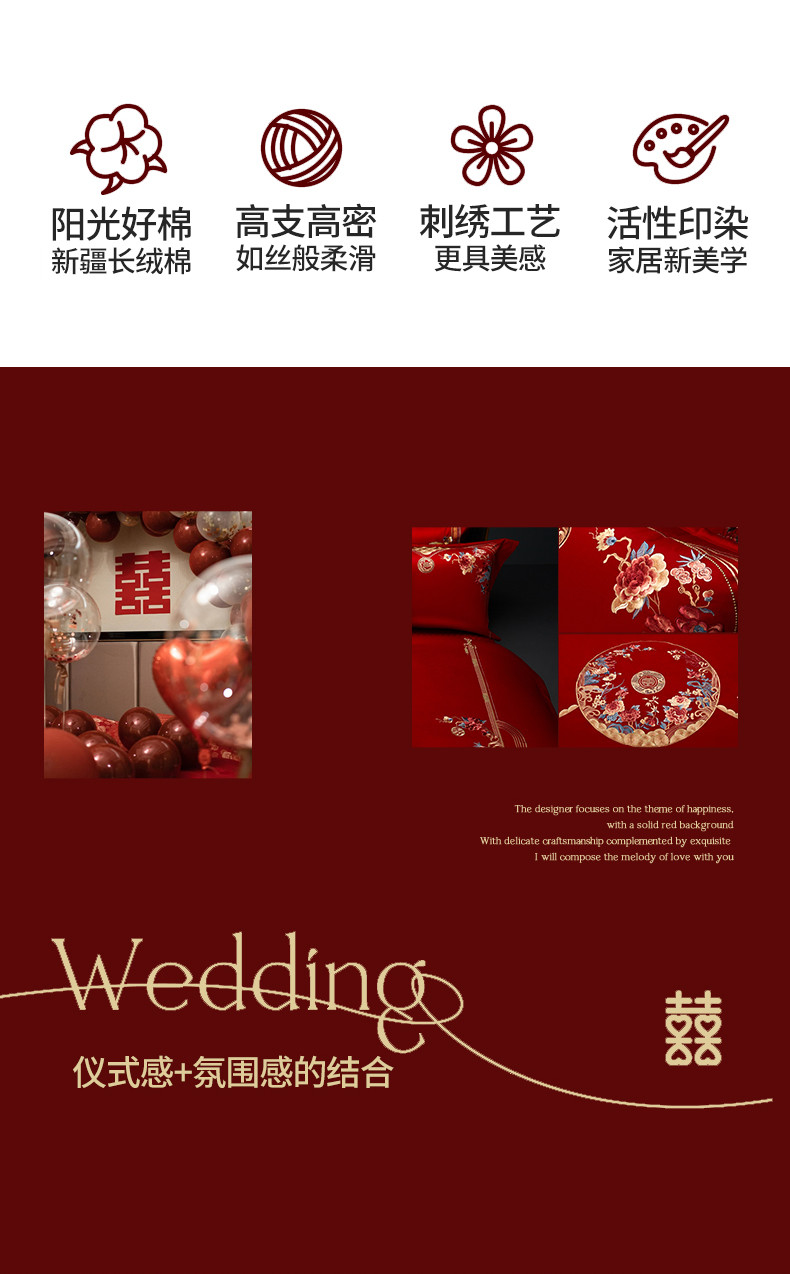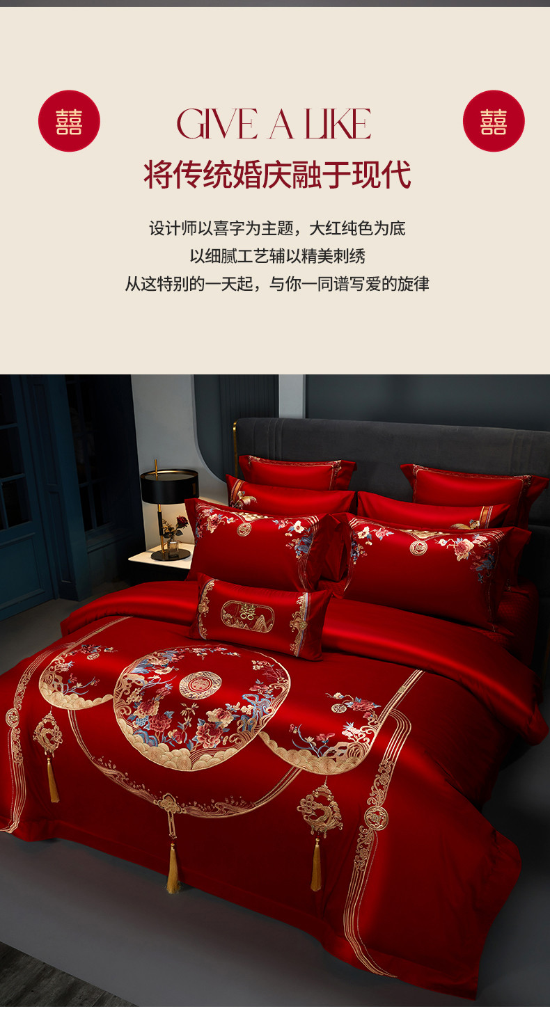 当前位置: 91家纺网 > 商品网购 > 床品套件 > 四件套 > 长绒棉四件套 > 美娘阁 2023年秋冬新款双面长绒棉刺绣提花工艺系列款婚庆套件 花前月下