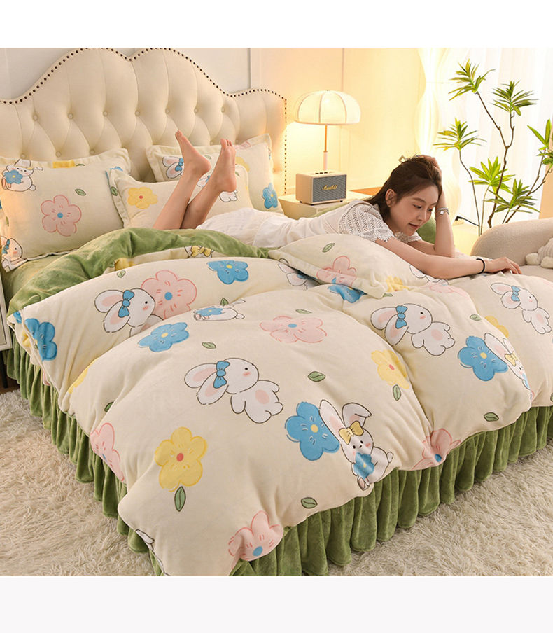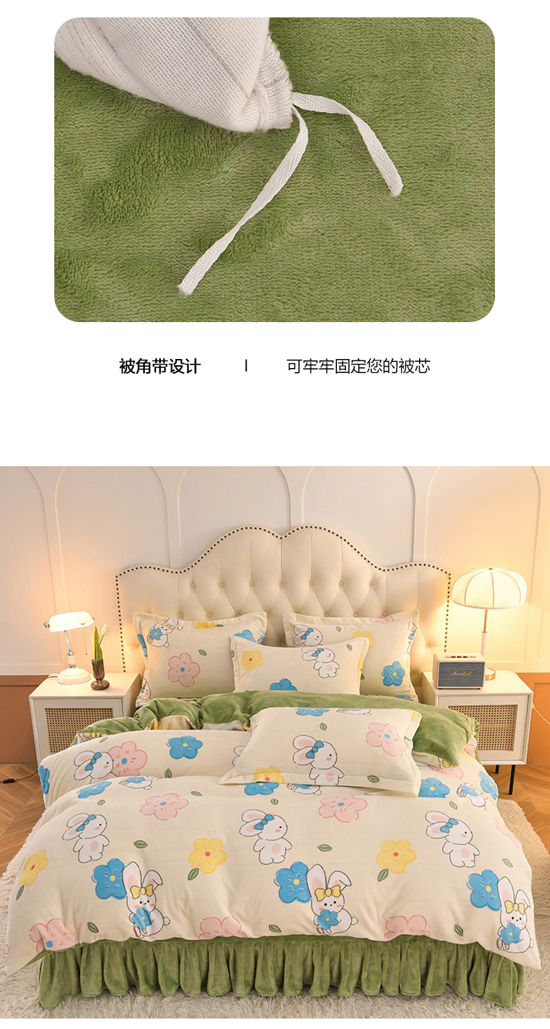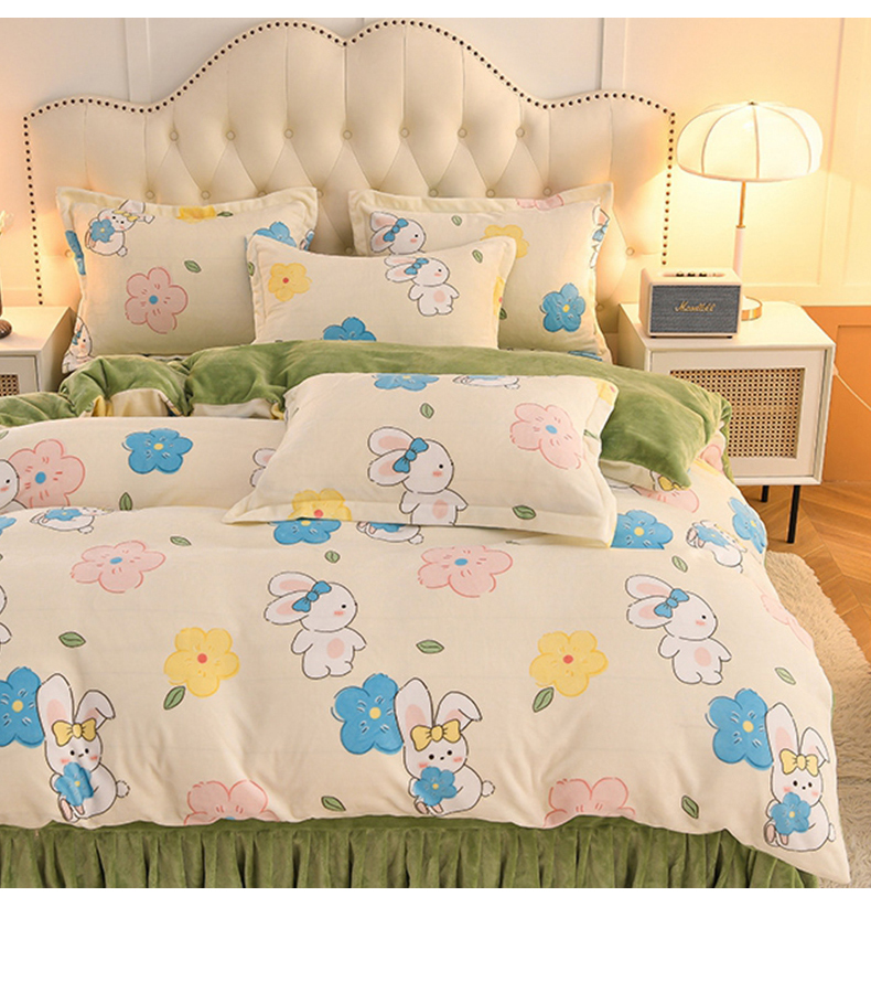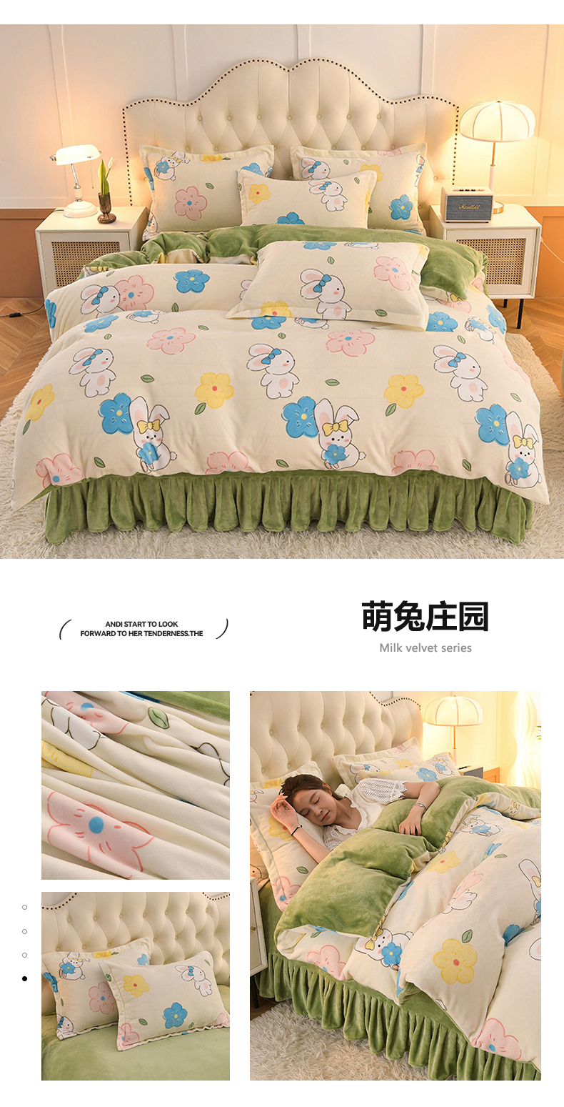 商品名称:牵梦萦家纺 2025新款牛奶绒印花四件套系列 萌兔庄园
