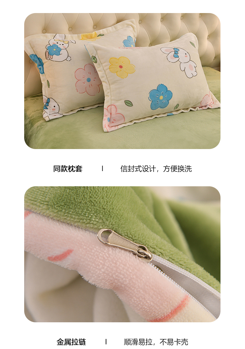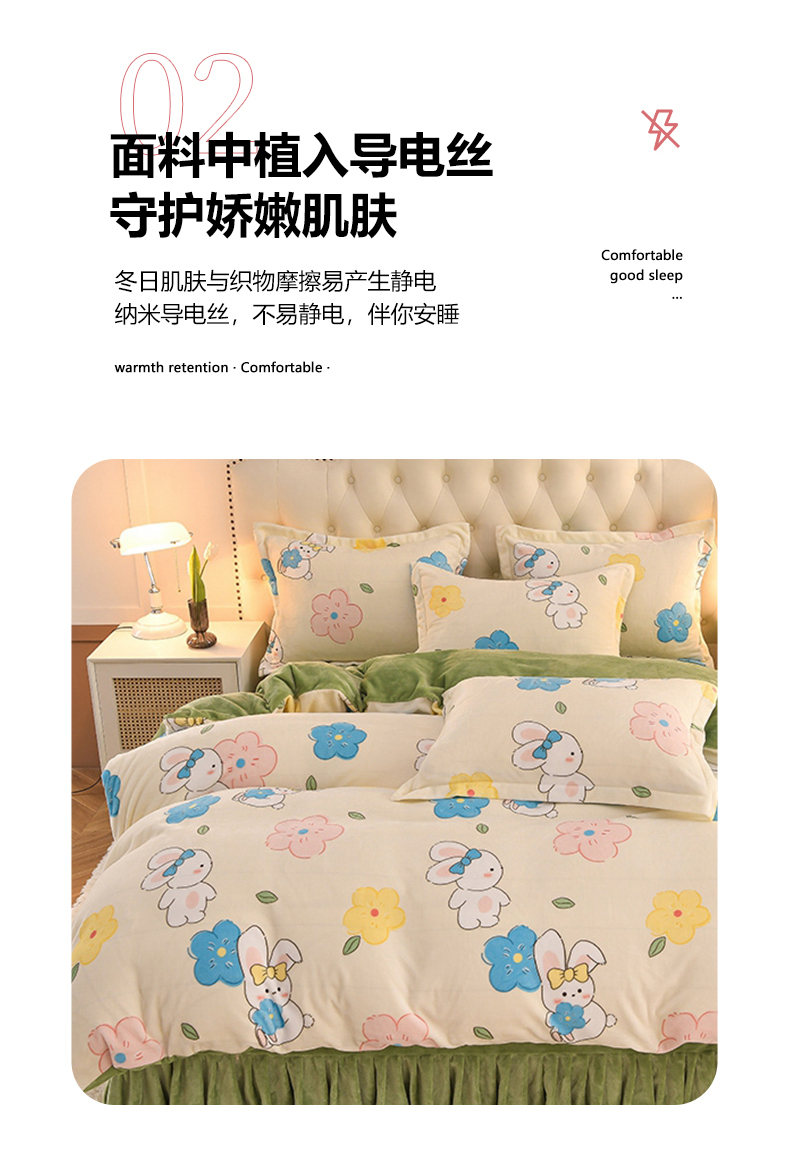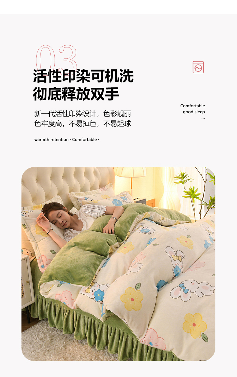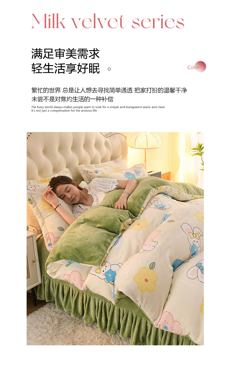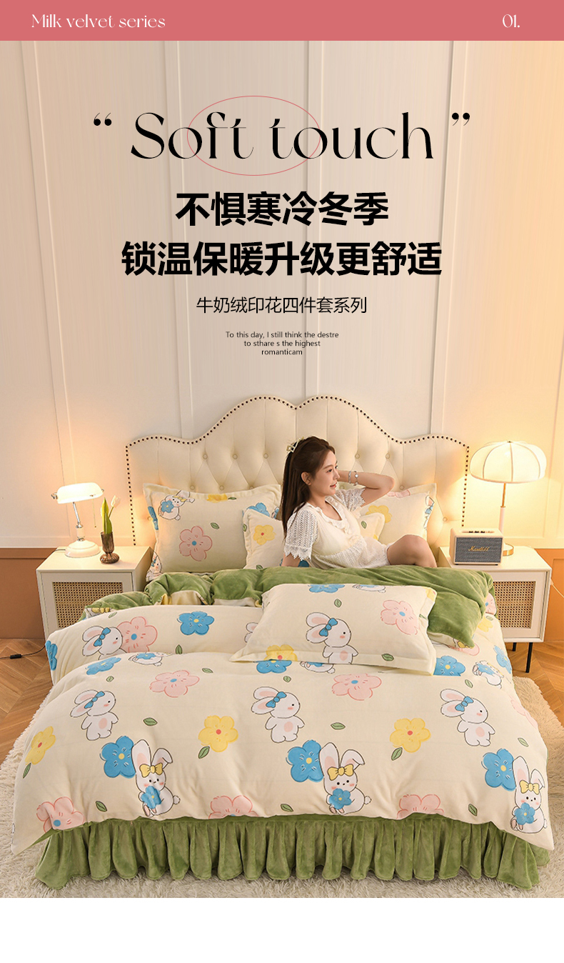 牵梦萦家纺 2025新款牛奶绒印花四件套系列 萌兔庄园