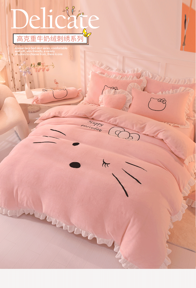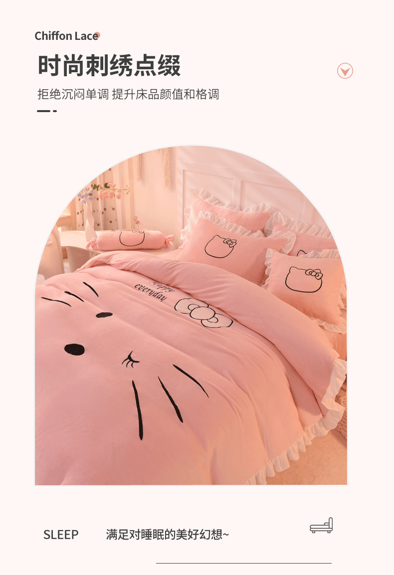 当前位置: 91家纺网 > 商品网购 > 床品套件 > 四件套 > 牛奶绒四件套 > 丝印良品 2024新款高端牛奶绒卡通刺绣牛奶绒四件套 美美猫-粉