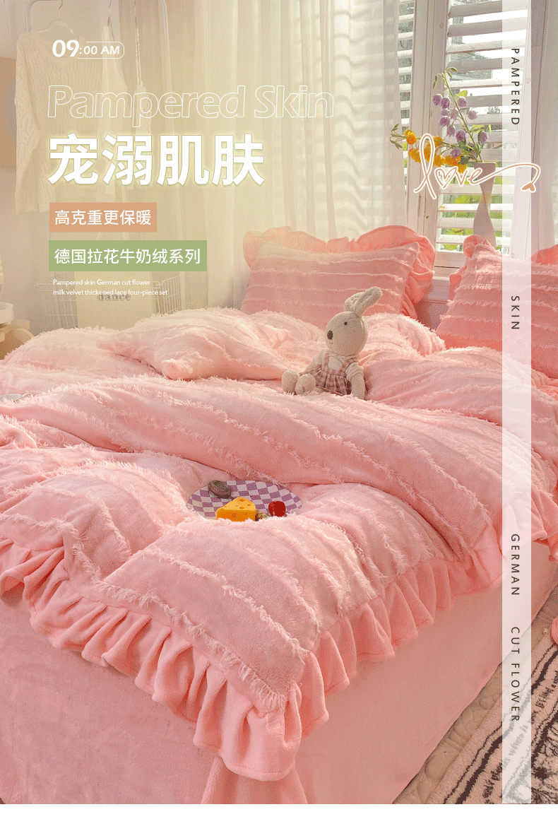 欧冠 2023新款高端牛奶绒提花四件套 蜜桃粉