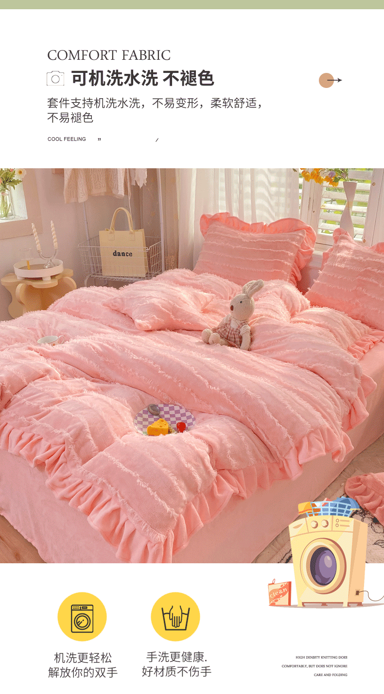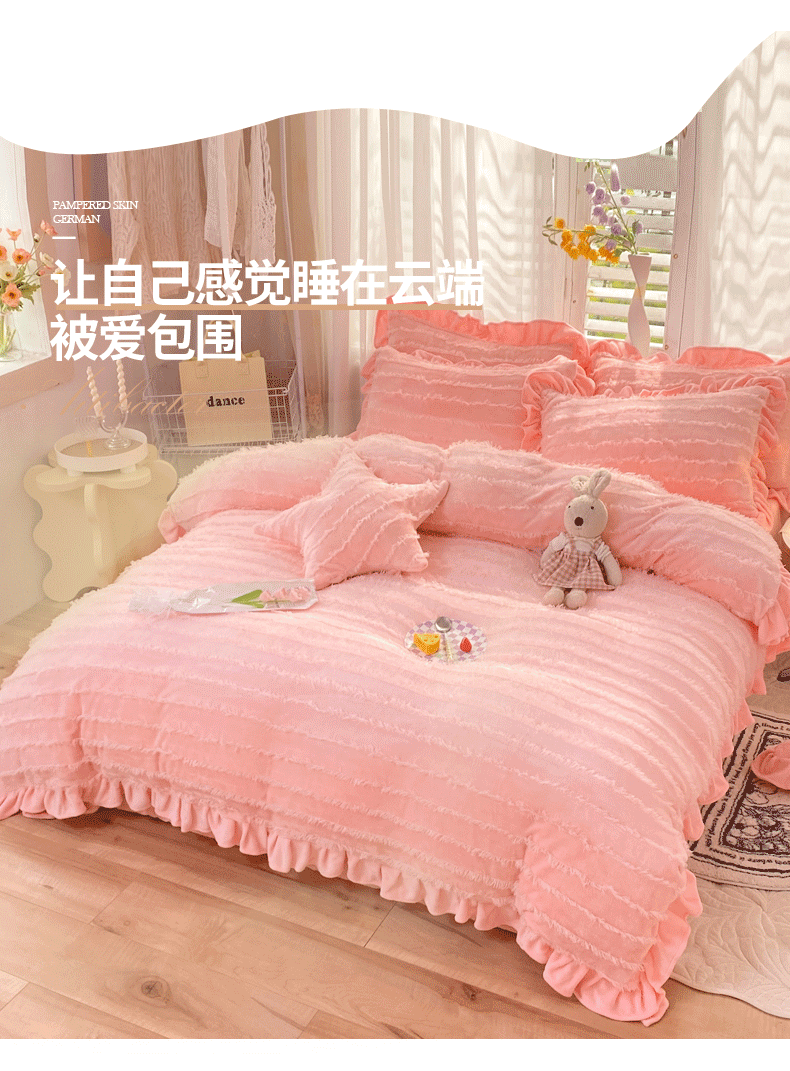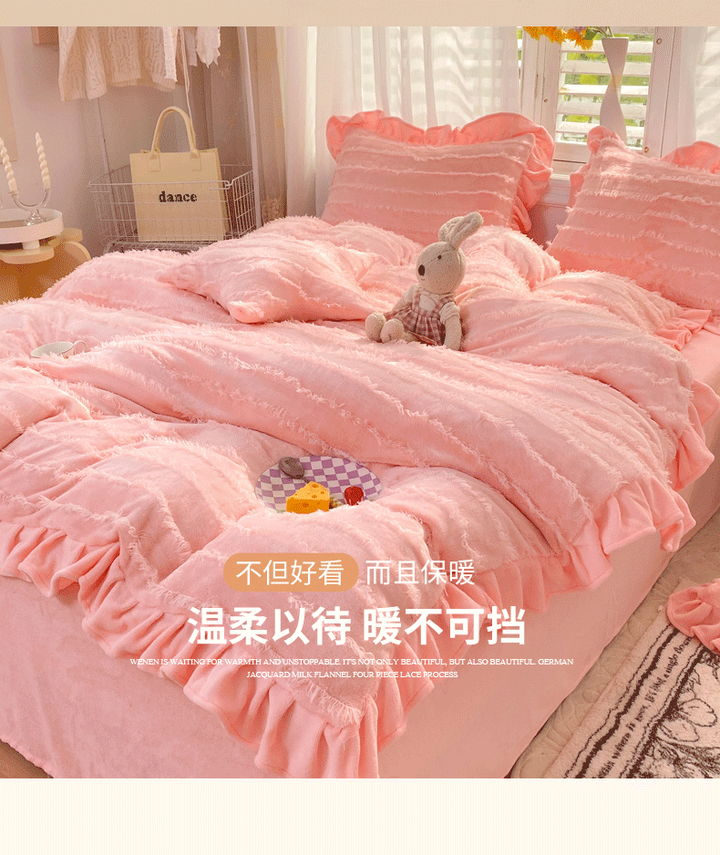 商品名称:欧冠 2023新款高端牛奶绒提花四件套 蜜桃粉