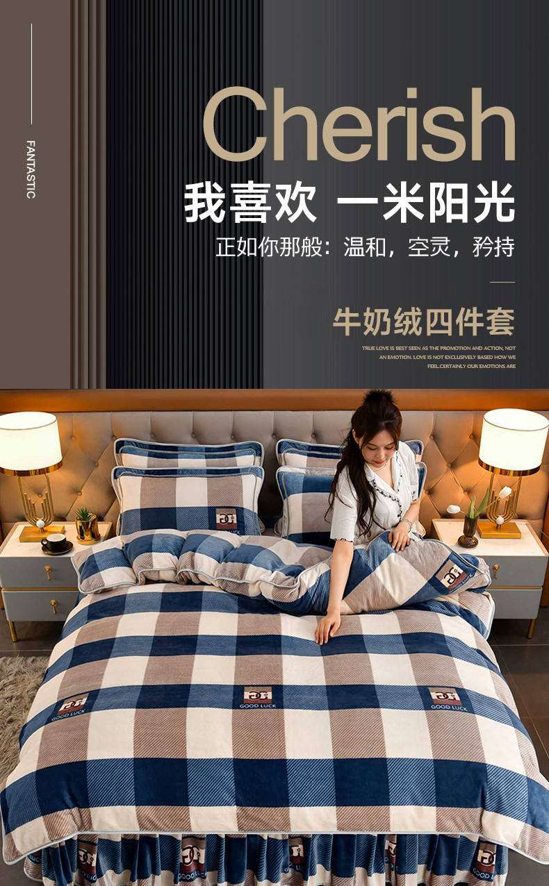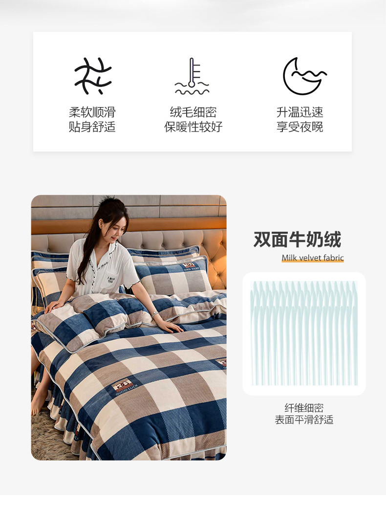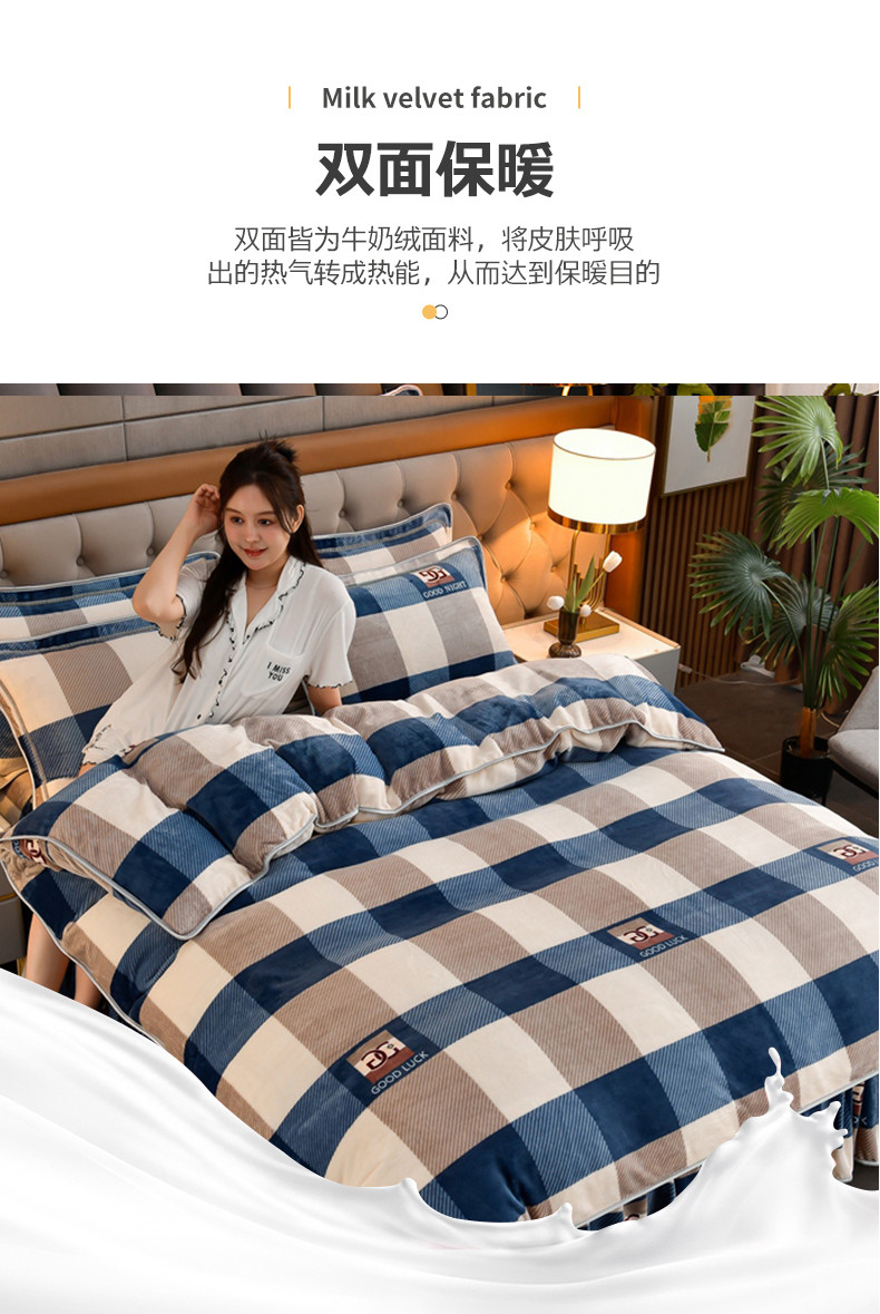 当前位置: 91家纺网 > 商品网购 > 床品套件 > 四件套 > 牛奶绒四件套 > 绒宴 2025新款牛奶绒四件套 大蓝格
