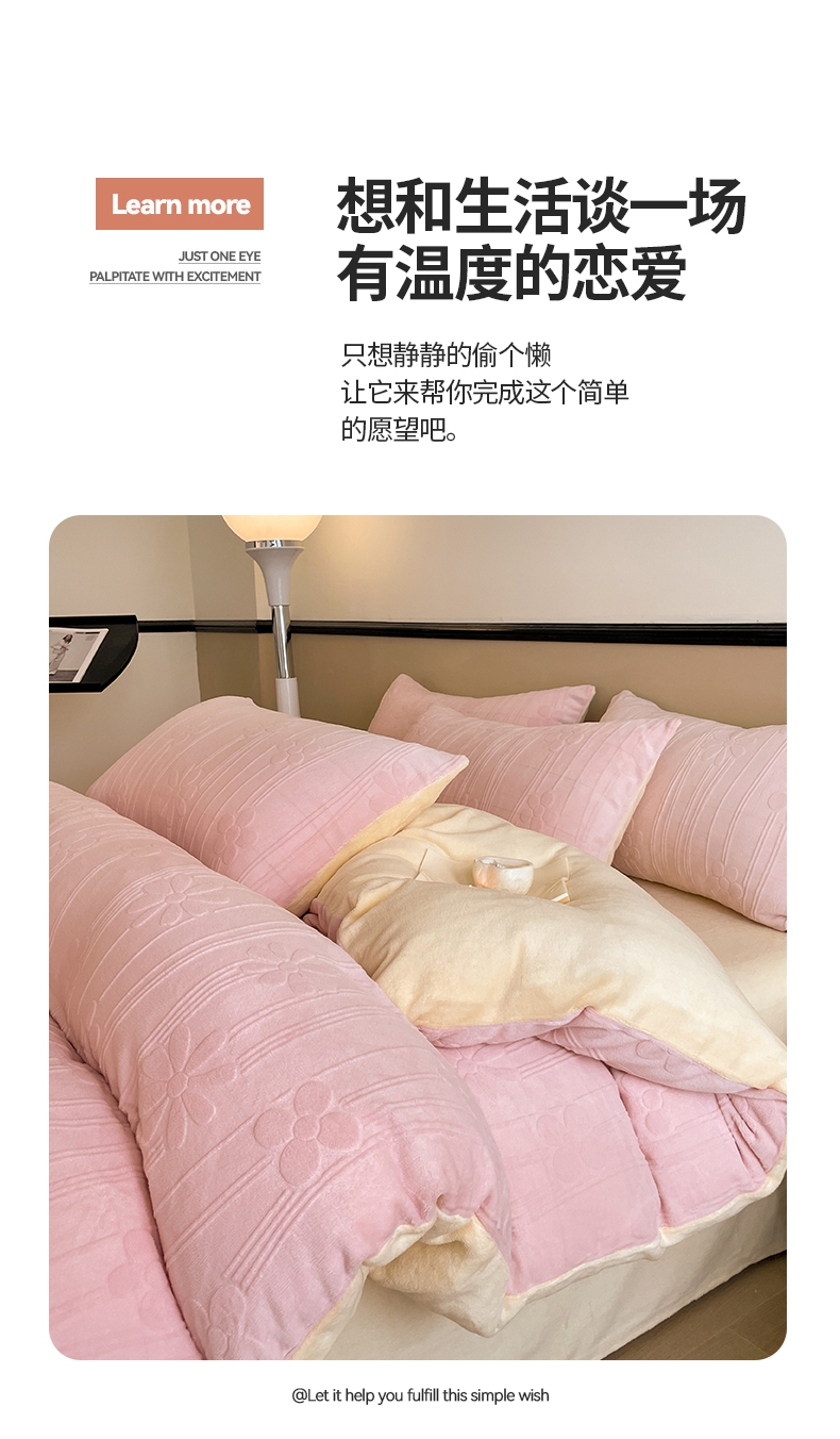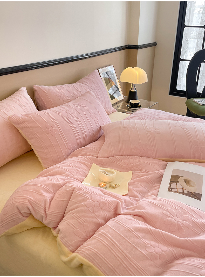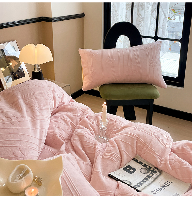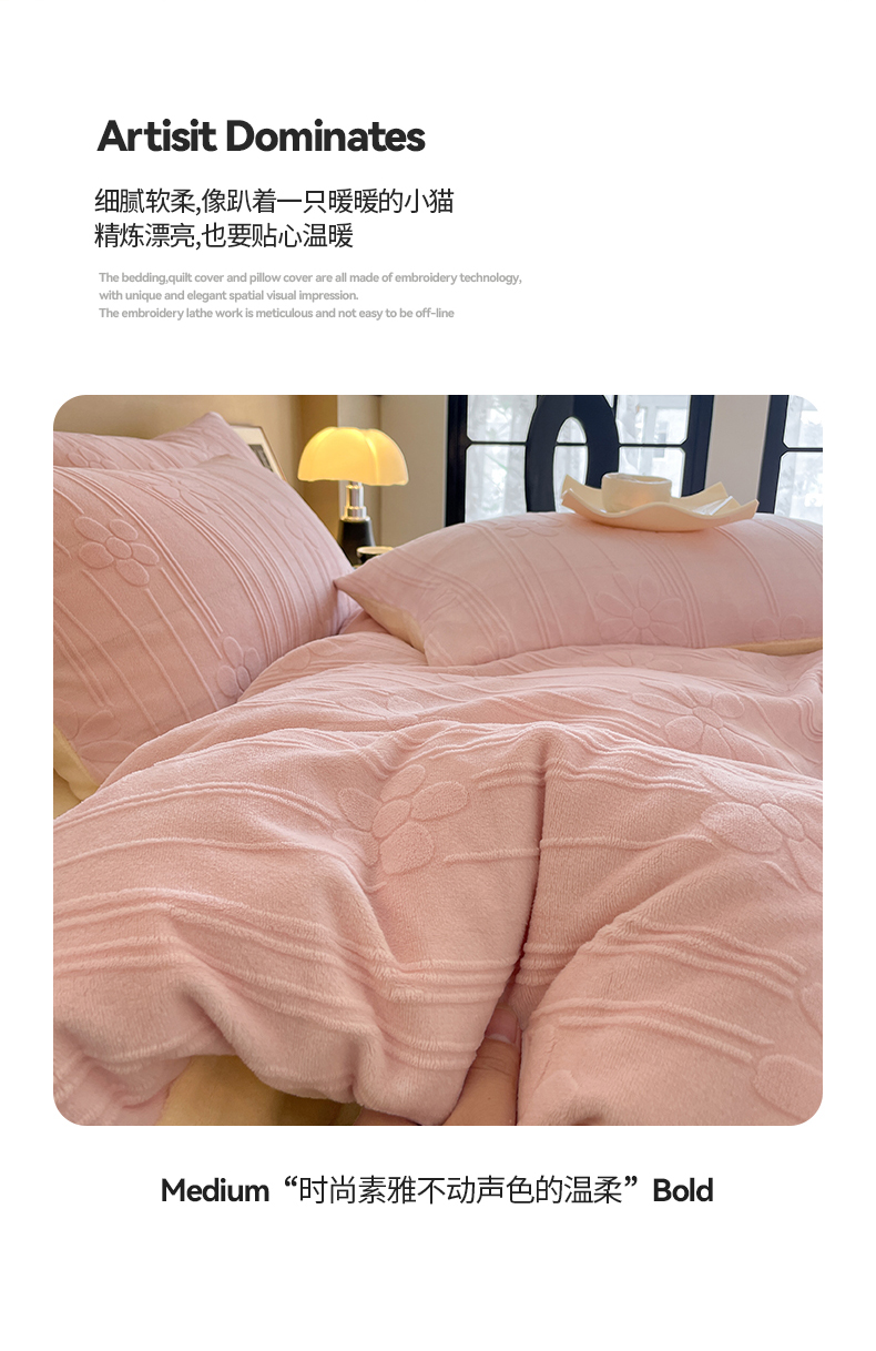 澳梵 2023新款雕花牛奶绒四件套 冬日花信-粉