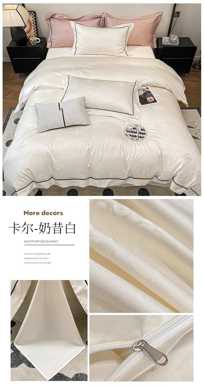 当前位置: 91家纺网 > 商品网购 > 床品套件 > 四件套 > 长绒棉四件套 > 慕色 2023新款A类100s长绒棉提花卡尔系列四件套 卡尔-奶昔白