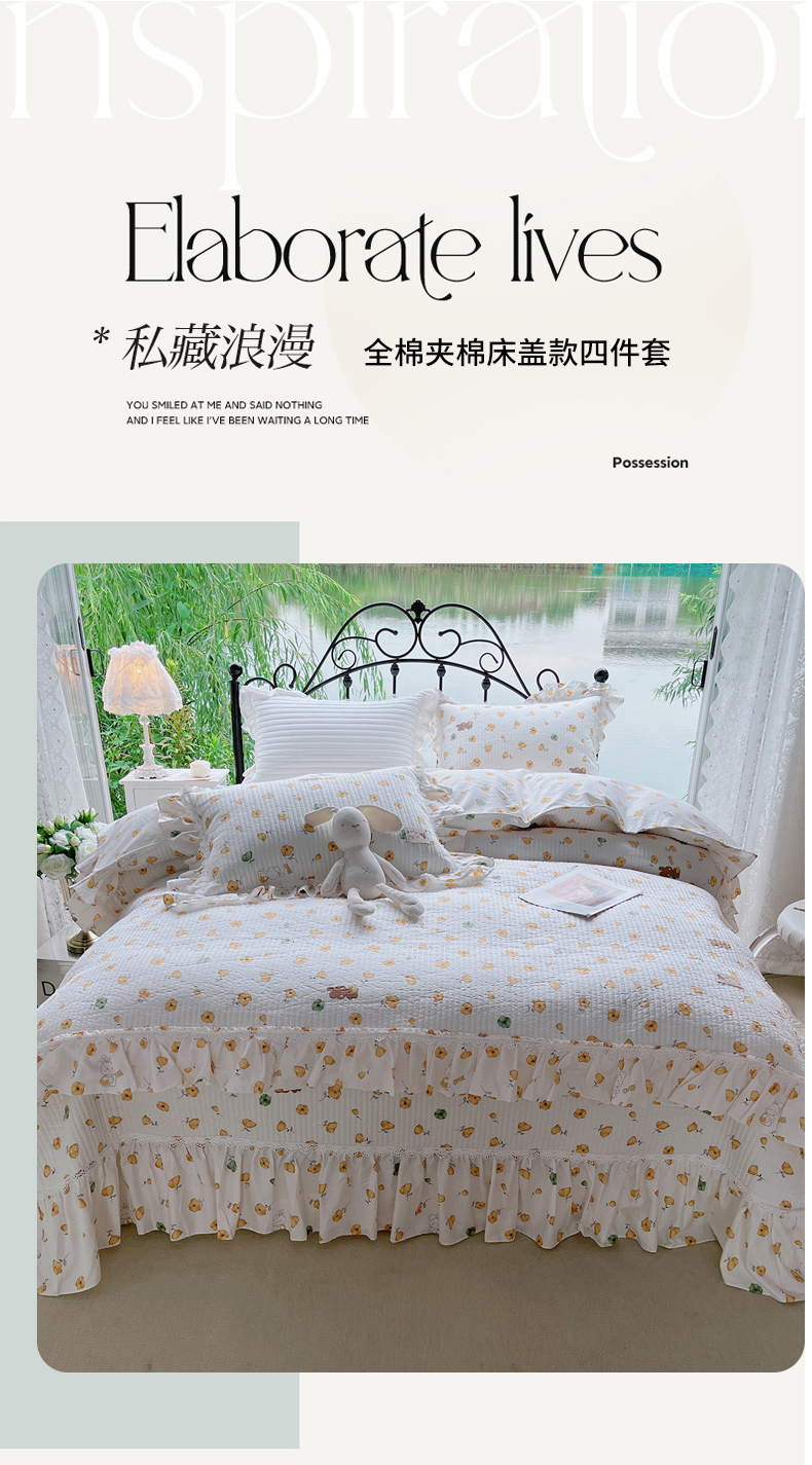 (总)菊上家纺 2023秋冬新品法式花边全棉床盖四件套,安妮紫,花千骨,小欢喜,布拉格,罗蔓莉,玛雅灰,小幸运,卡町绿,恋花影,薇薇安