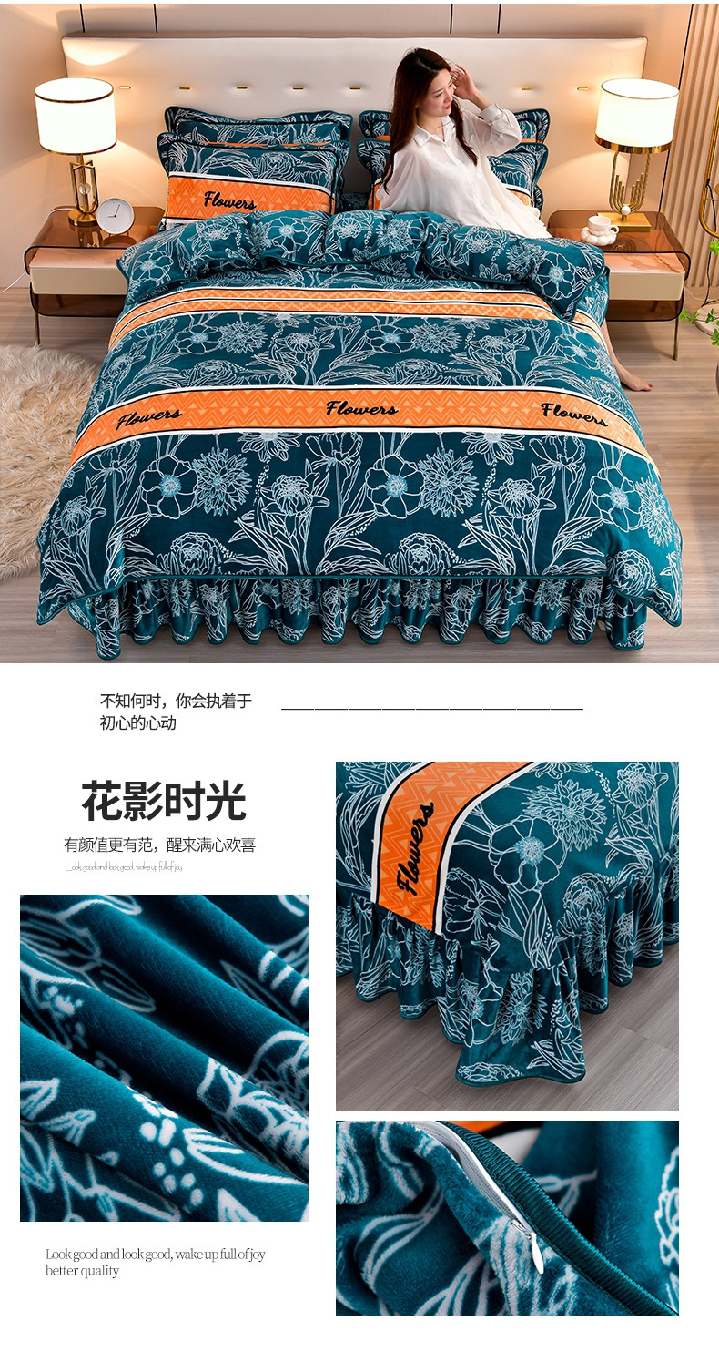 当前位置: 91家纺网 > 商品网购 > 床品套件 > 四件套 > 牛奶绒四件套 > 2025新款230克8.5斤加厚高克重牛奶绒金貂绒法莱绒四件套冬季加绒法兰绒床裙款 华影时光