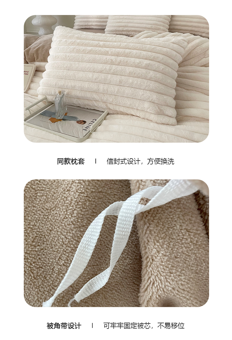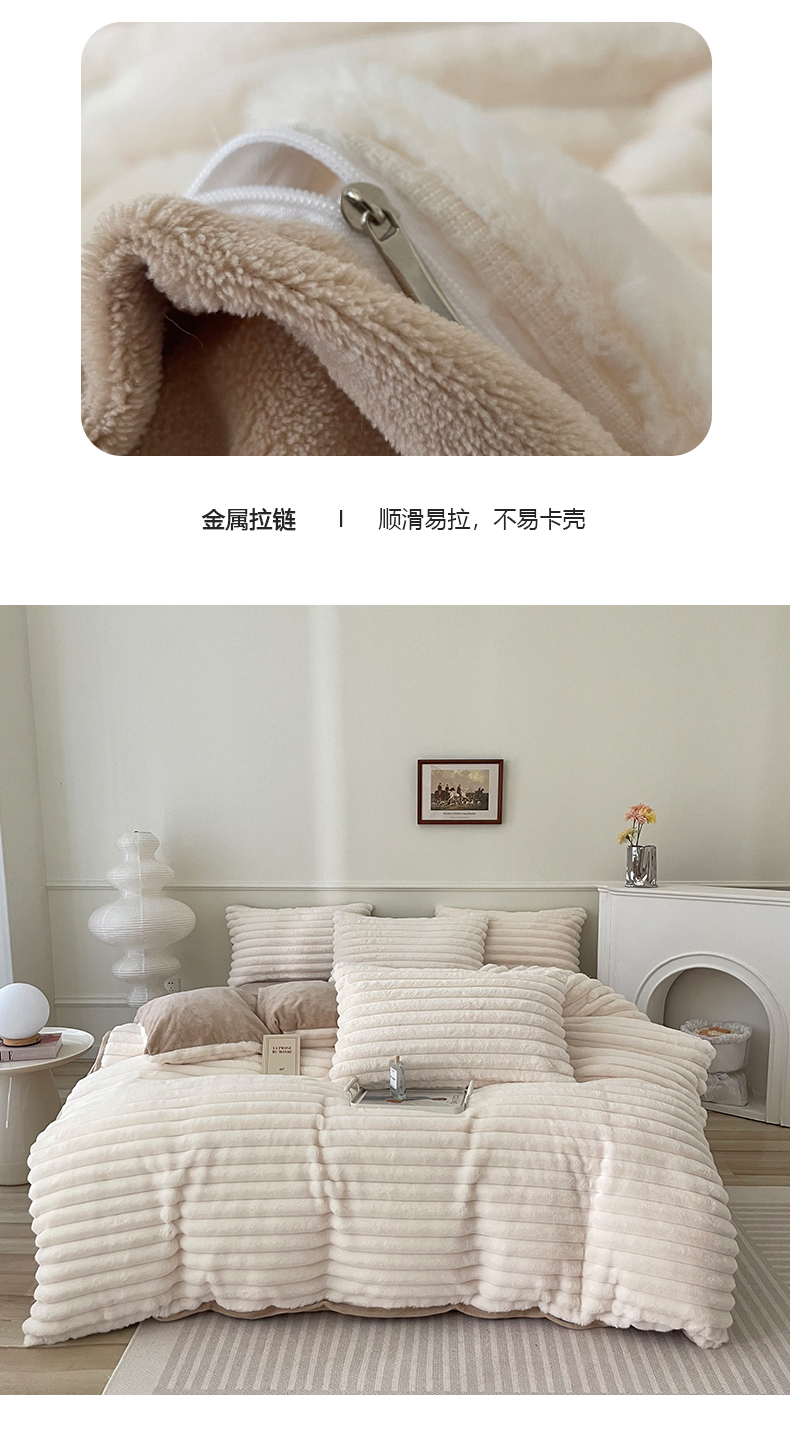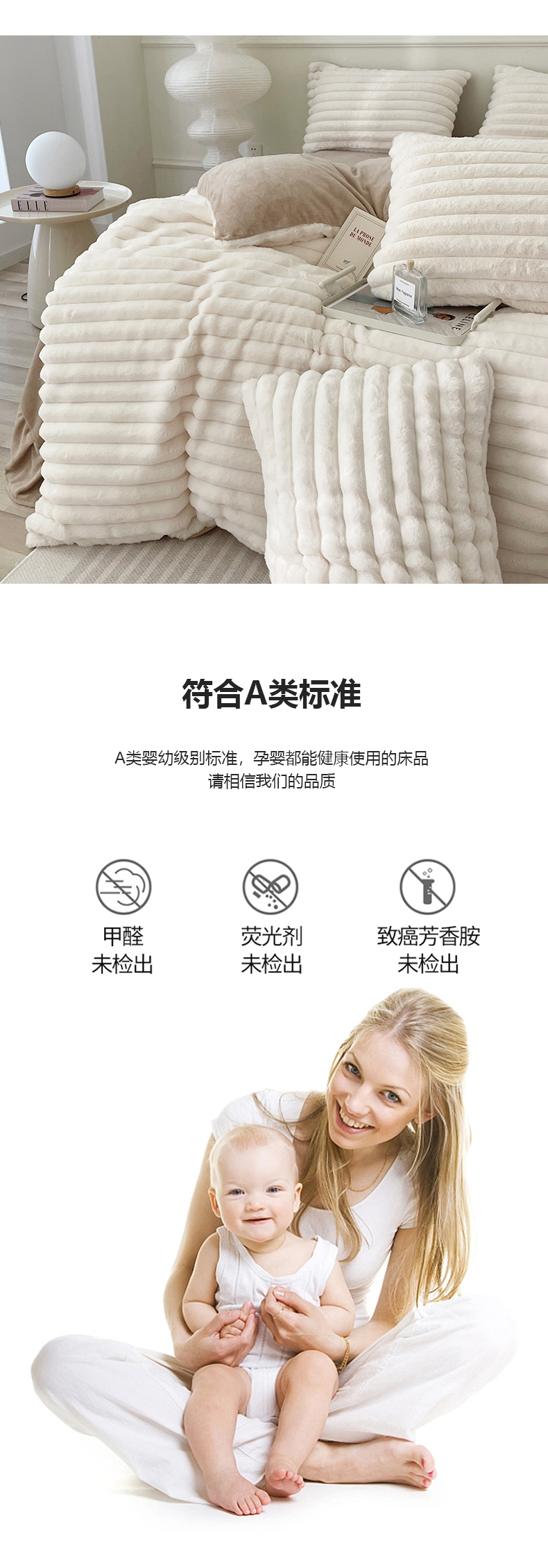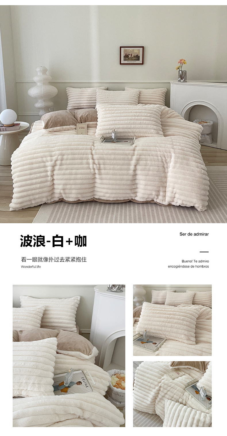 商品名称:喜梦缘 2025新款A类兔毛绒四件套 波浪-白+咖