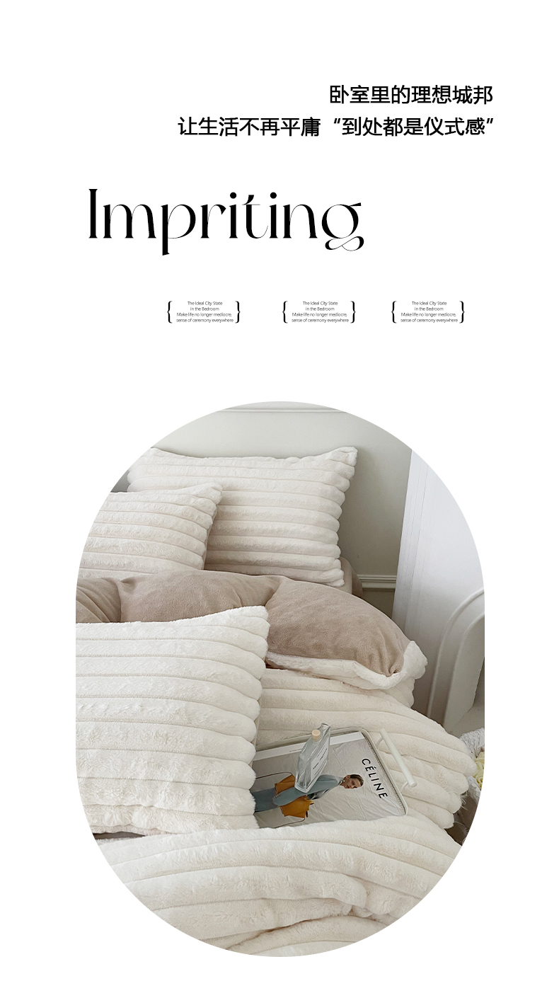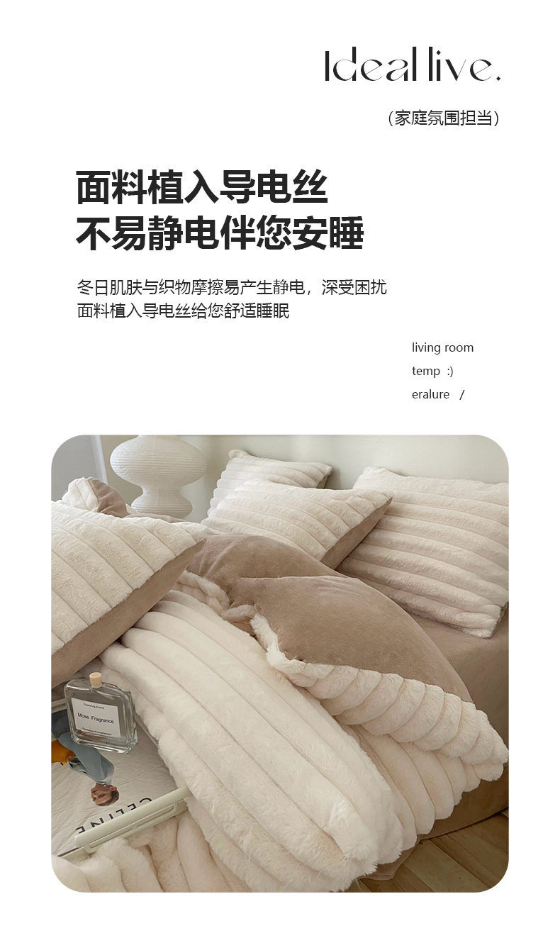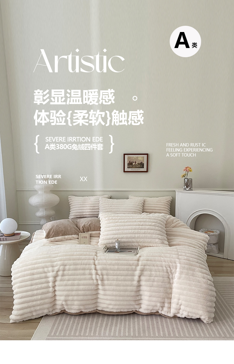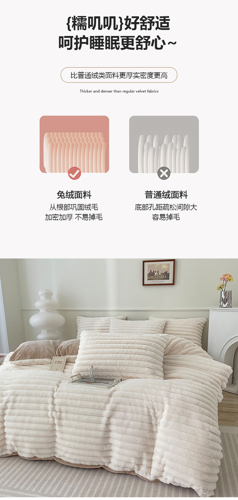 商品名称:喜梦缘 2025新款A类兔毛绒四件套 波浪-白+咖