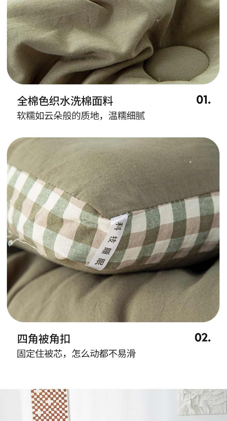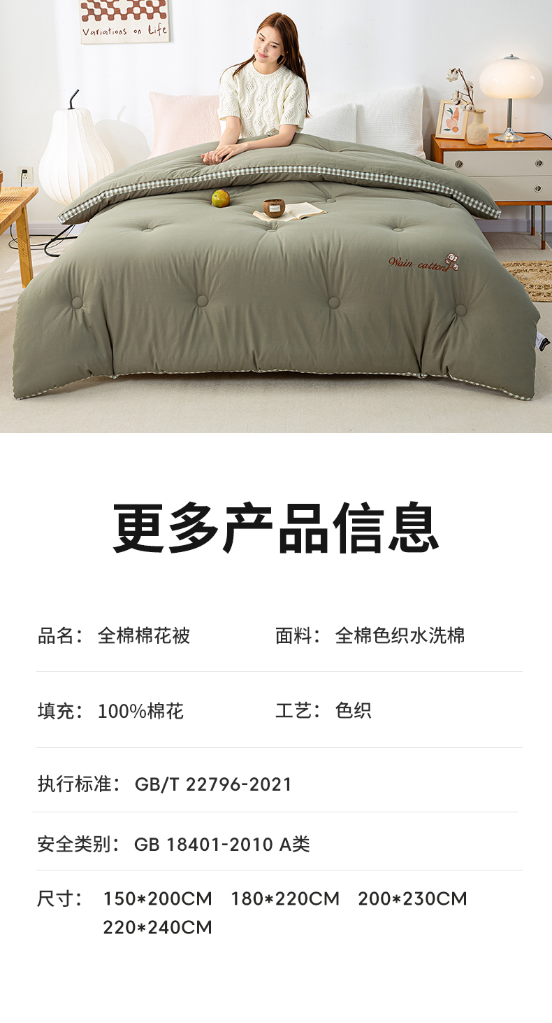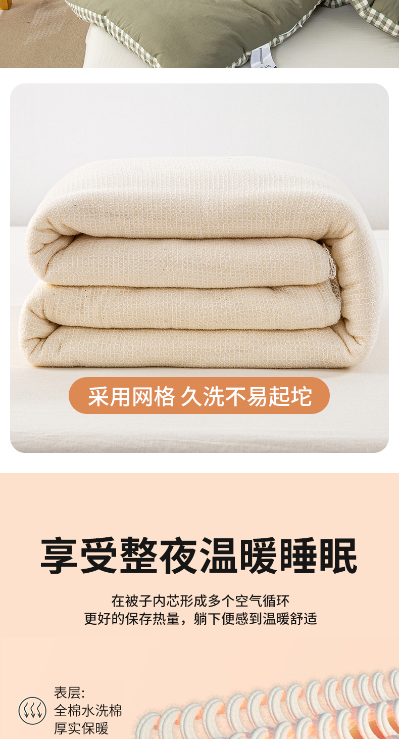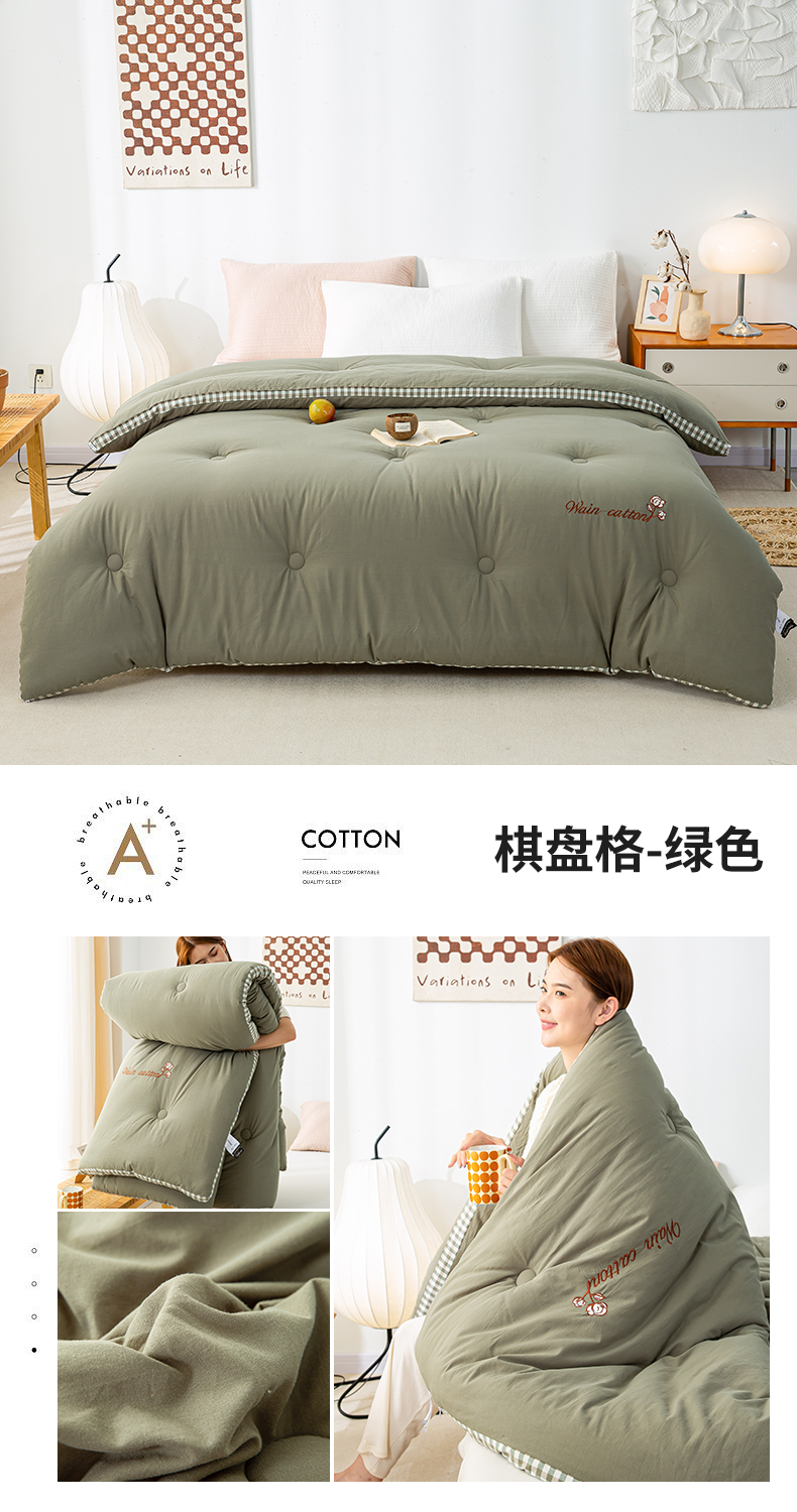 • 91家纺网 家纺一手货源 找家纺 鸣升 23新款棋盘格全棉花被色织水洗棉100%冬被被子 棋盘格-绿色