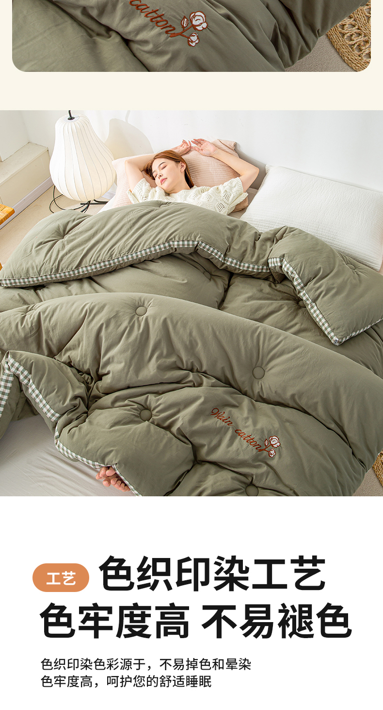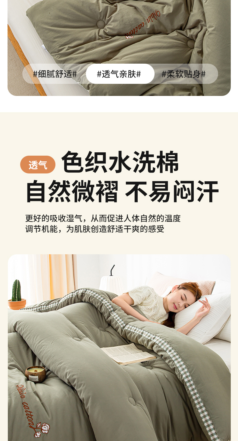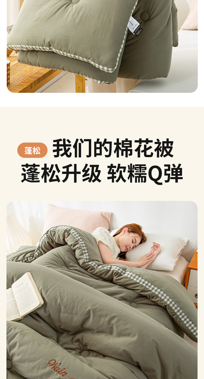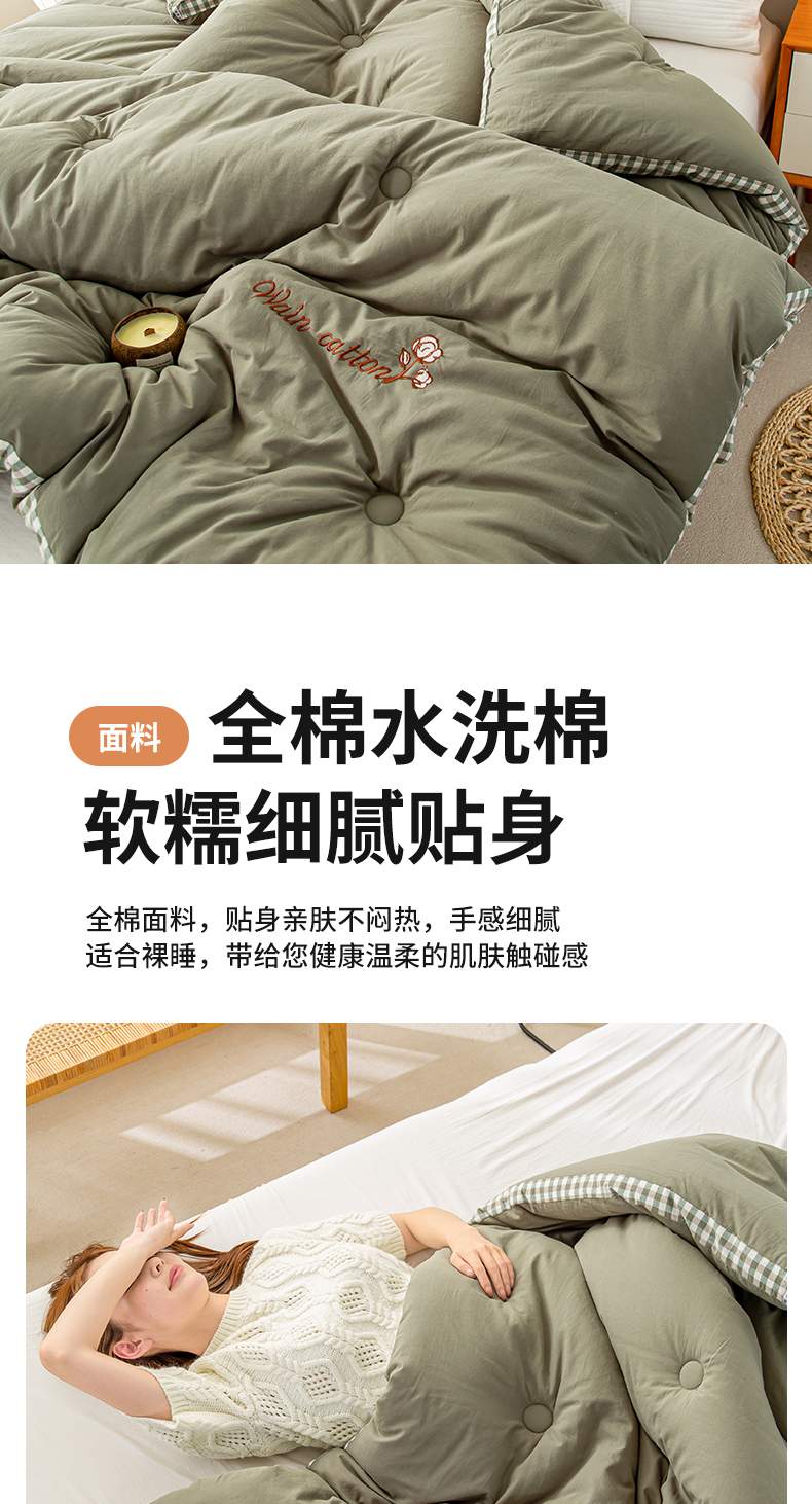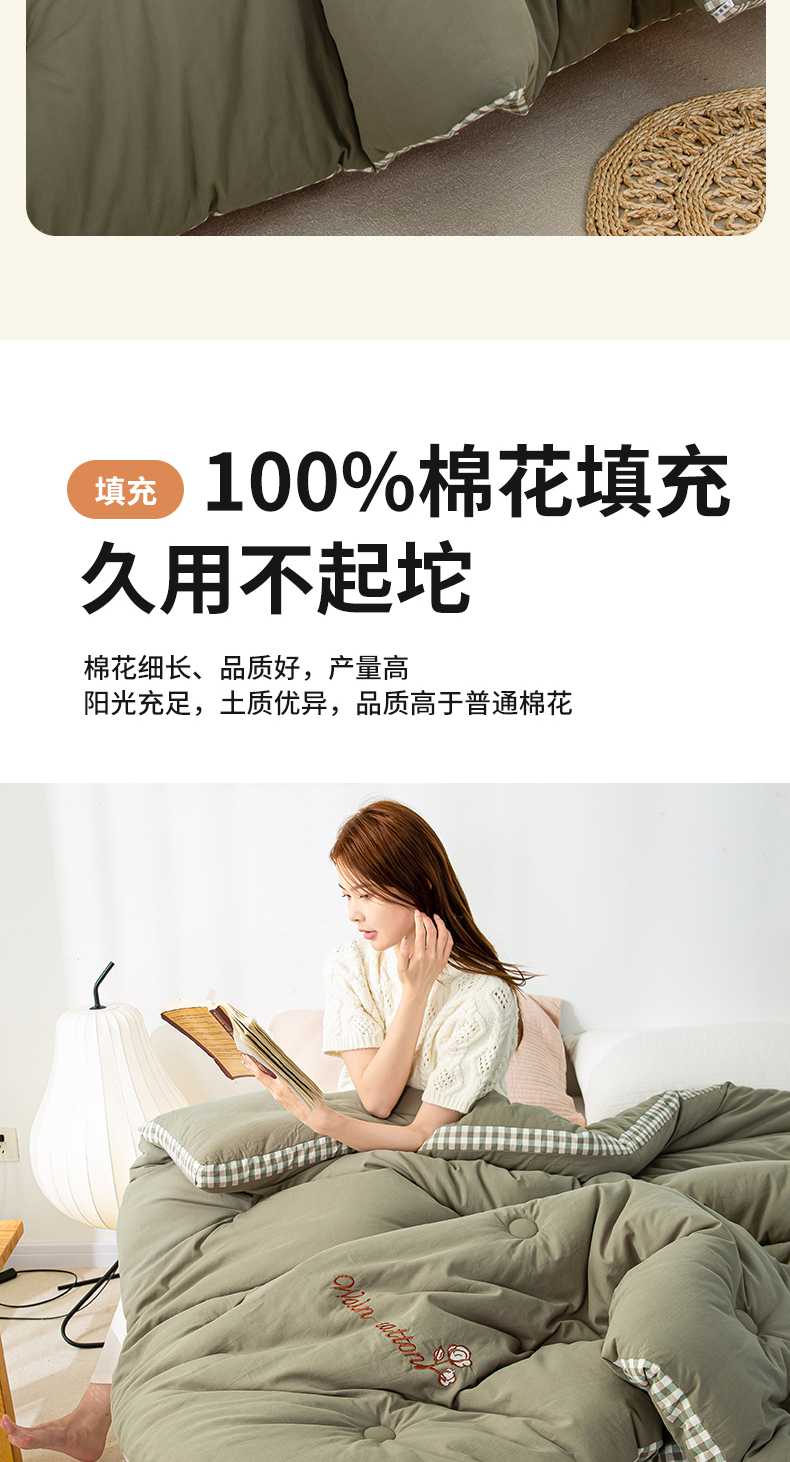 • 91家纺网 家纺一手货源 找家纺 鸣升 23新款棋盘格全棉花被色织水洗棉100%冬被被子 棋盘格-绿色