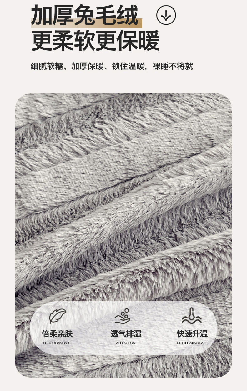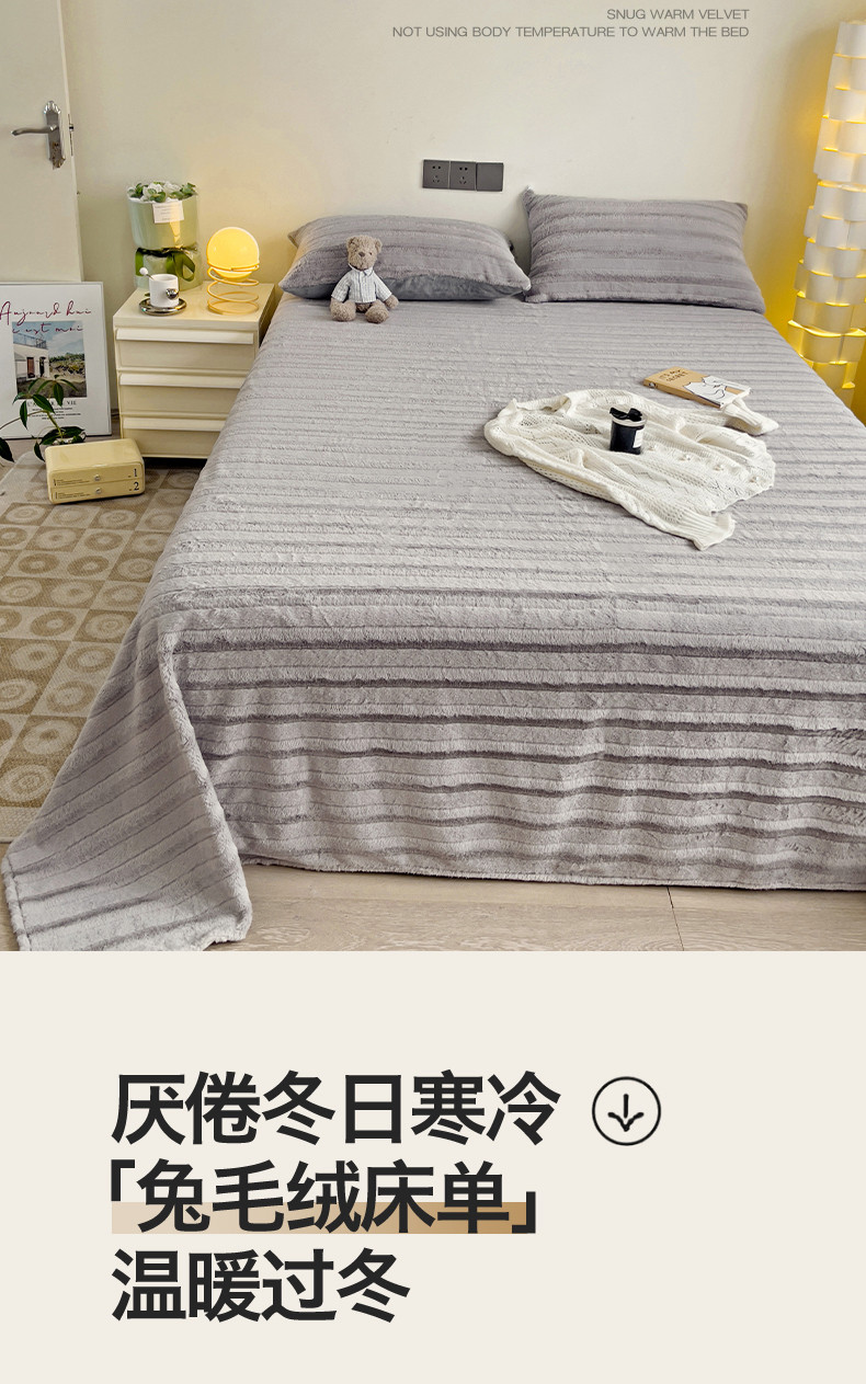 名兮 2023新款兔毛绒床单 条纹-灰