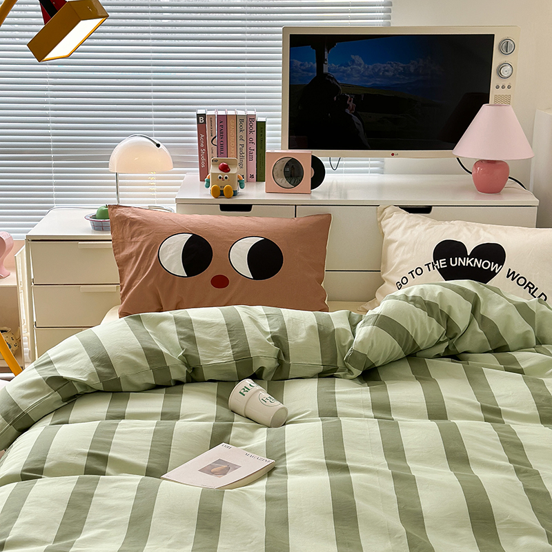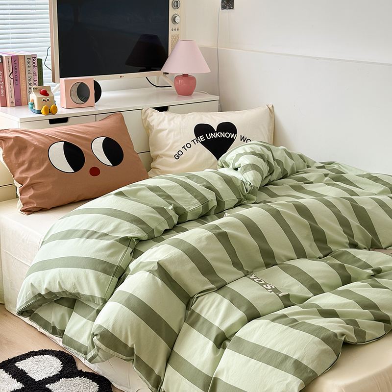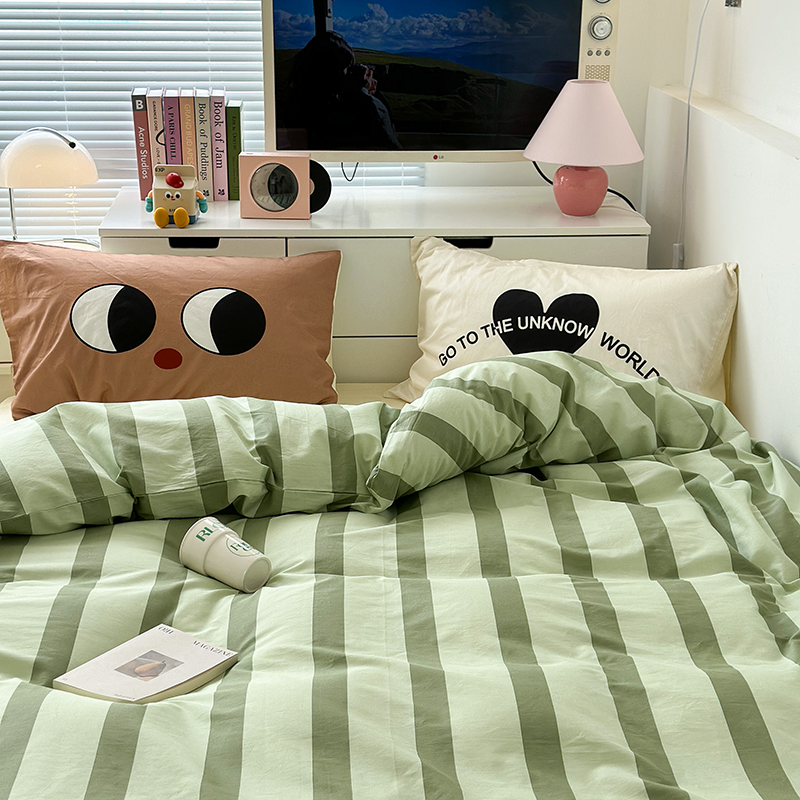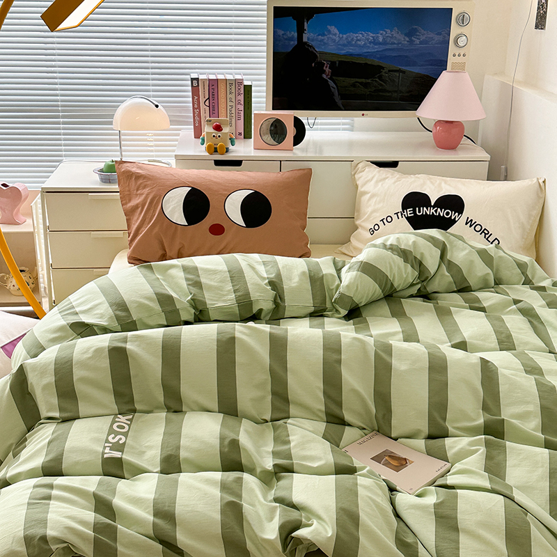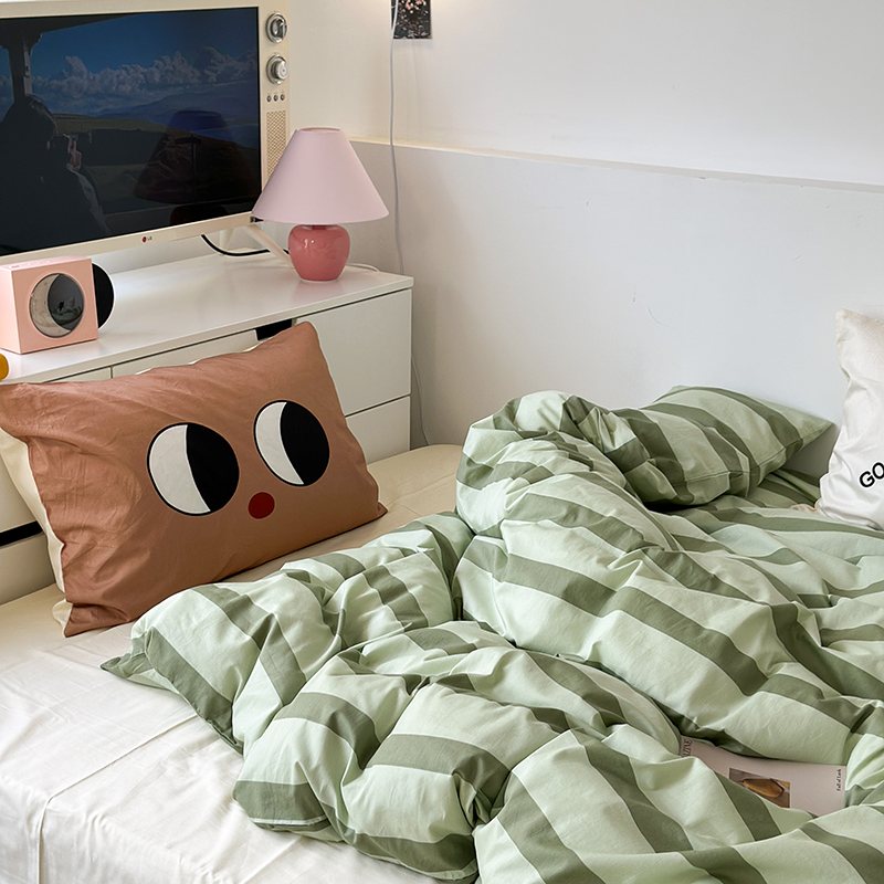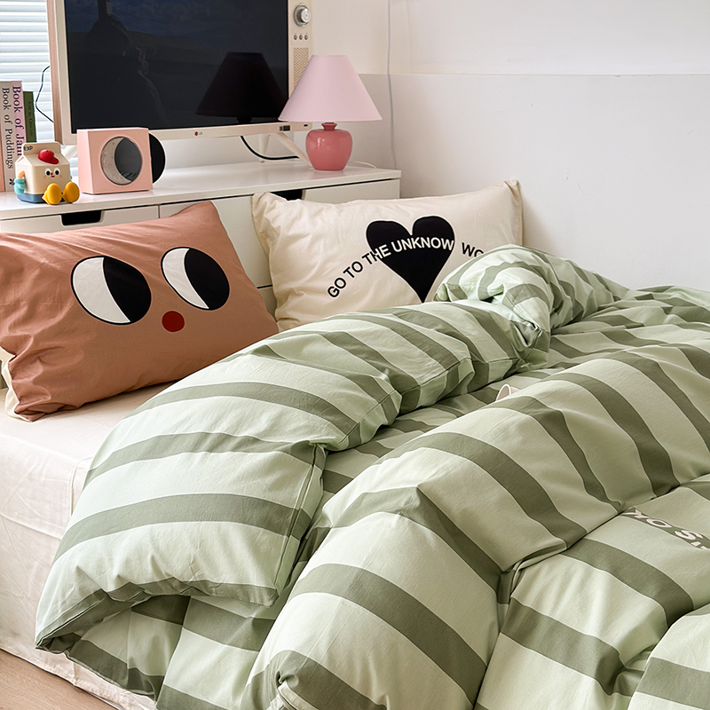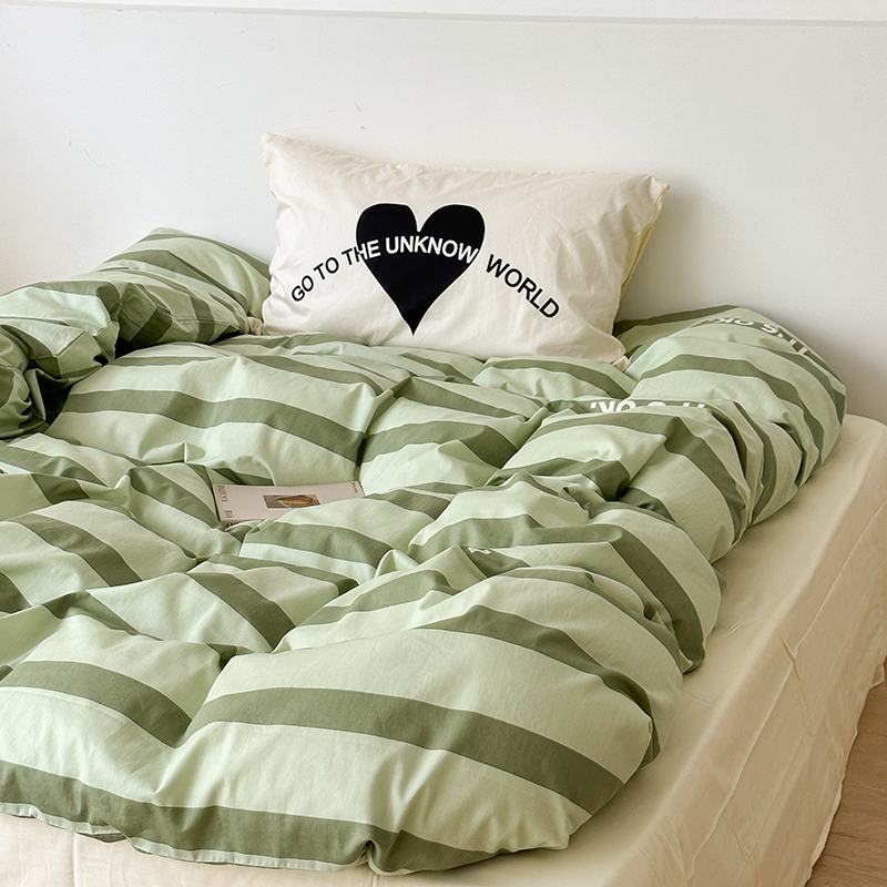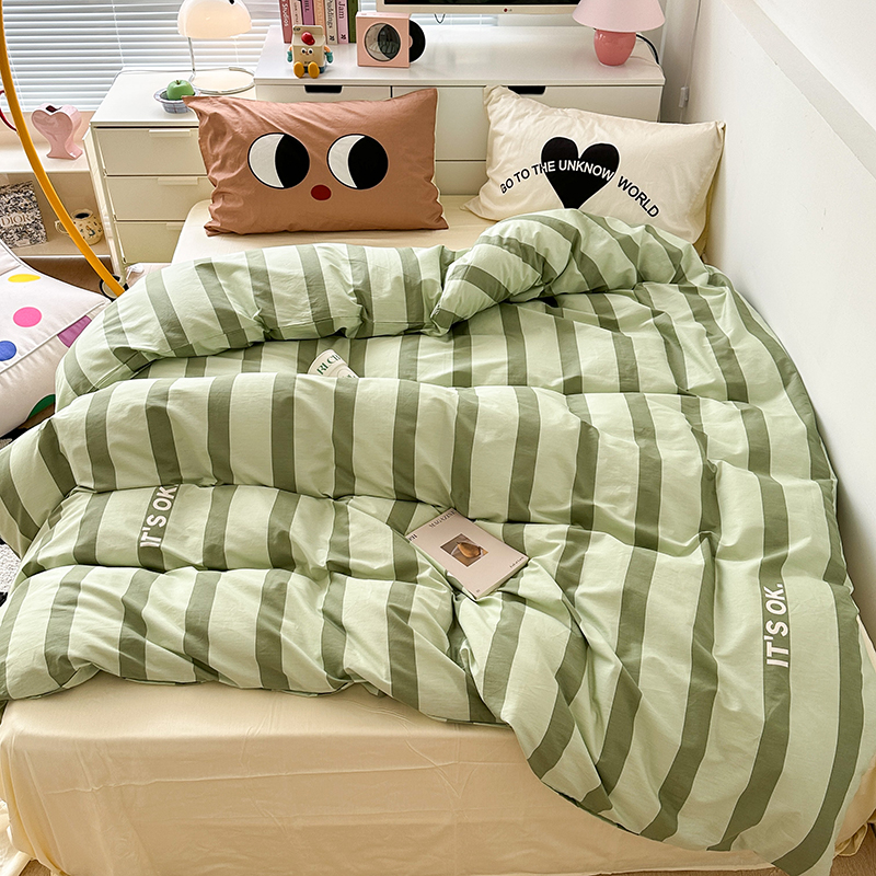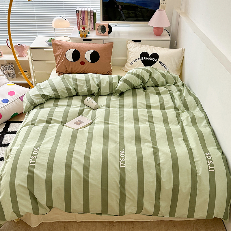 昔可家纺 2023新款全棉大版数码枕套四件套 绿条字母