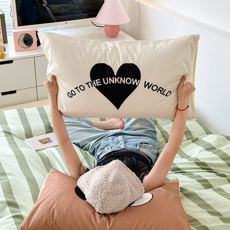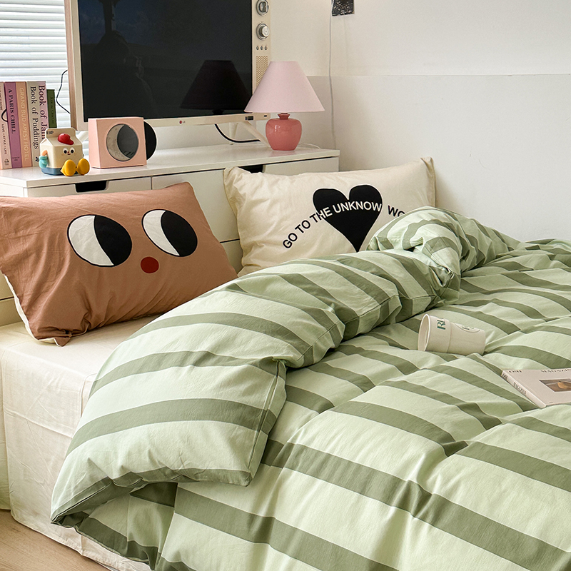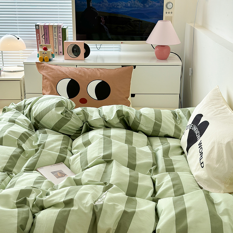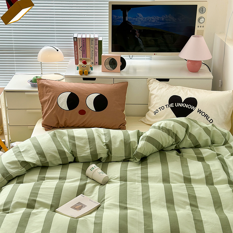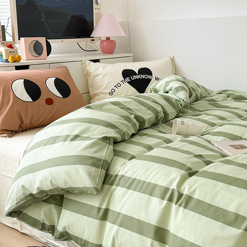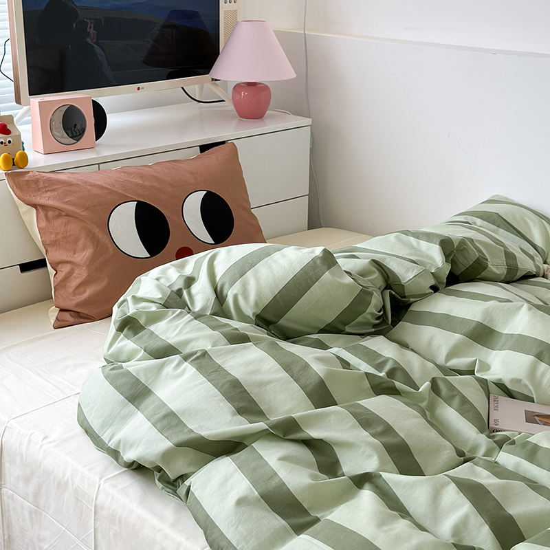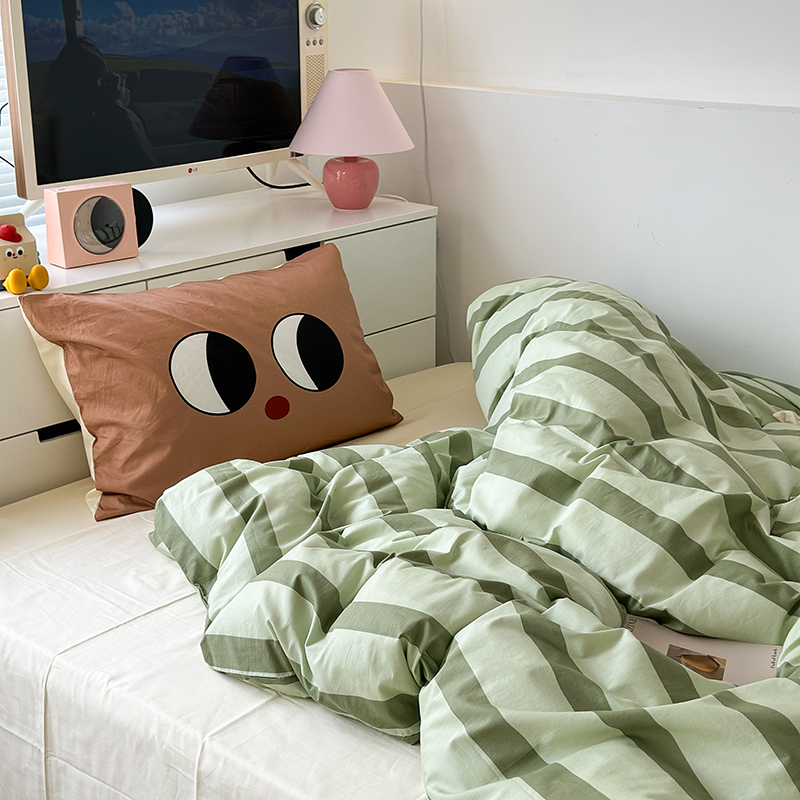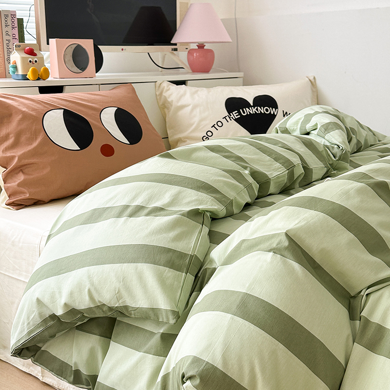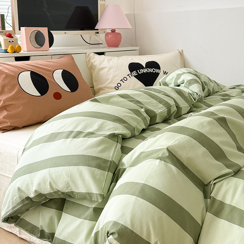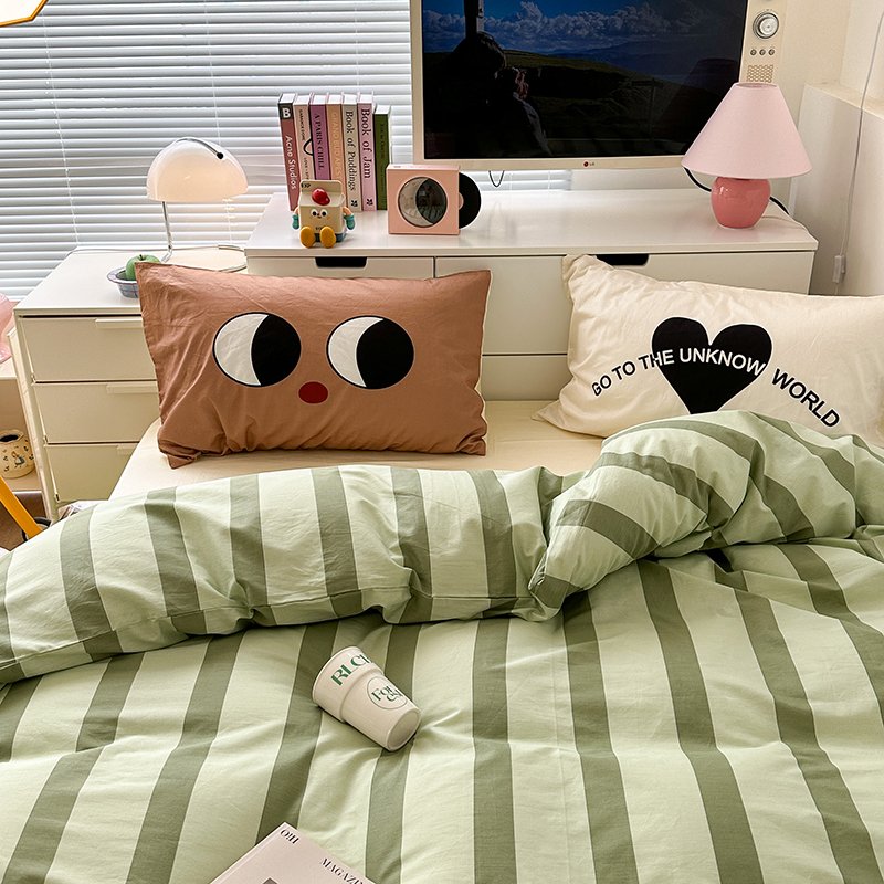 昔可家纺 2023新款全棉大版数码枕套四件套 绿条字母
