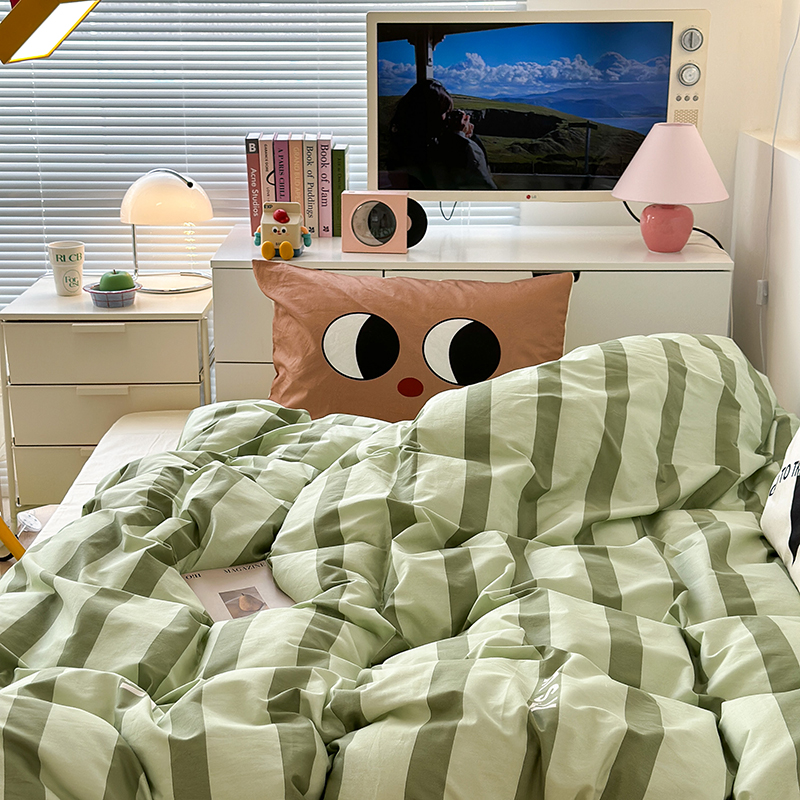 商品名称:昔可家纺 2023新款全棉大版数码枕套四件套 绿条字母