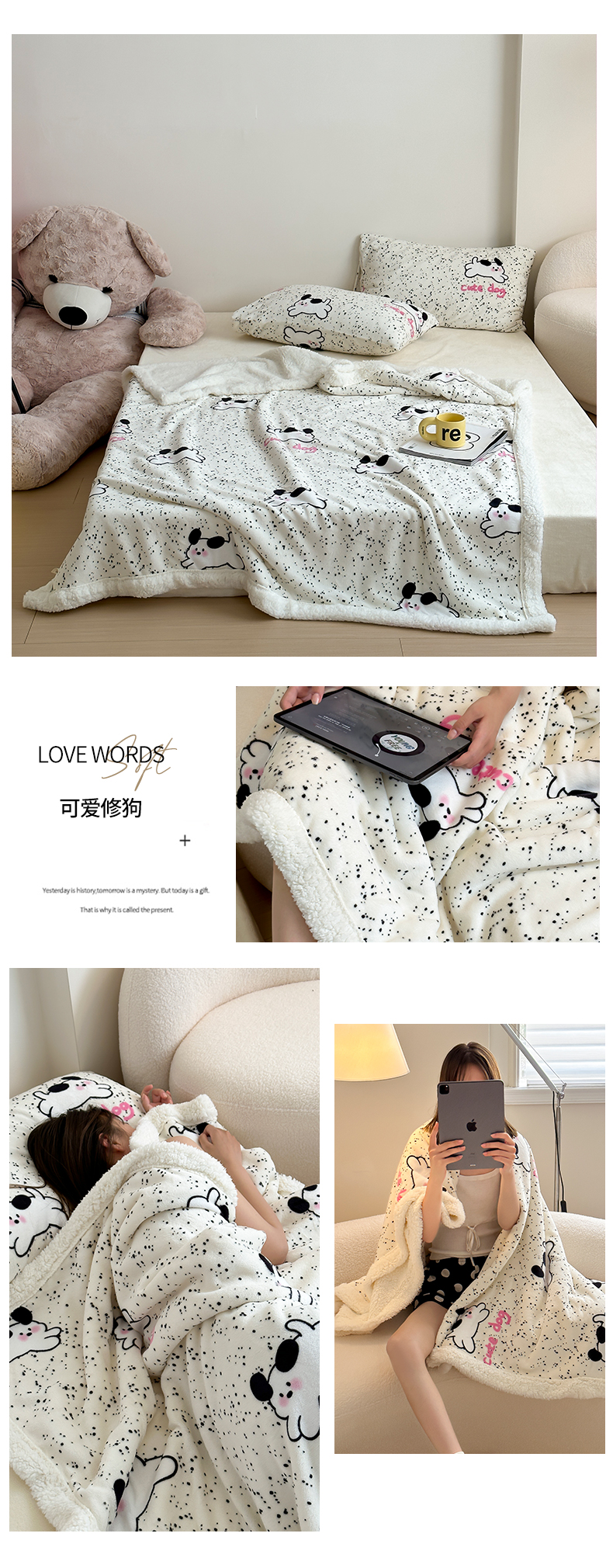 桃喜 2024秋冬新品羊羔绒毛毯 可爱修狗