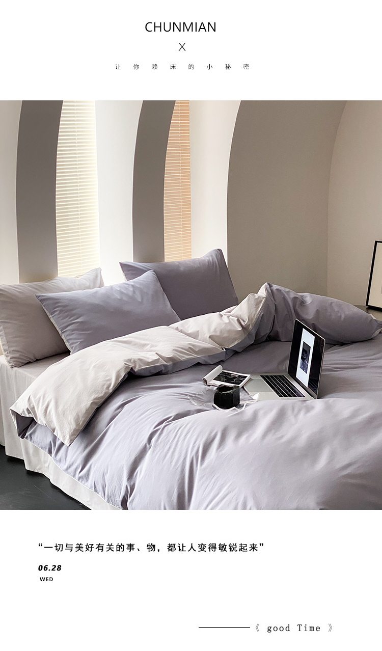 北欧风ins纯棉水洗棉床四件套全棉简约被套床单上三件套床笠,白色+藏青,藏青+浅蓝,鹅黄+螺旋藻绿,鹅黄+牛油果,螺旋藻绿+鹅黄,千夏紫+水貂灰,千夏紫+薇薇紫,薇薇紫+浅灰,浅蓝+鹅黄,浅蓝+白色,浅蓝+藏青